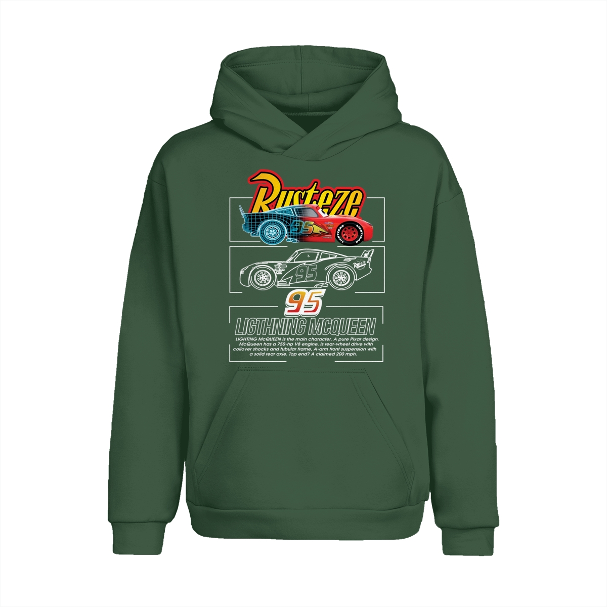 Lightning McQueen Car 95 Rusteze Hoodie, Vintage Racing Car 95 Lightning Rusteze Hoodie, Classic Cotton