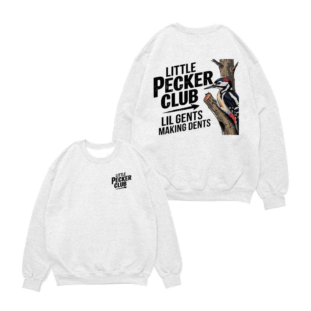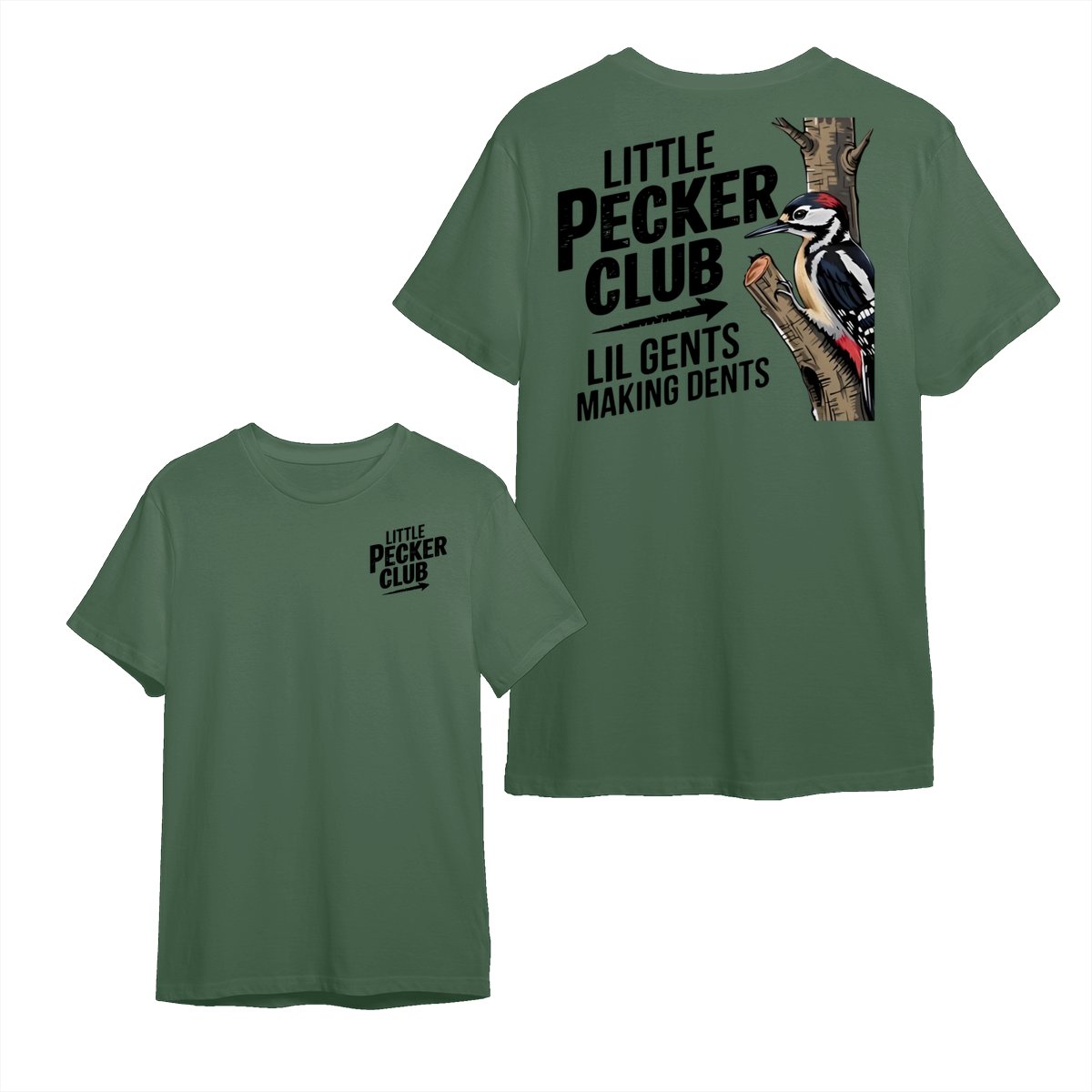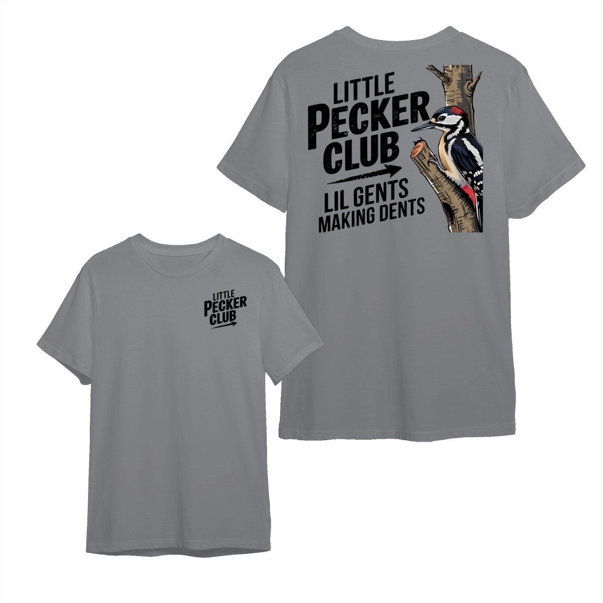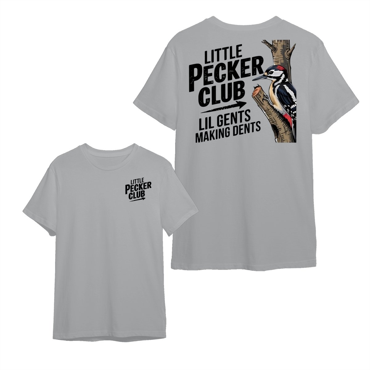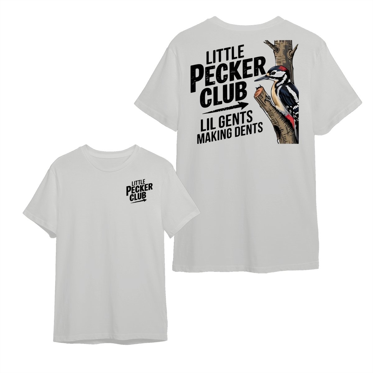 Little Pecker Club T-Shirt – Funny Woodpecker Graphic Tee – Lil Gents Making Dents Joke T-Shirt for Men