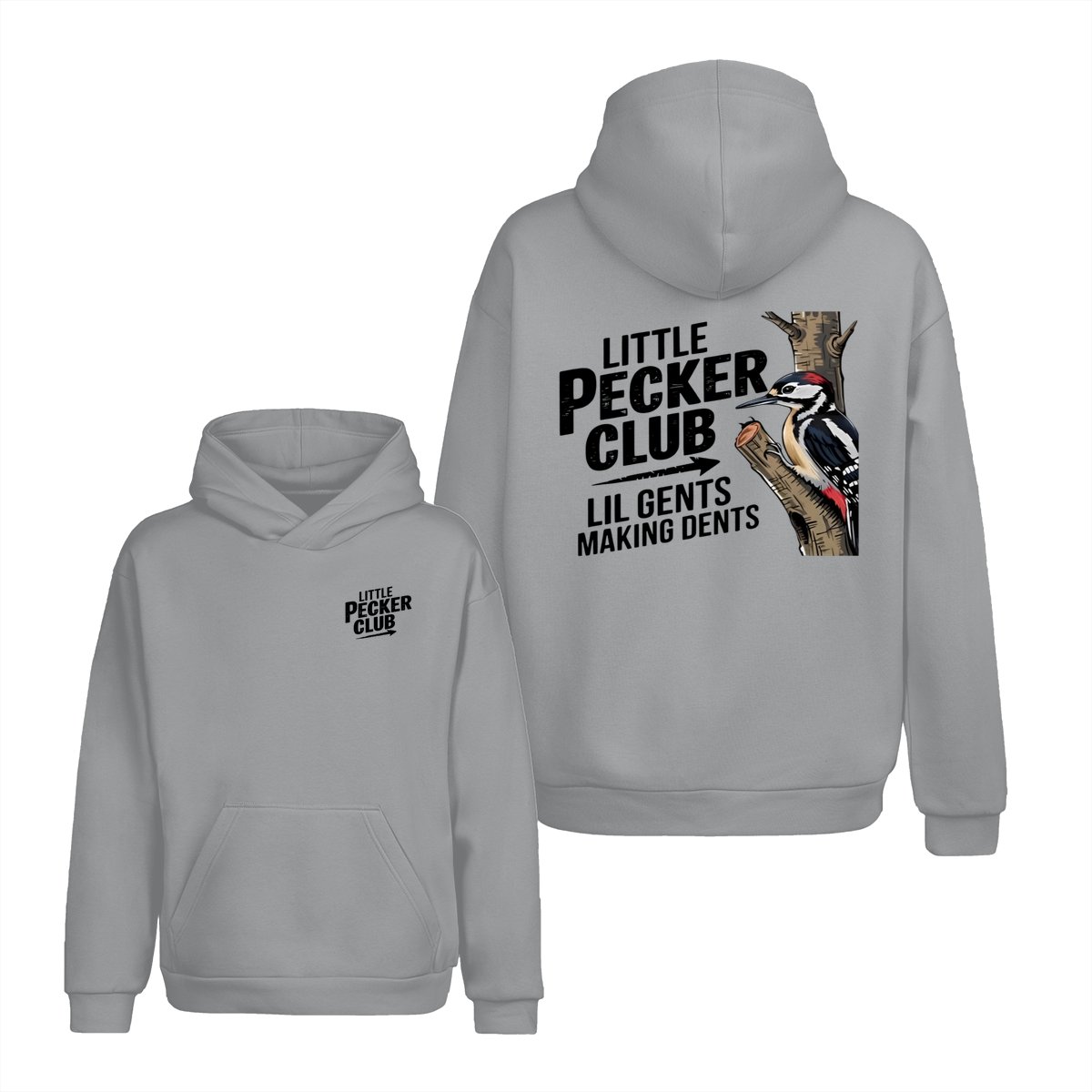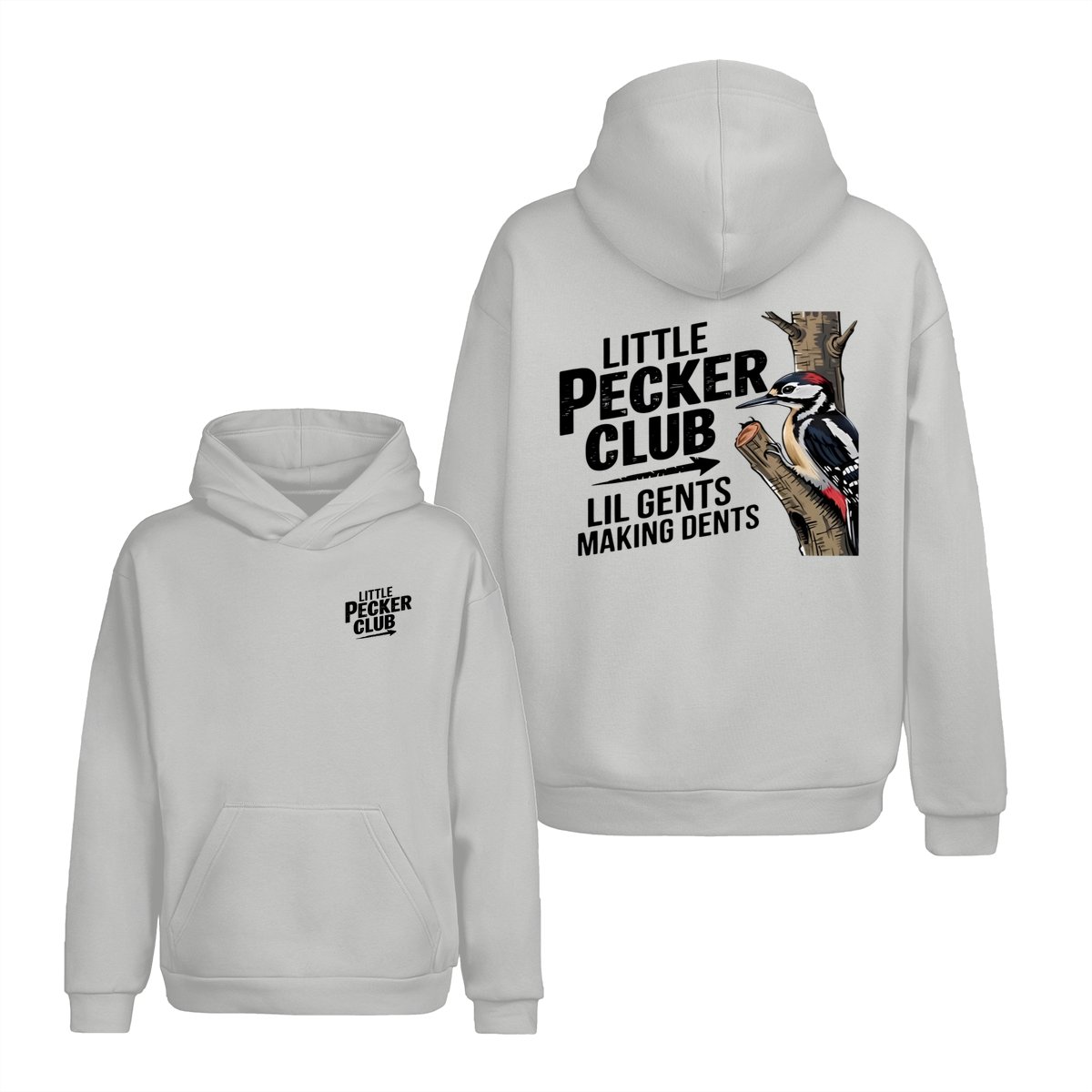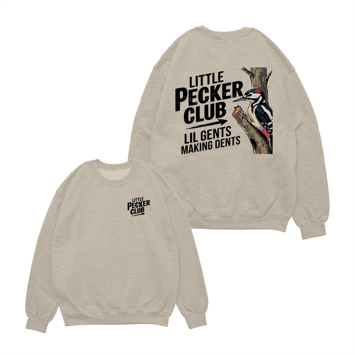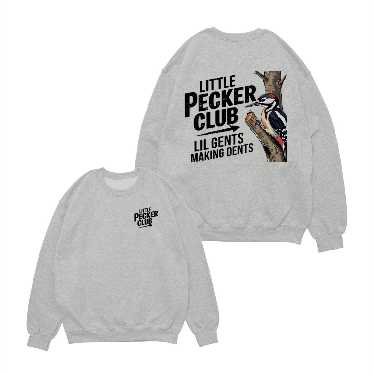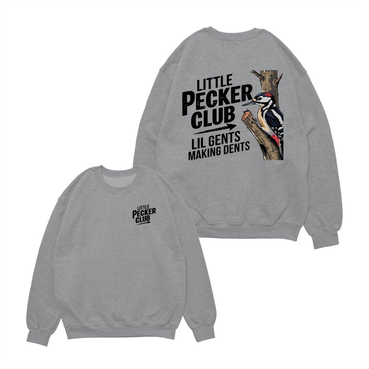 Little Pecker Club T-Shirt – Funny Woodpecker Graphic Tee – Lil Gents Making Dents Joke T-Shirt for Men