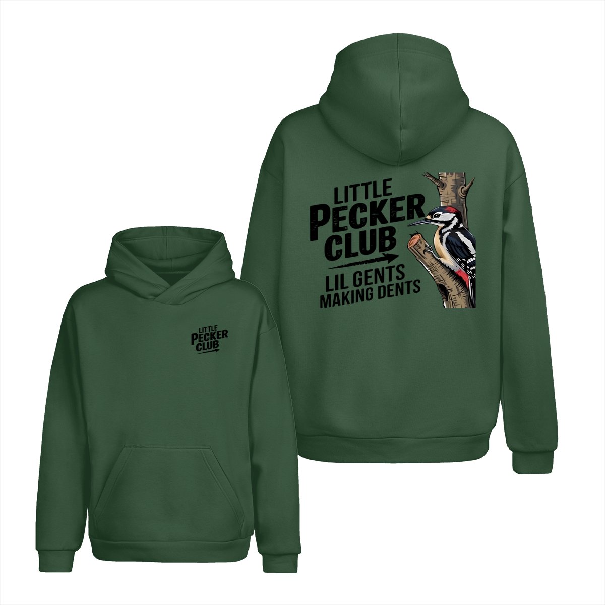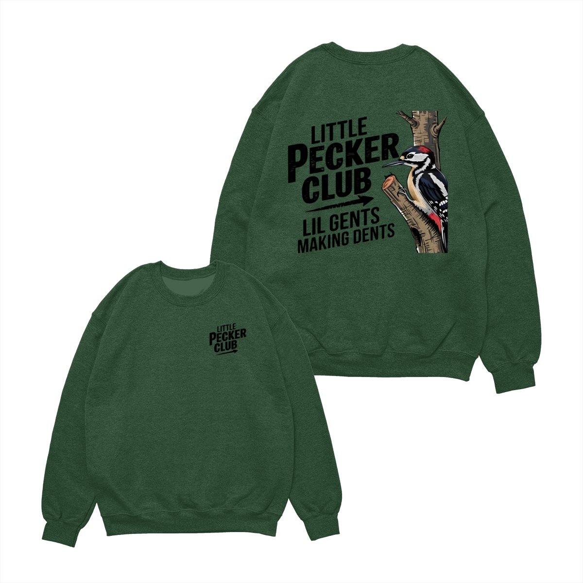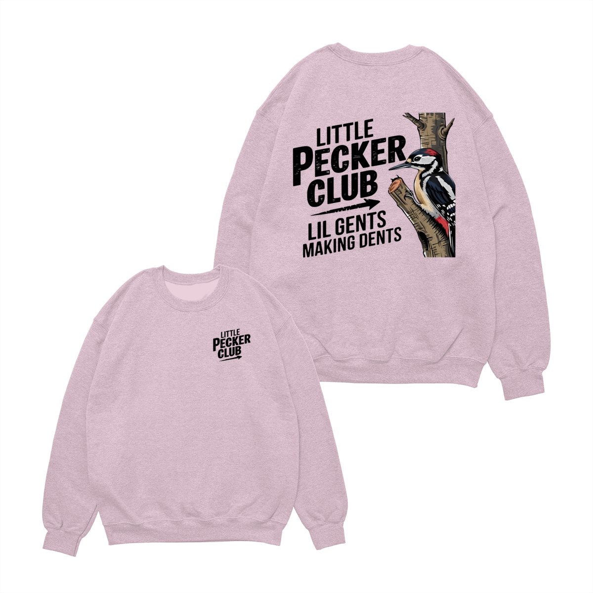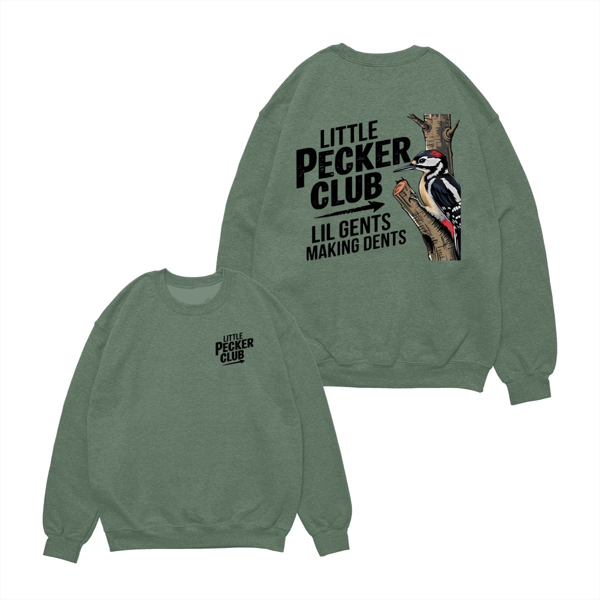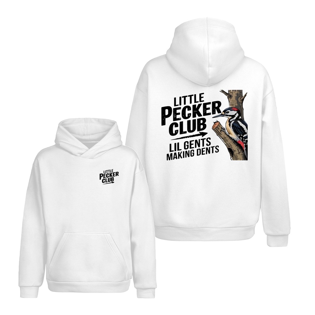 Little Pecker Club T-Shirt – Funny Woodpecker Graphic Tee – Lil Gents Making Dents Joke T-Shirt for Men