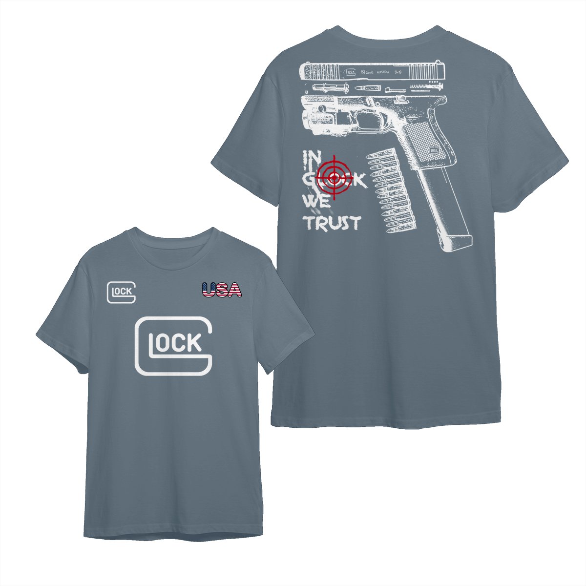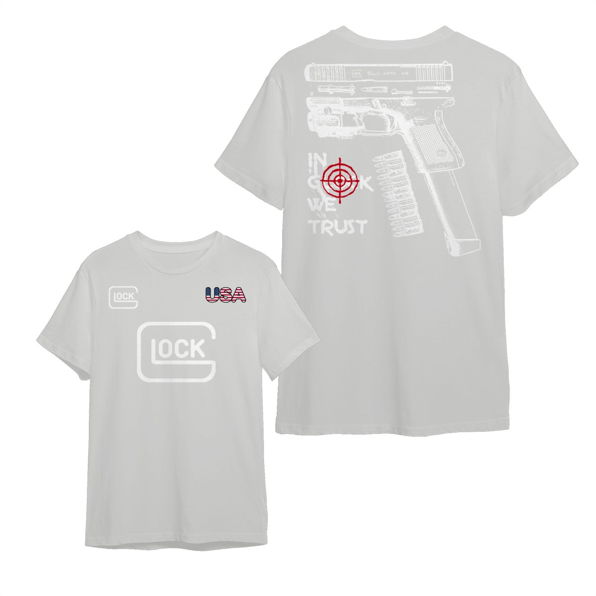 Lock USA 2 Side T-Shirt, In Glock We Trust Shirt, Sarcastic Graphic Tee, Unisex Classic Cotton Tee All Sizes, Gift For Him, For Her
