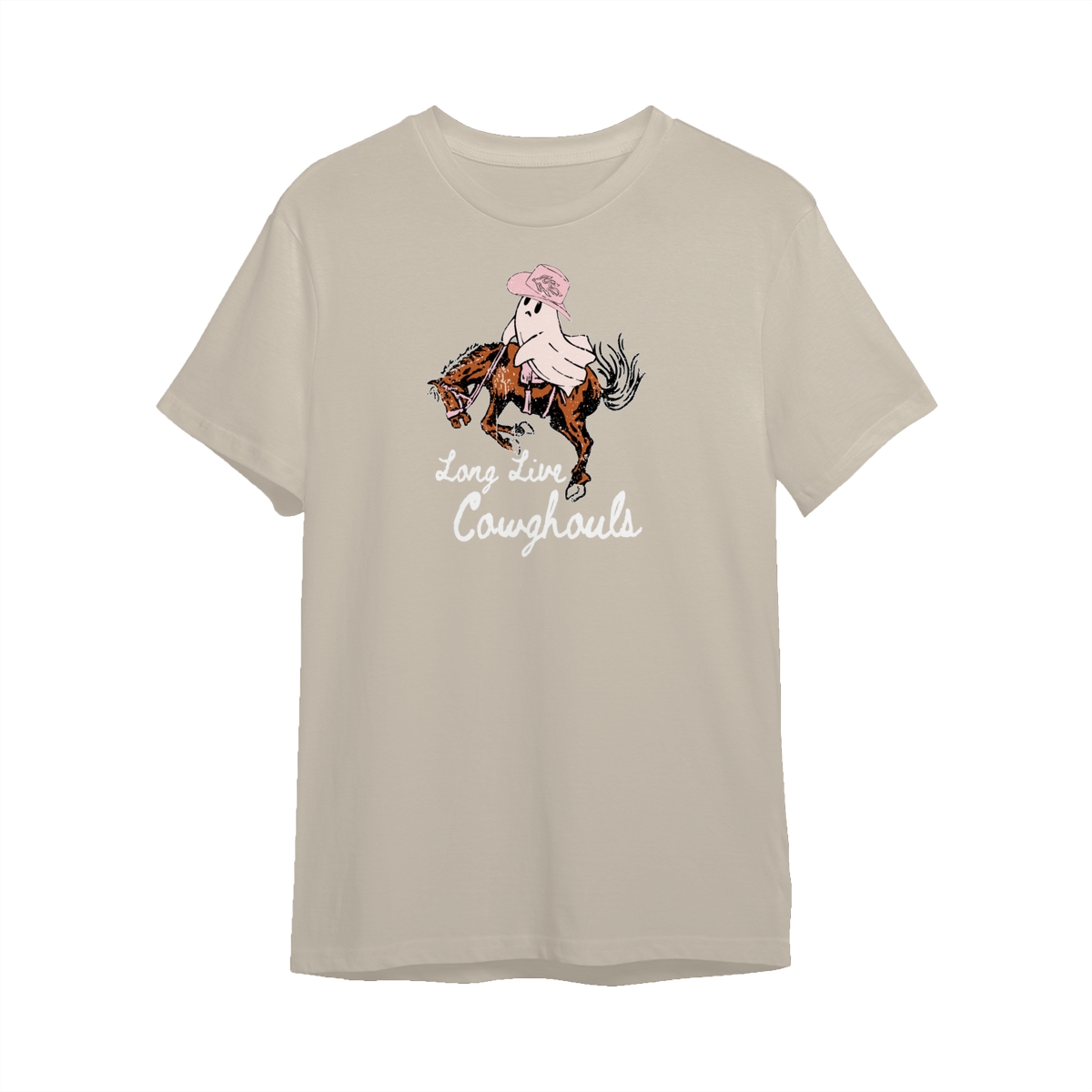 Long Live Cowghouls Halloween T-Shirt, Sweatshirt, Hoodie – Pink Ghost Cowboy Riding Horse, Cute Western Fall Pullover For Spooky Cowgirl And Rodeo Lovers