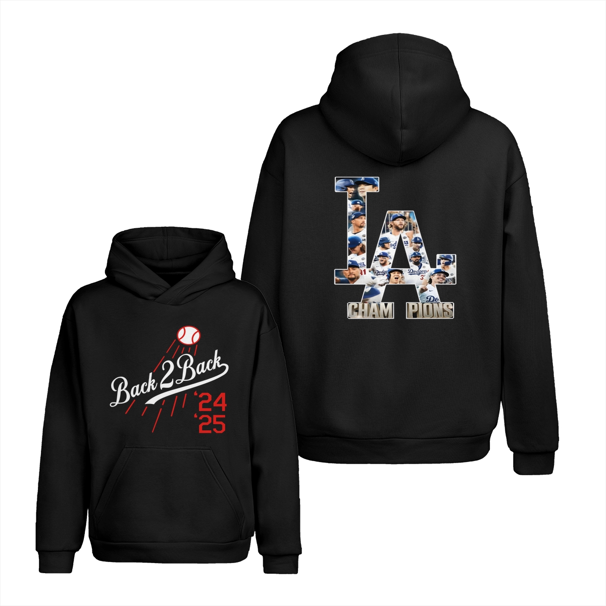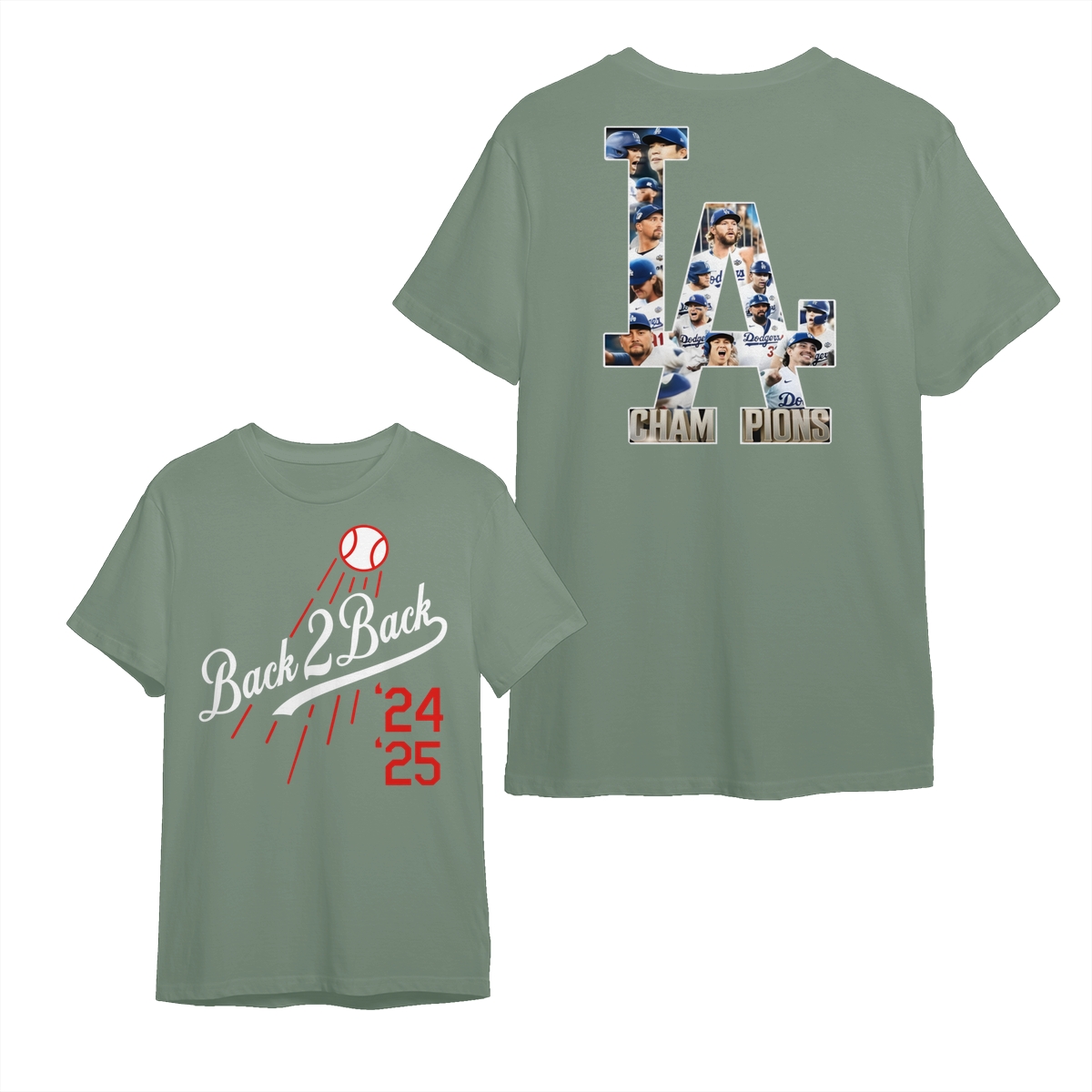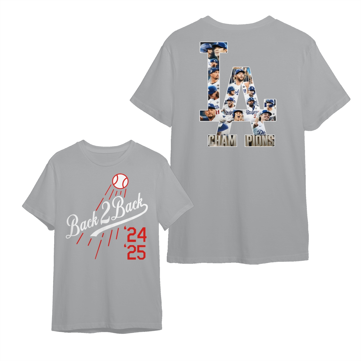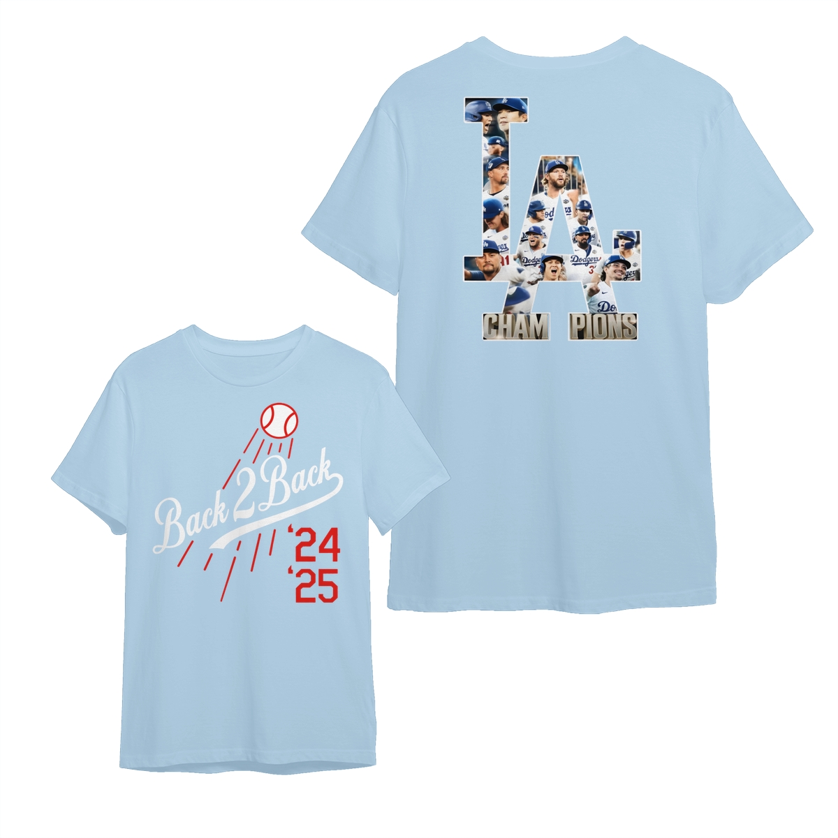 Los Angeles Dodgers Back 2 Back Champions 2 sided Shirt, 2025 LA Baseball World Series Champion Shirt, 2025 Let’s Go Los Angeles