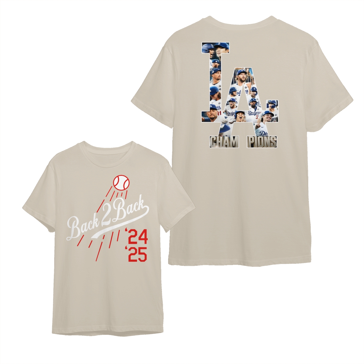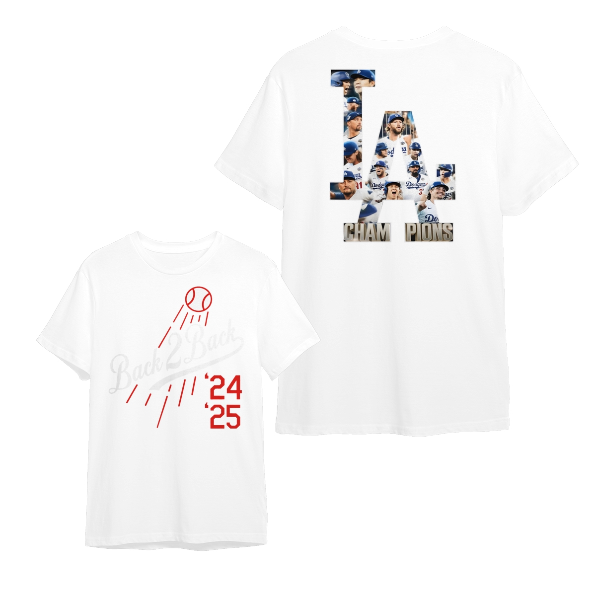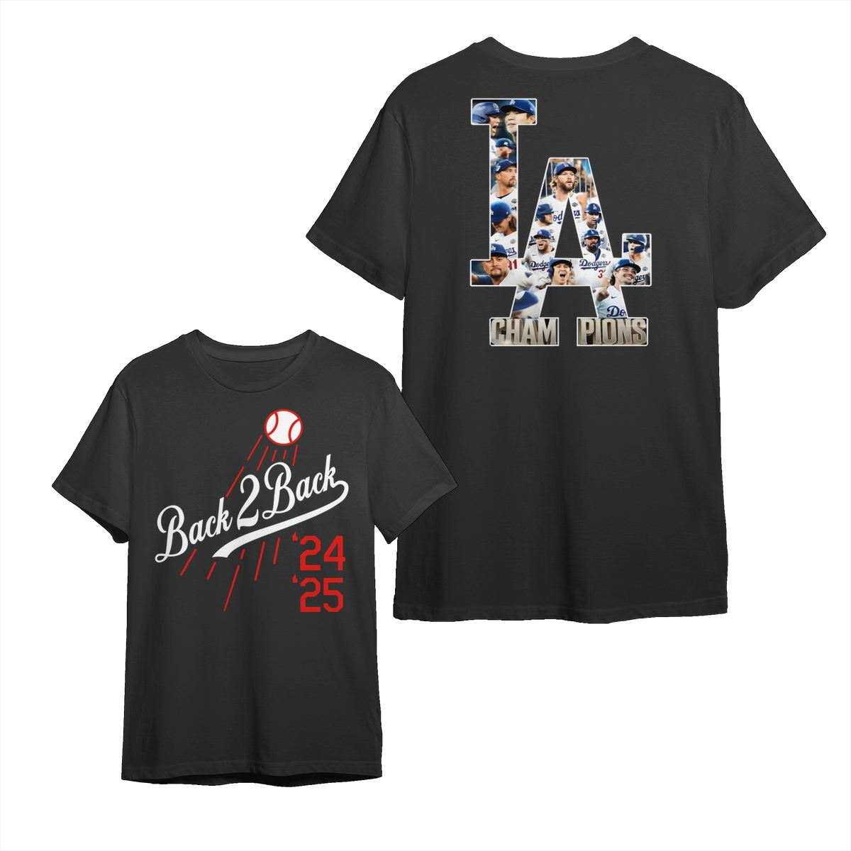 Los Angeles Dodgers Back 2 Back Champions 2 sided Shirt, 2025 LA Baseball World Series Champion Shirt, 2025 Let’s Go Los Angeles
