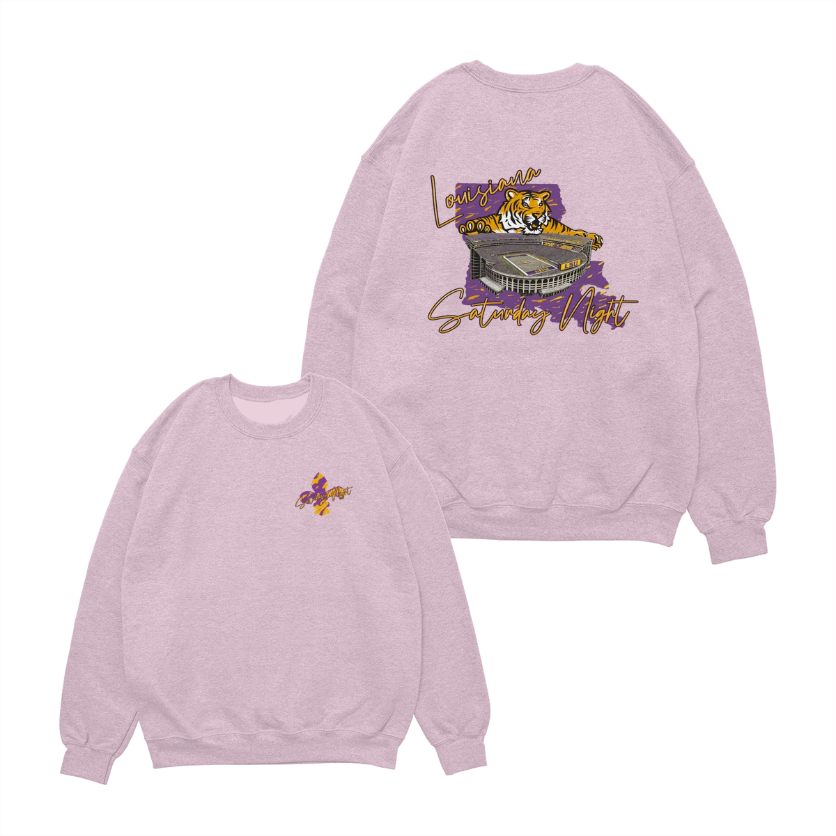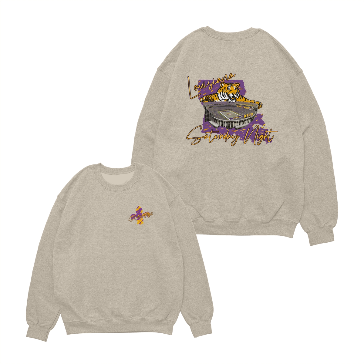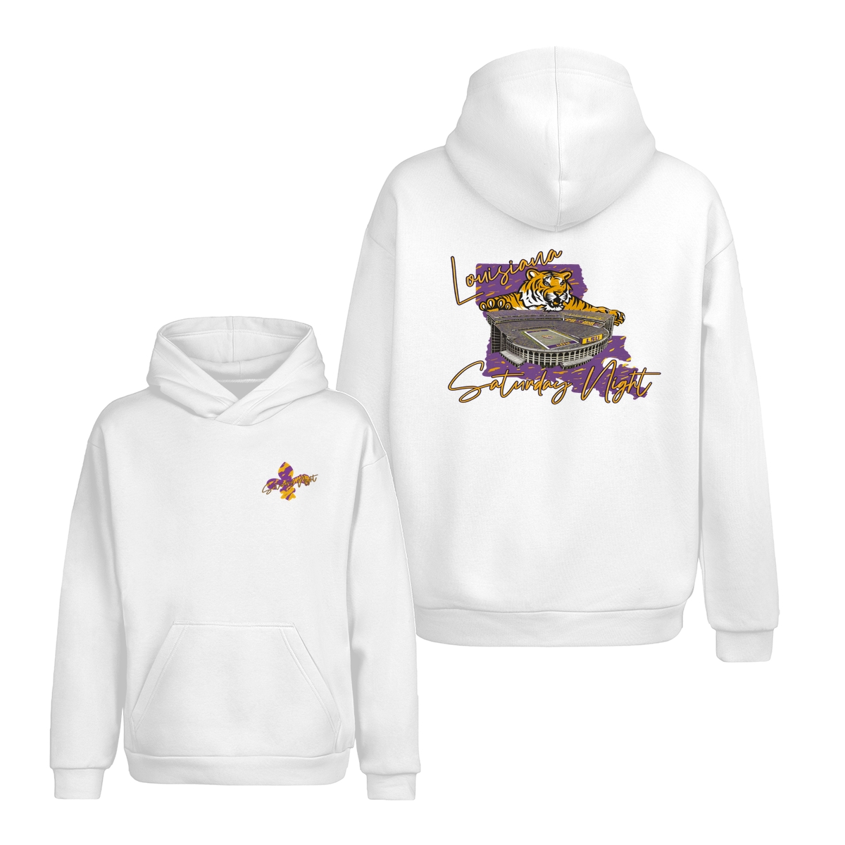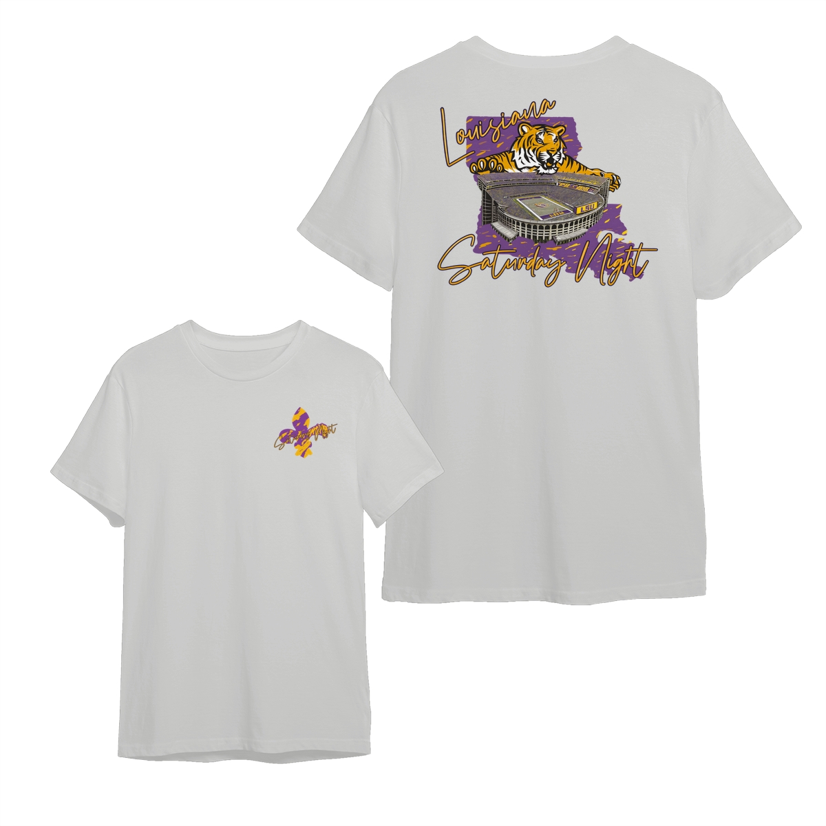 Louisiana Saturday Night Wash Tee, Front and Back Tiger Stadium Graphic, Game Day Spirit Shirt, Southern Football Fan Gift