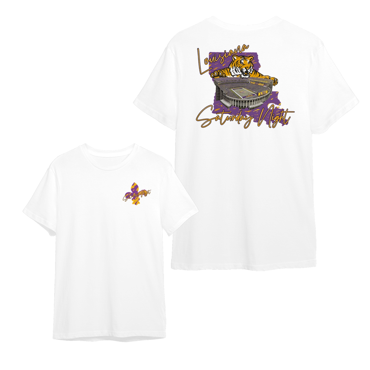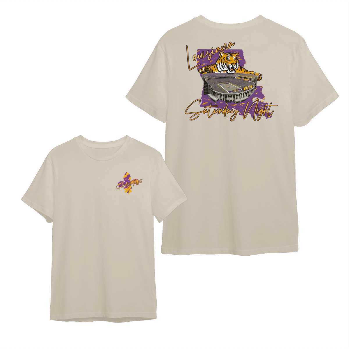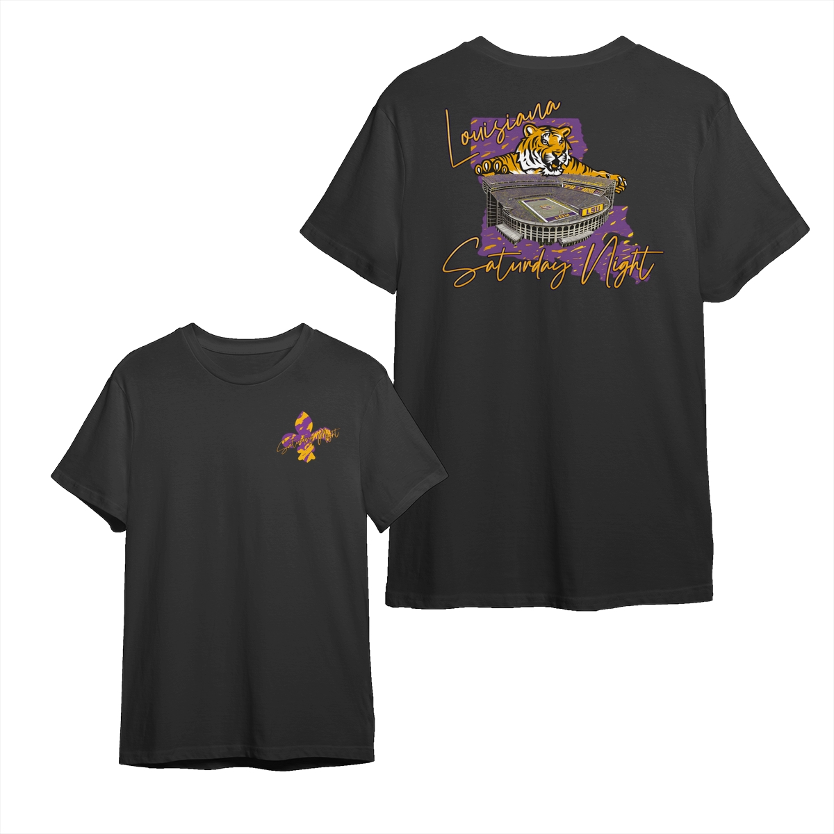 Louisiana Saturday Night Wash Tee, Front and Back Tiger Stadium Graphic, Game Day Spirit Shirt, Southern Football Fan Gift