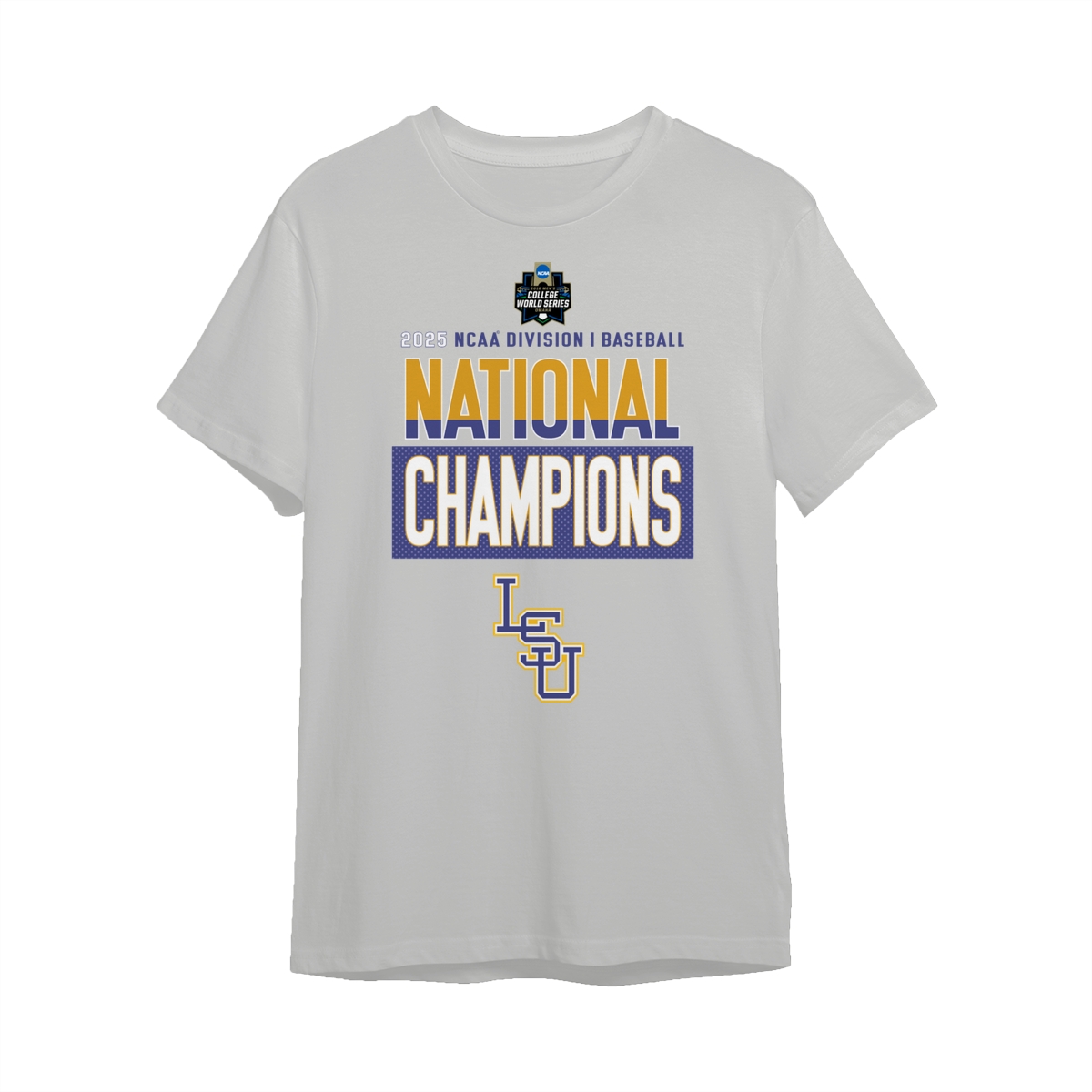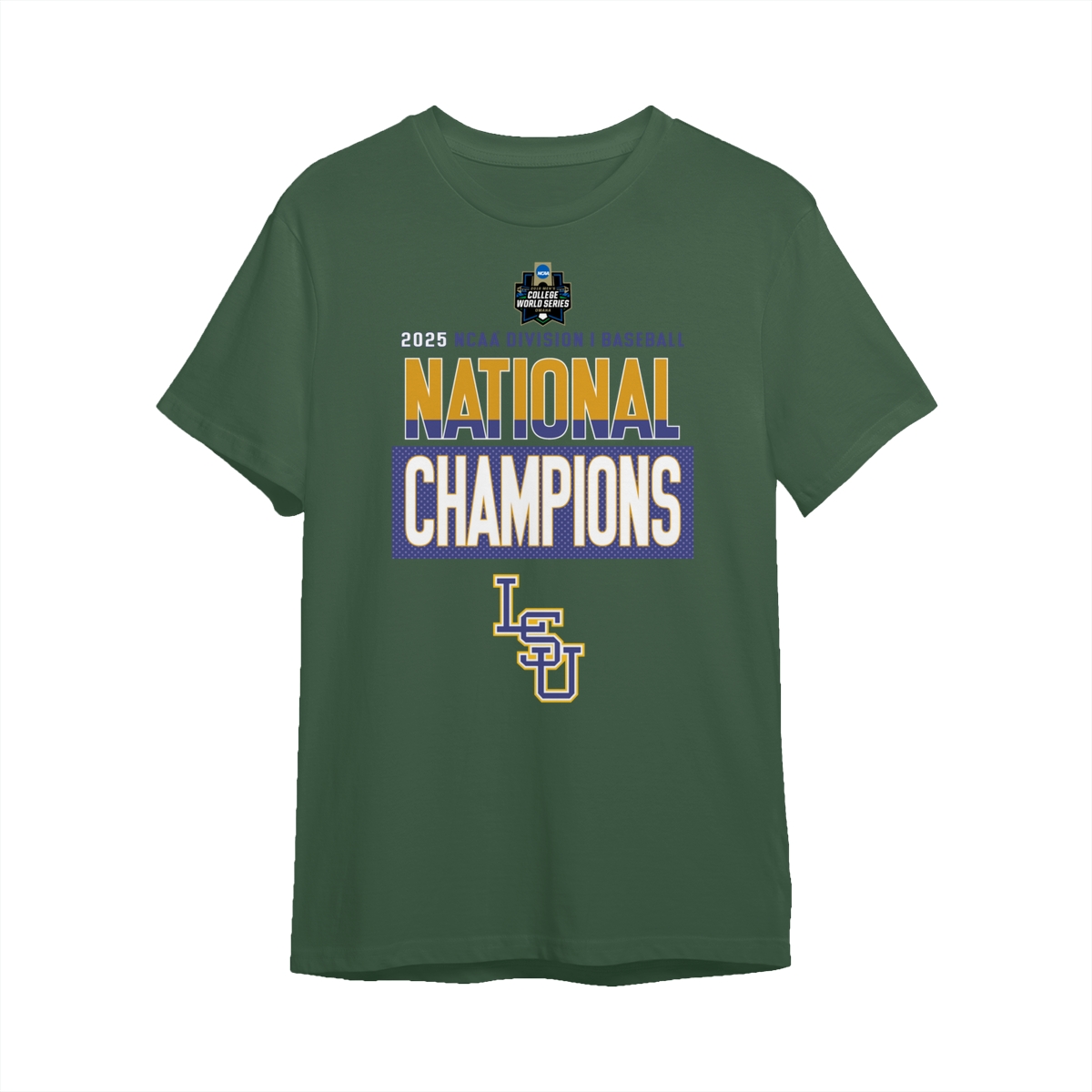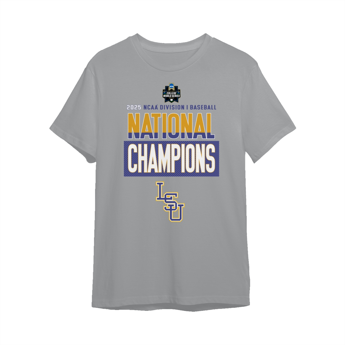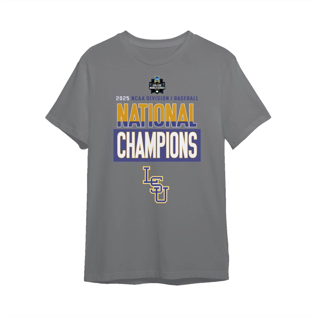 LSU Baseball Champs 2025 Shirt for Men, Locker Room Style National Title Tee, Purple & Yellow Graphic Fanwear, Victory Celebration Look