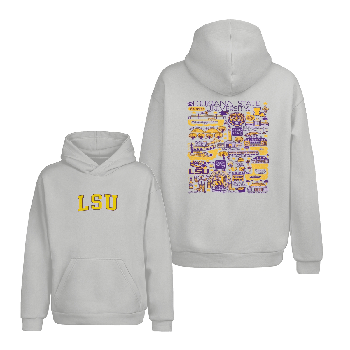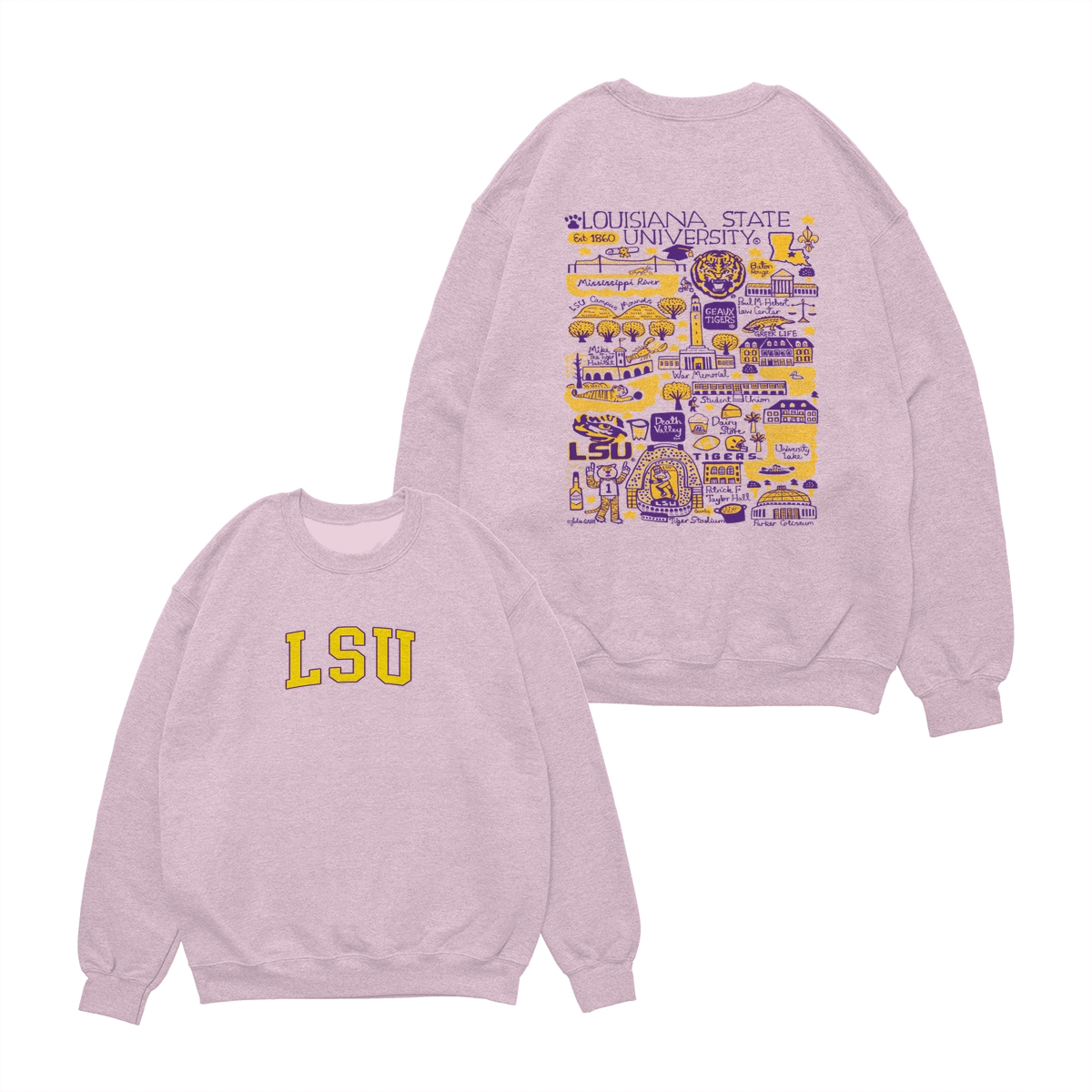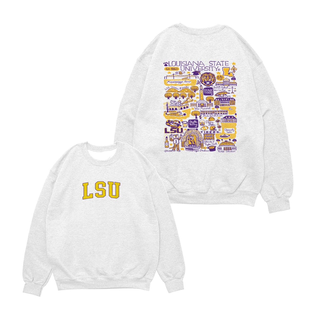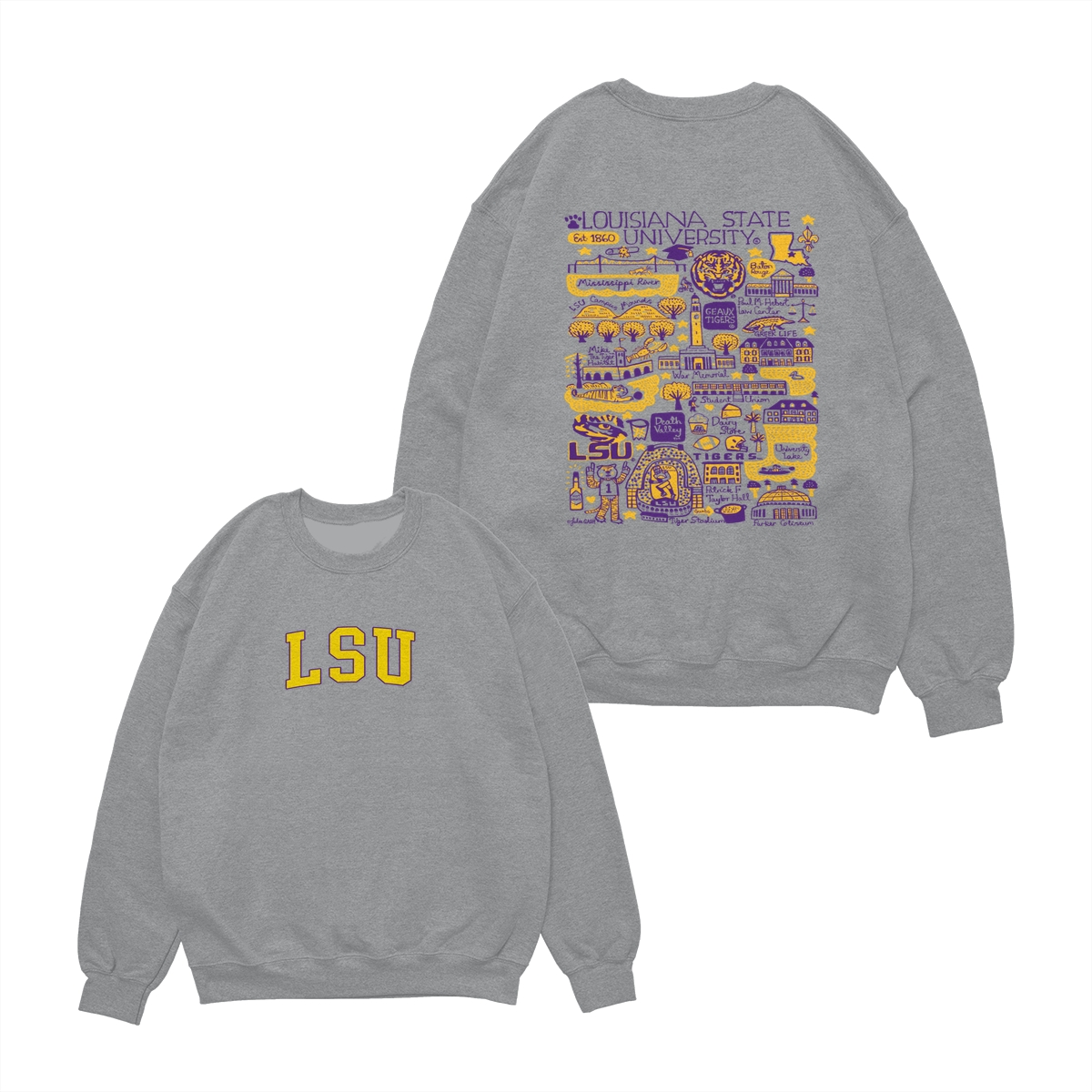 LSU Campus Icons Sweatshirt, Louisiana State University Sand Crewneck, Oversized Game Day Pullover with LSU Landmarks, College Spirit Shirt for Students and Tigers Fans, Geaux Tigers Shirt
