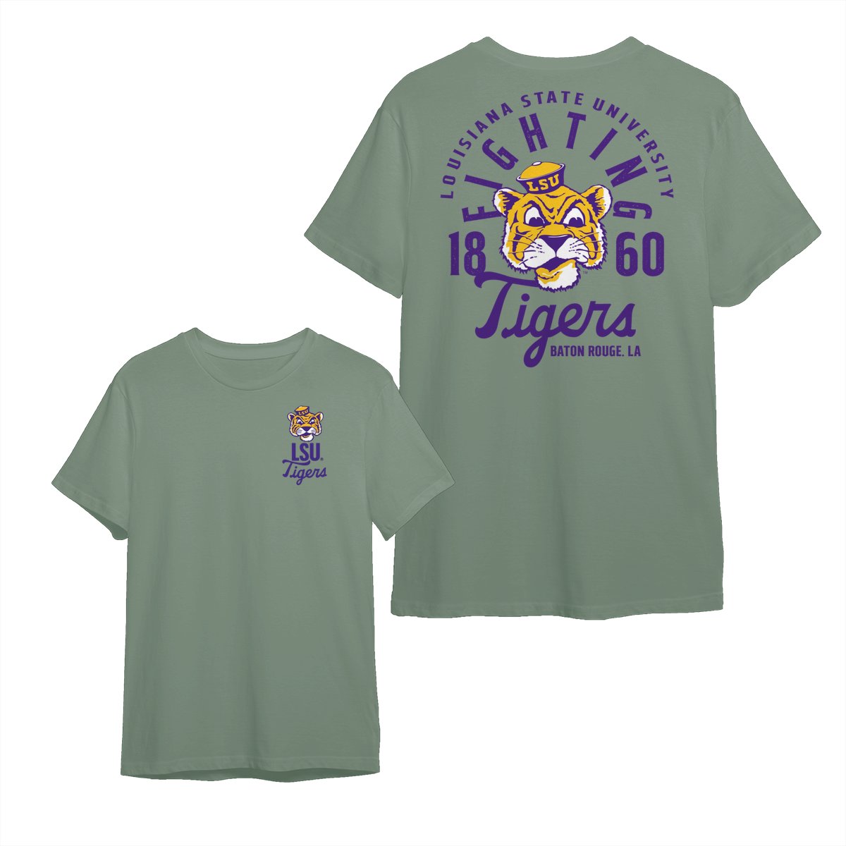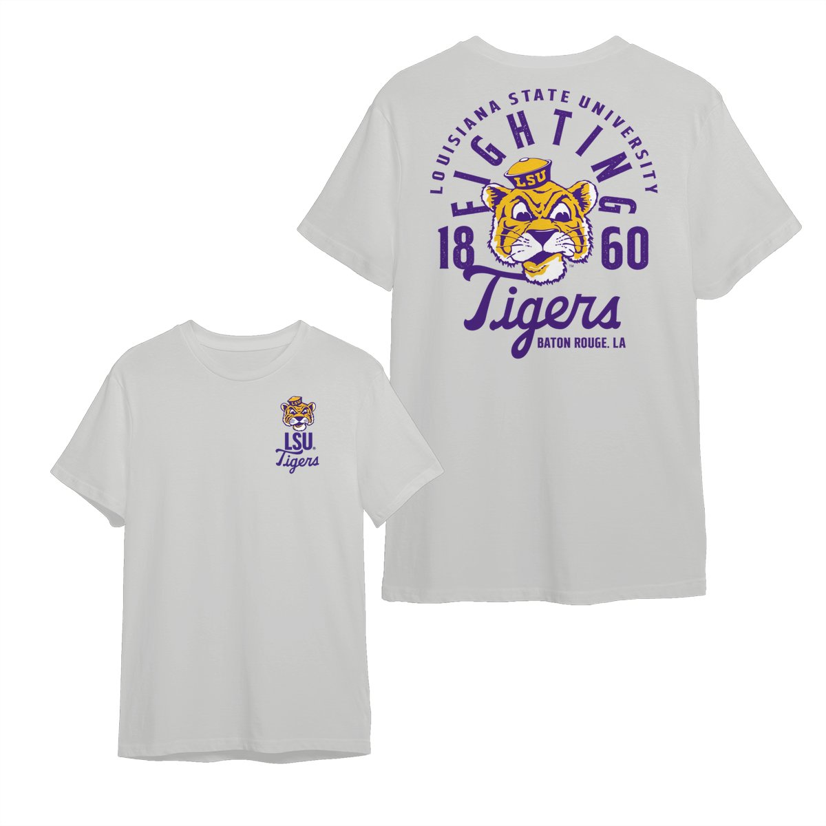 LSU Tiger Team NCAA Graphic Mascot Overlay 2 Side T-Shirt, Vintage College Graphic Tee, Sport Fan Gift Shirt, Men’s Oversized Athletic Tshirt