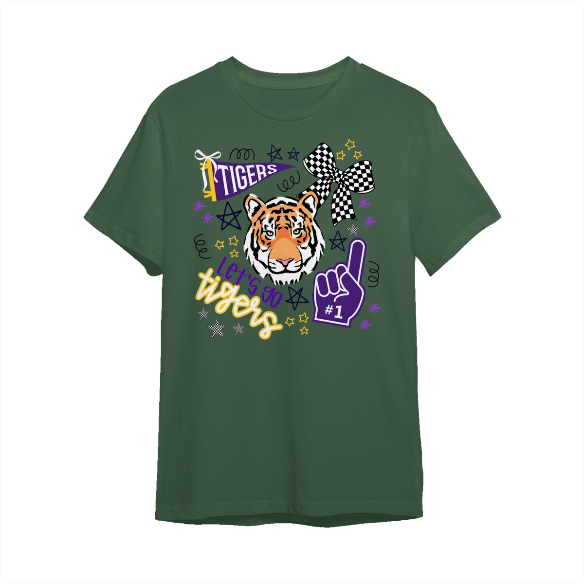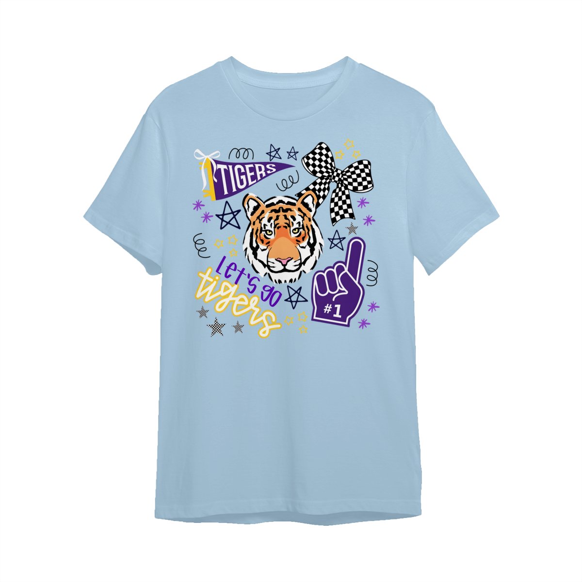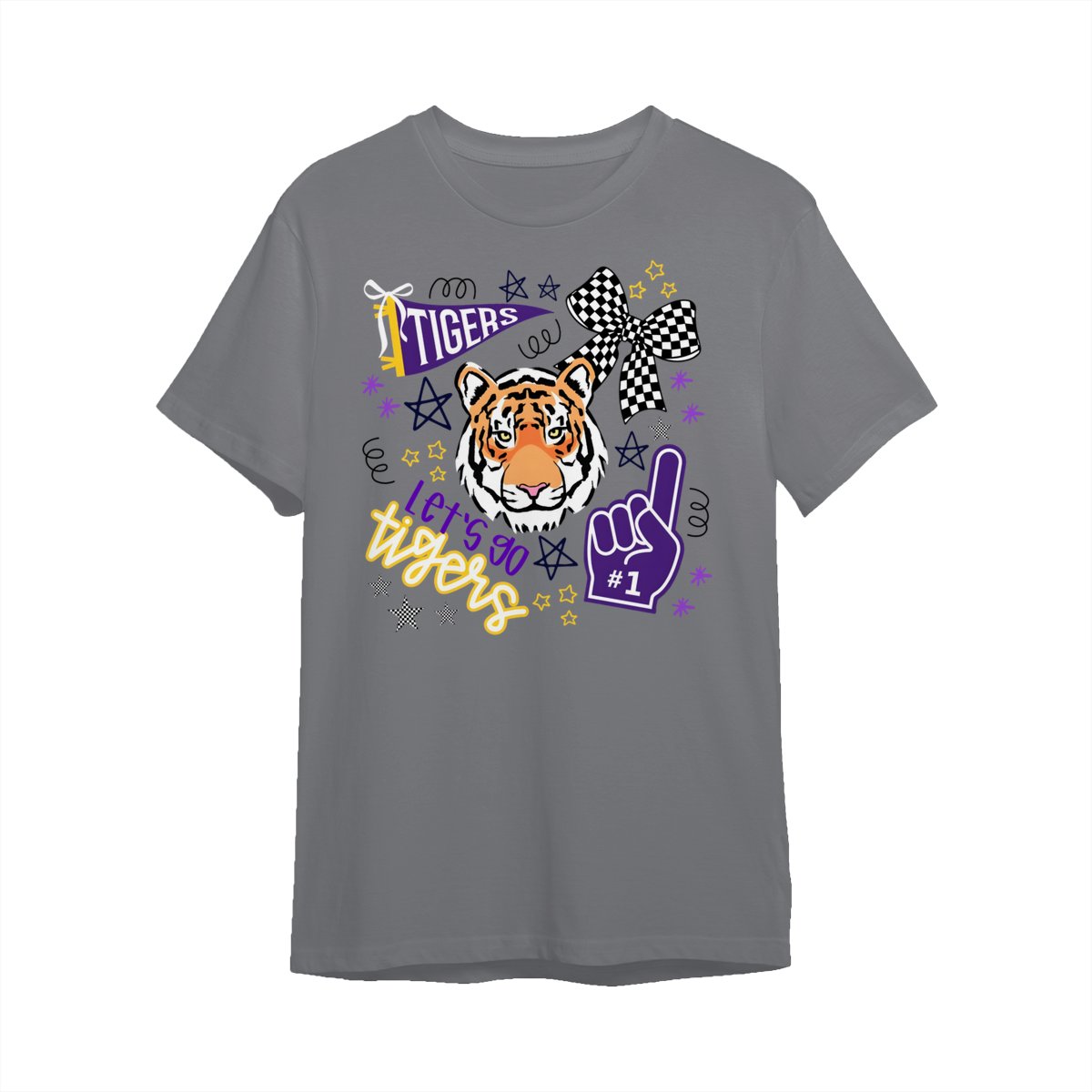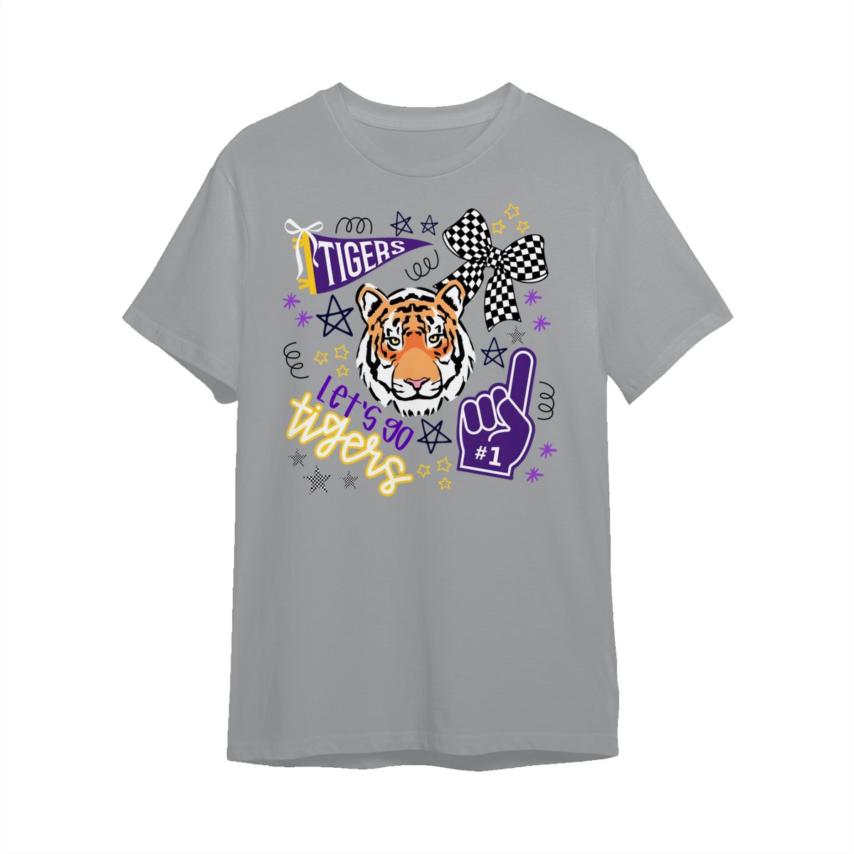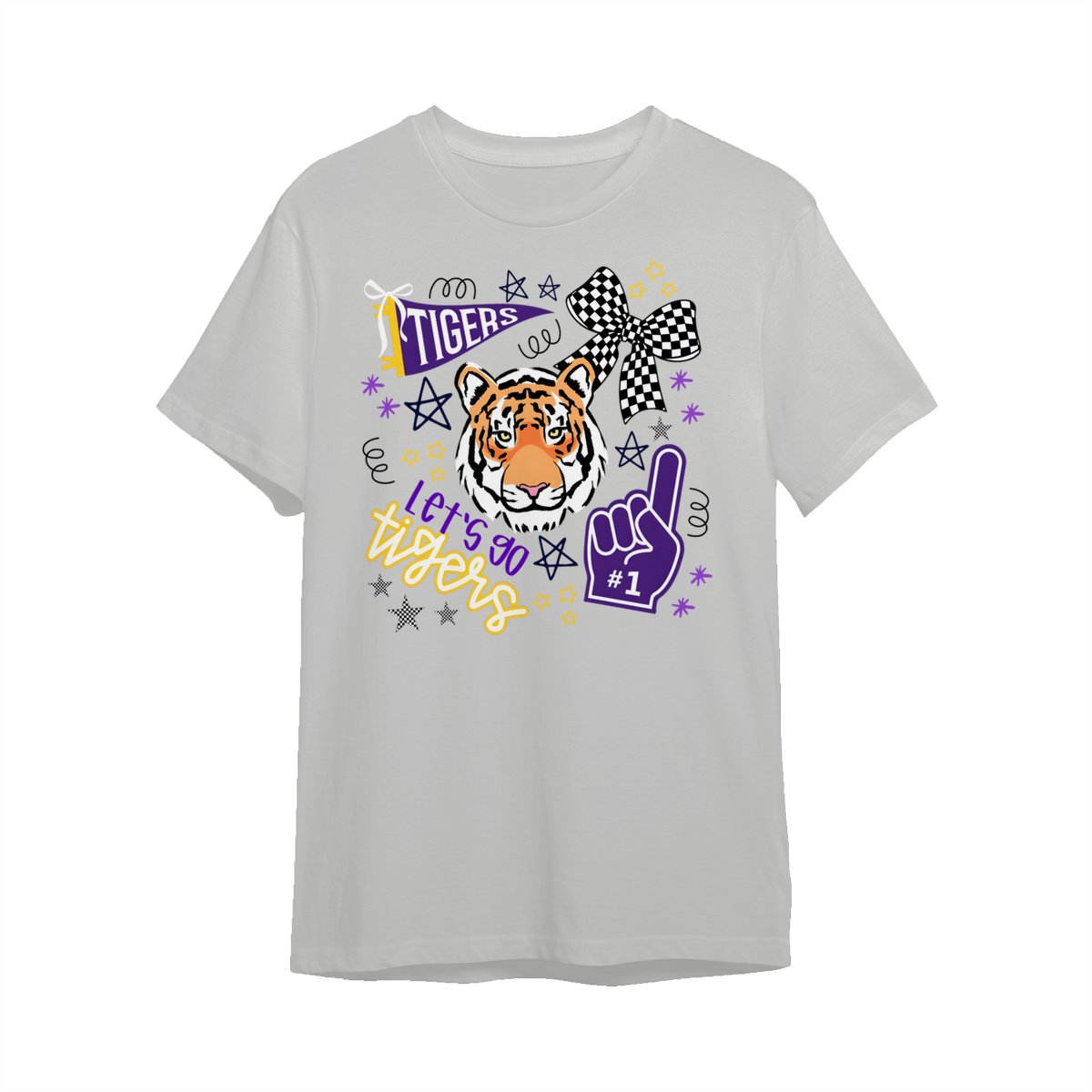 LSU Tigers Fan T-Shirt – “Let’s Go Tigers” Graphic with Tiger Face and Cheer Elements – Soft Cotton Blend Shirt – Unisex Sports Apparel – College Fan Gear