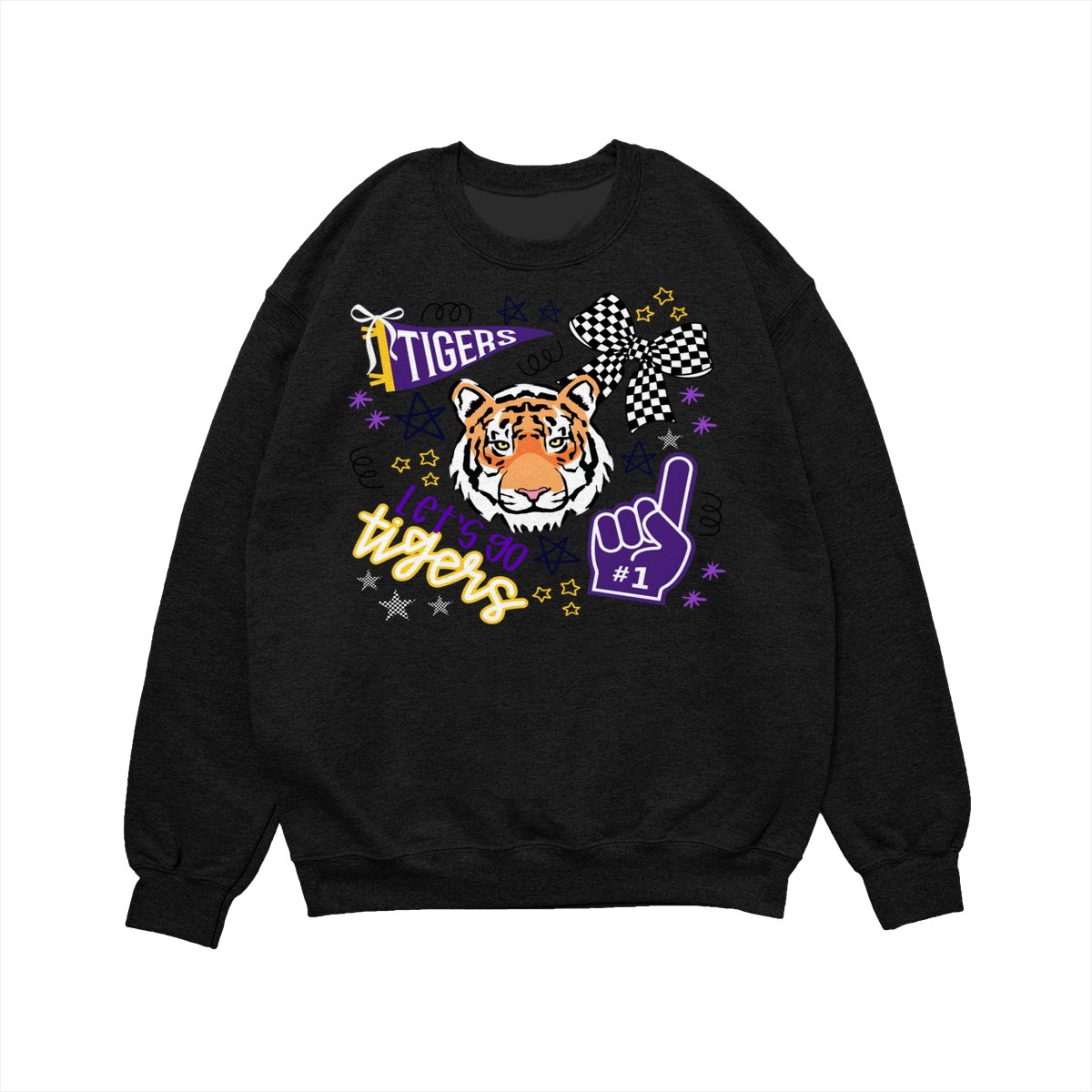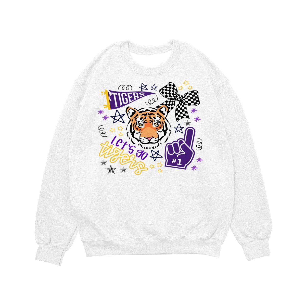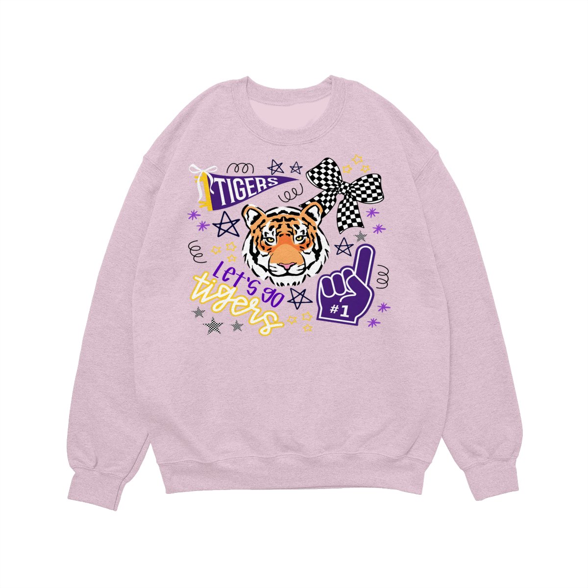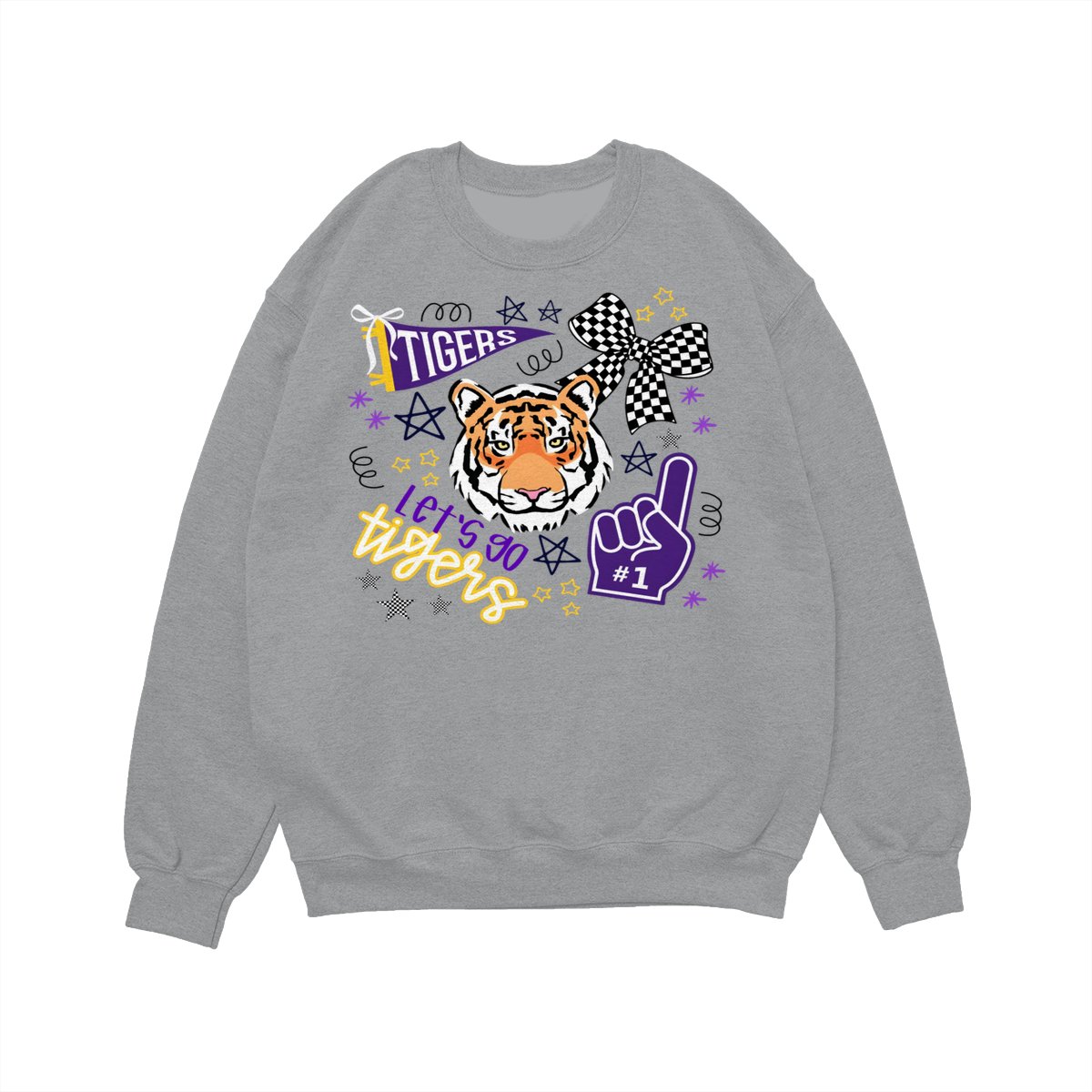 LSU Tigers Fan T-Shirt – “Let’s Go Tigers” Graphic with Tiger Face and Cheer Elements – Soft Cotton Blend Shirt – Unisex Sports Apparel – College Fan Gear