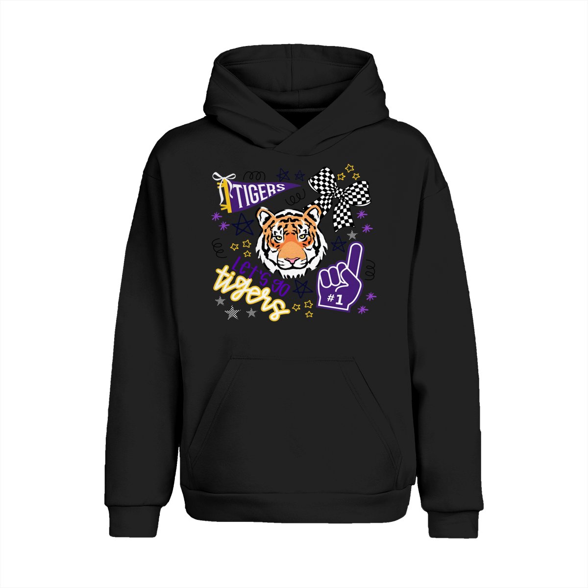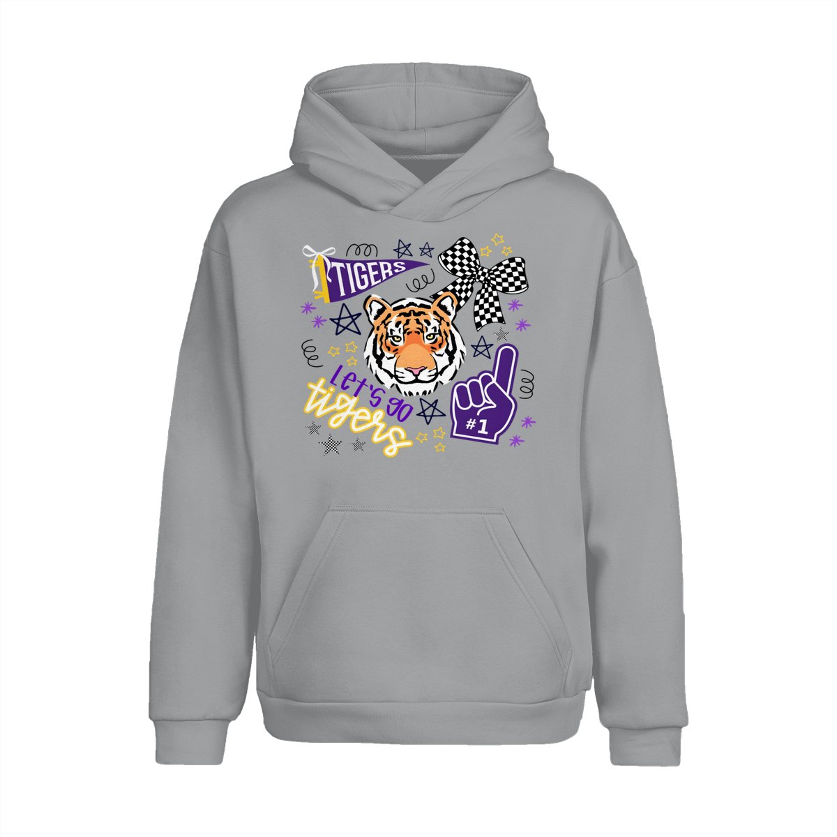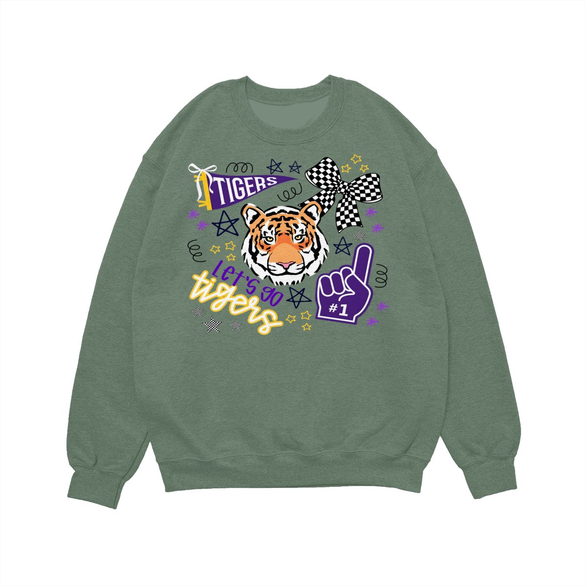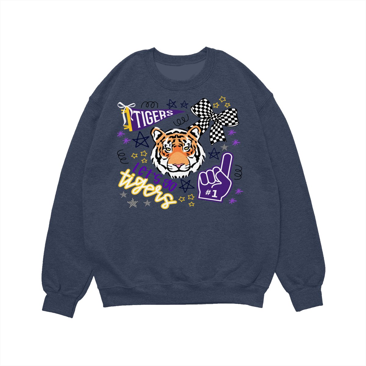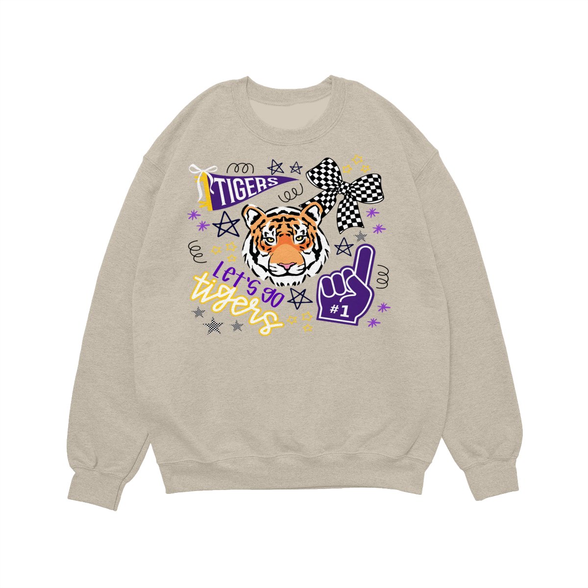 LSU Tigers Fan T-Shirt – “Let’s Go Tigers” Graphic with Tiger Face and Cheer Elements – Soft Cotton Blend Shirt – Unisex Sports Apparel – College Fan Gear