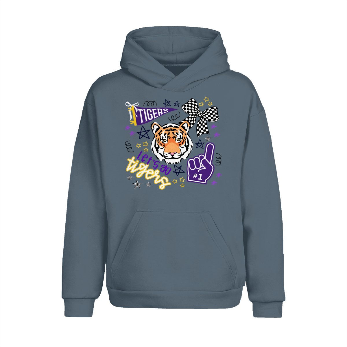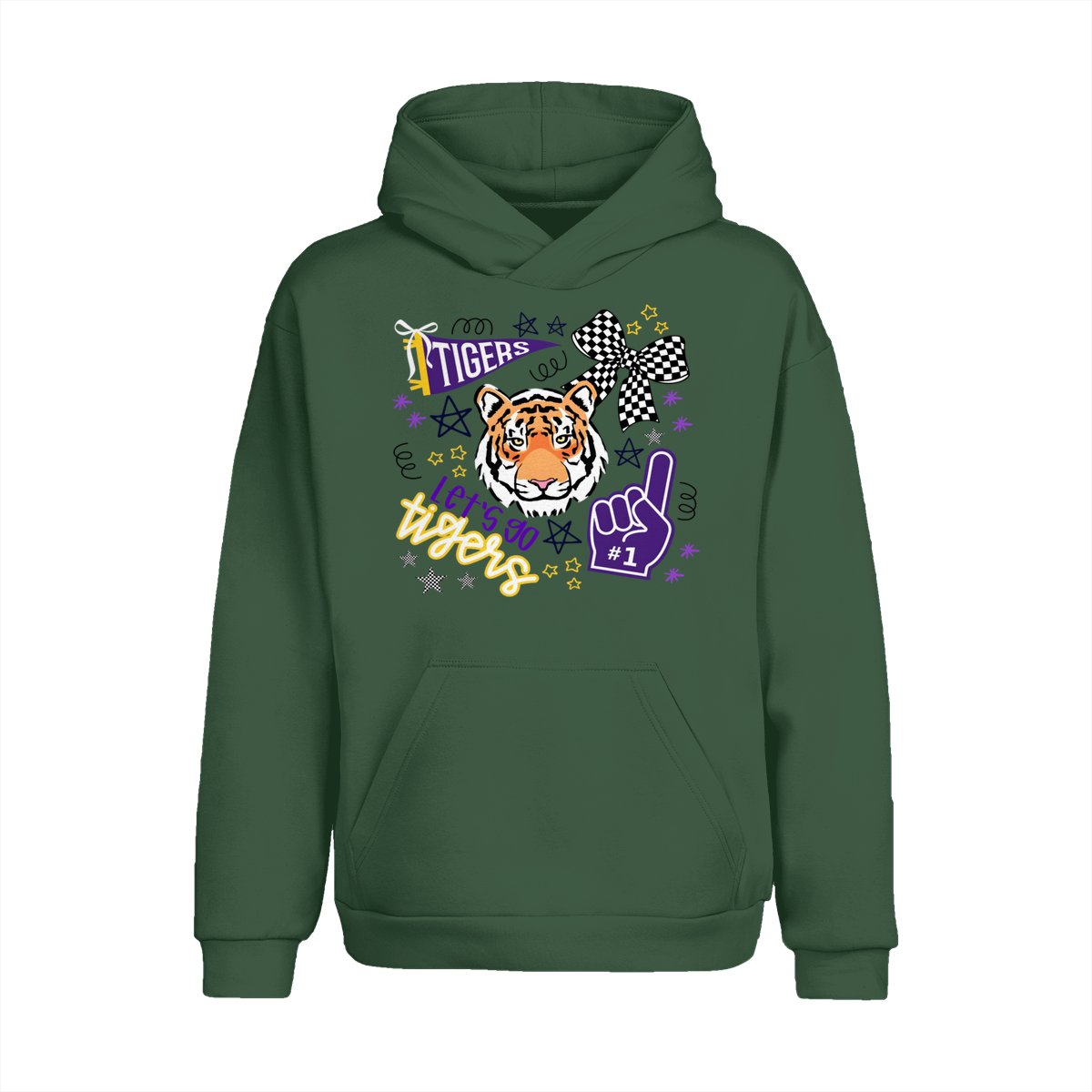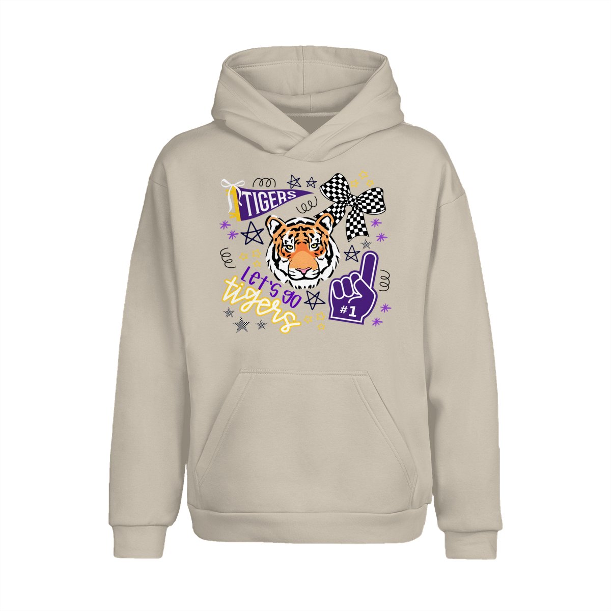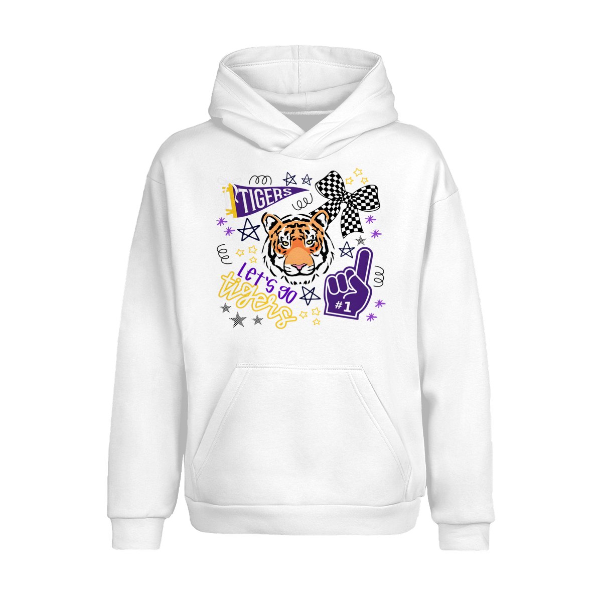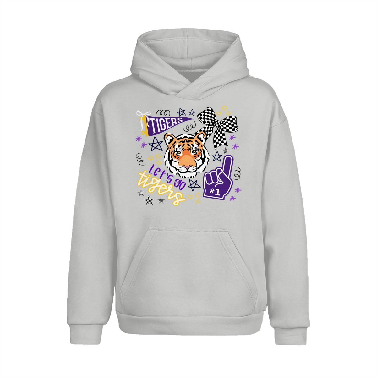 LSU Tigers Fan T-Shirt – “Let’s Go Tigers” Graphic with Tiger Face and Cheer Elements – Soft Cotton Blend Shirt – Unisex Sports Apparel – College Fan Gear
