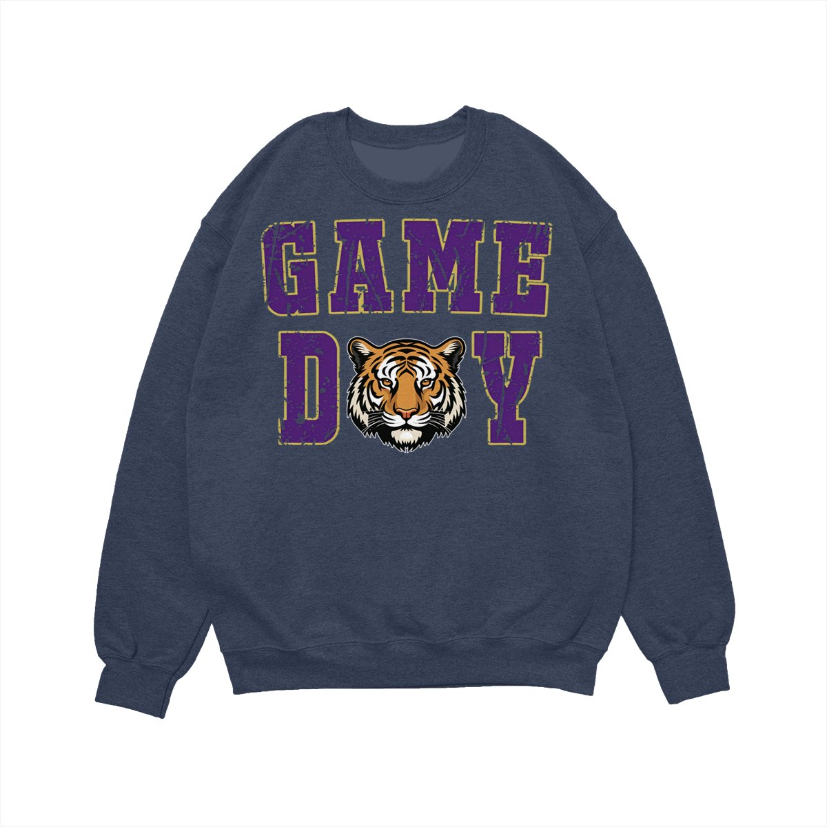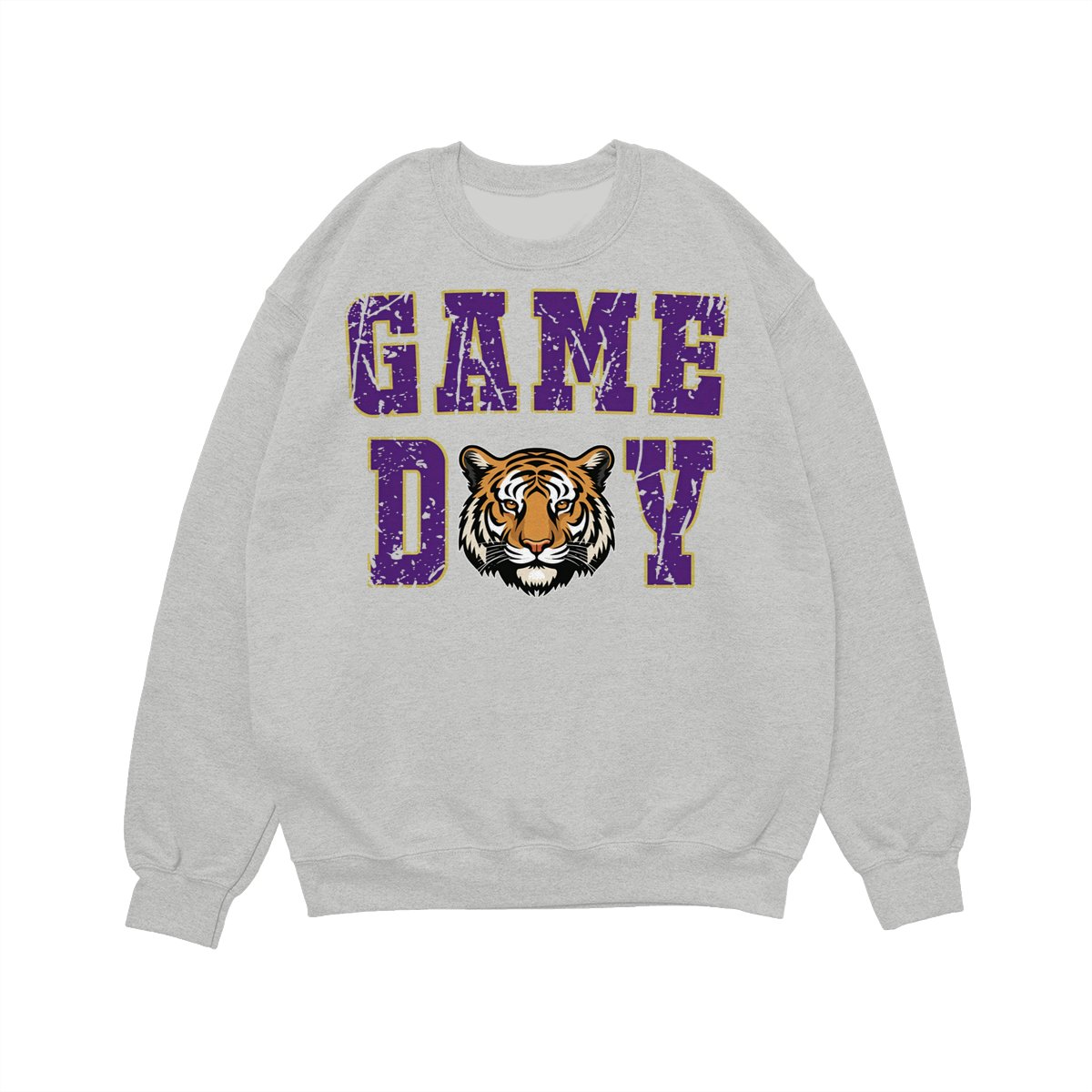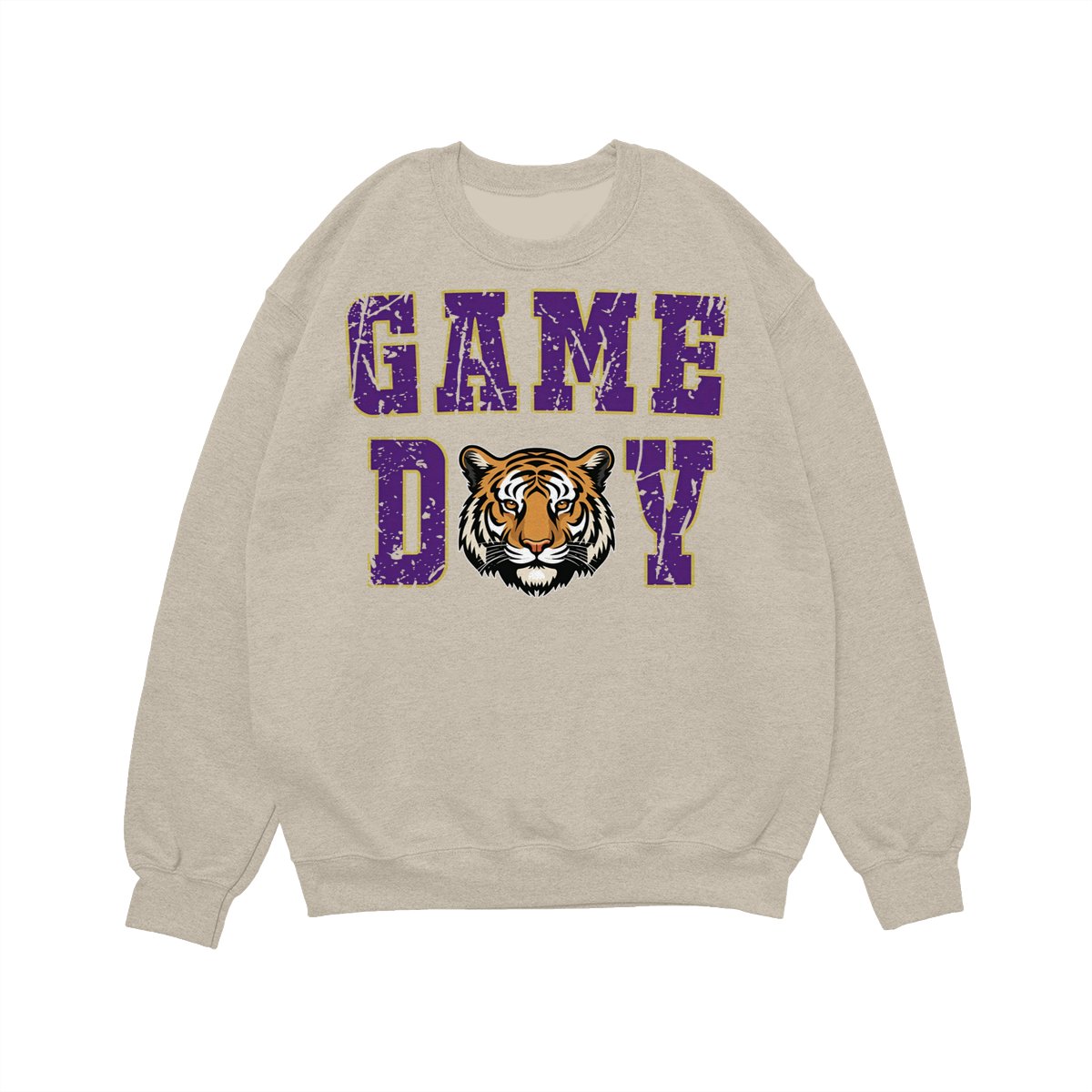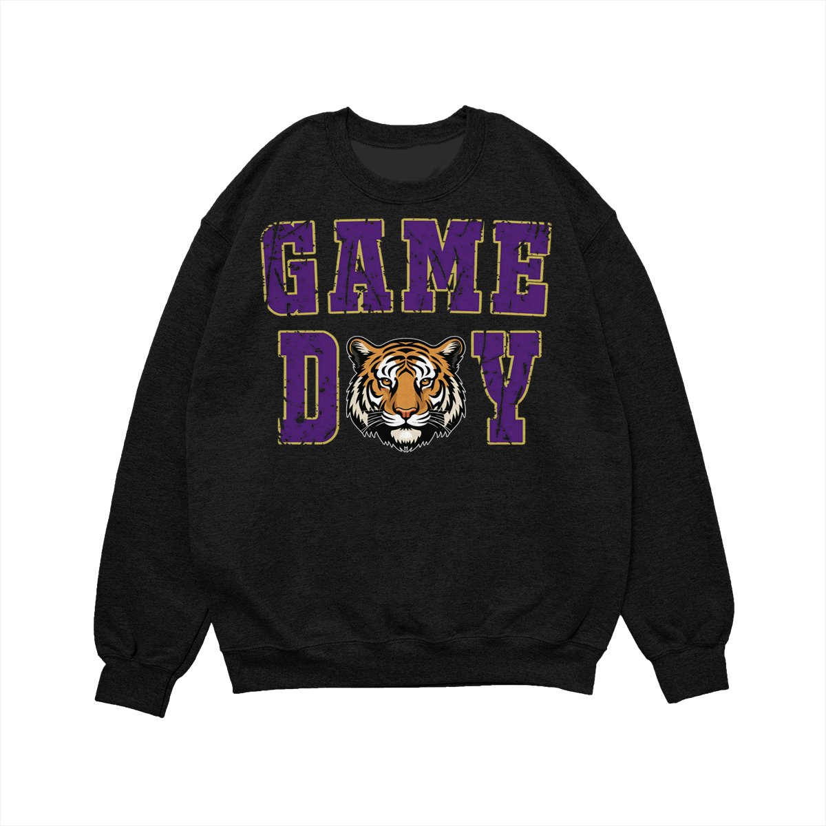 LSU Tigers Game Day Shirt, Vintage Distressed Purple Gold Tiger Graphic Pullover, College Football Spirit Crewneck