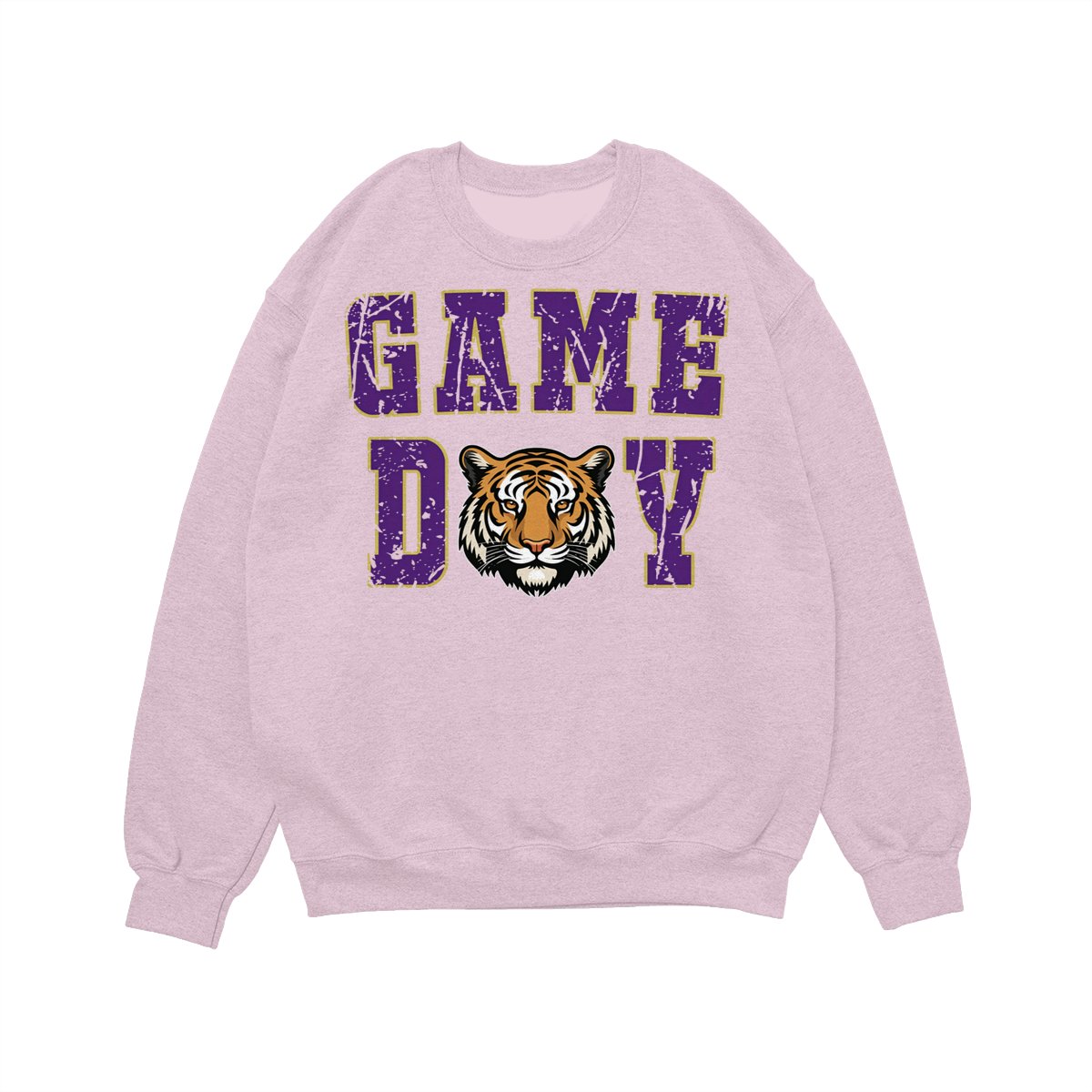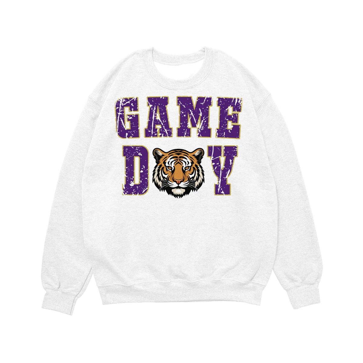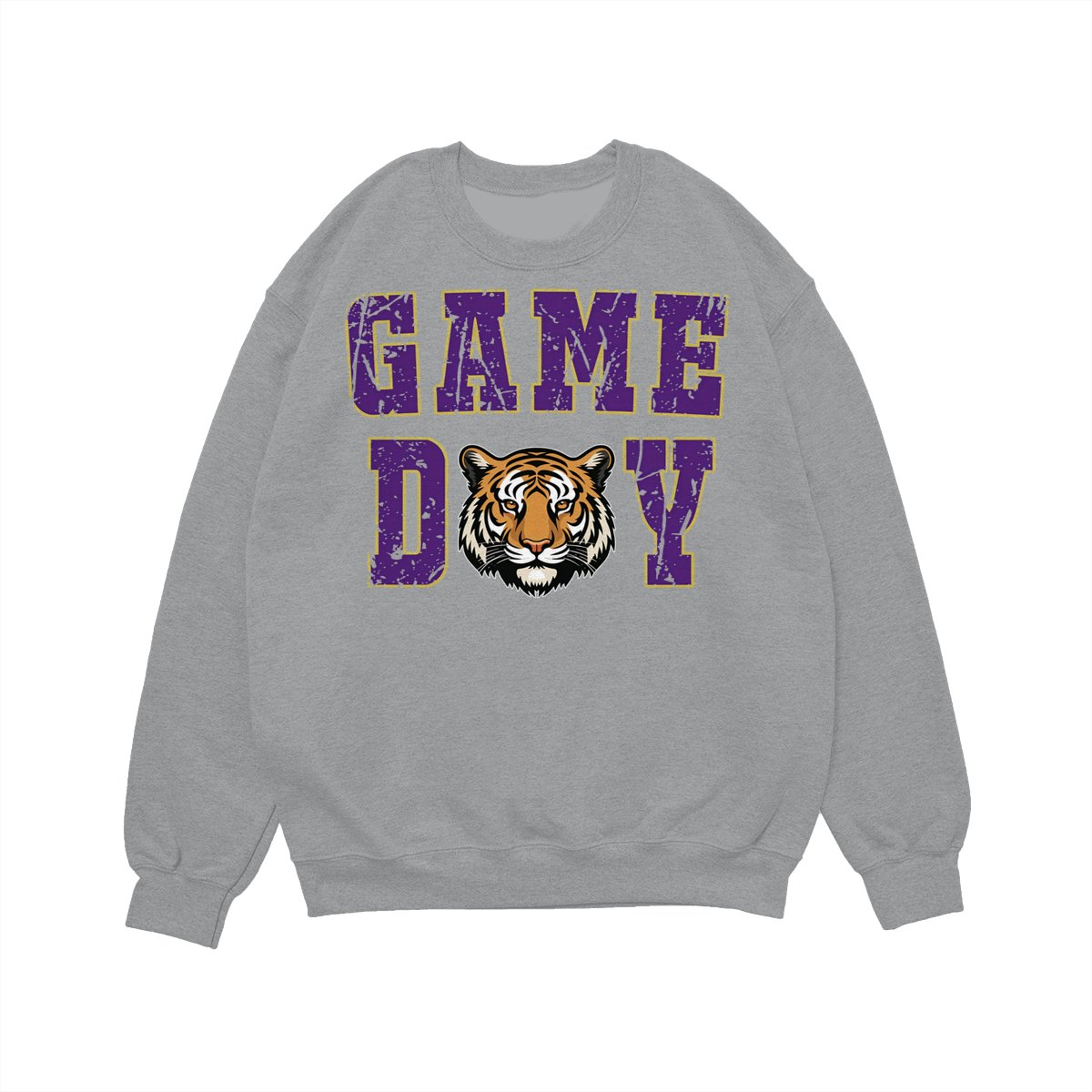 LSU Tigers Game Day Shirt, Vintage Distressed Purple Gold Tiger Graphic Pullover, College Football Spirit Crewneck
