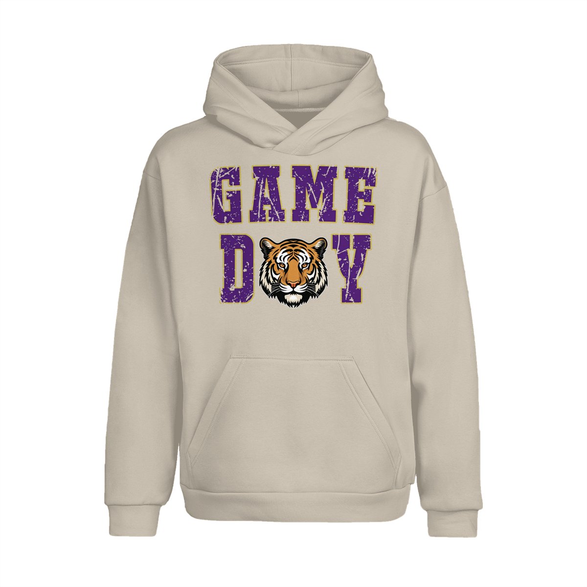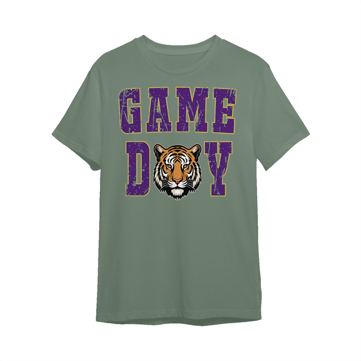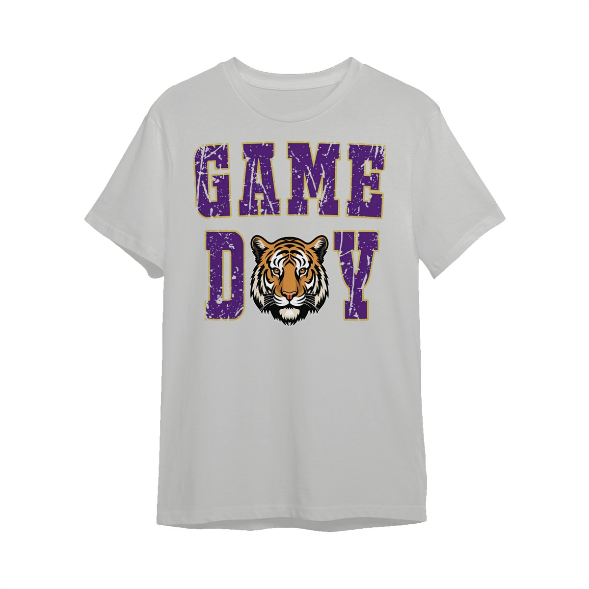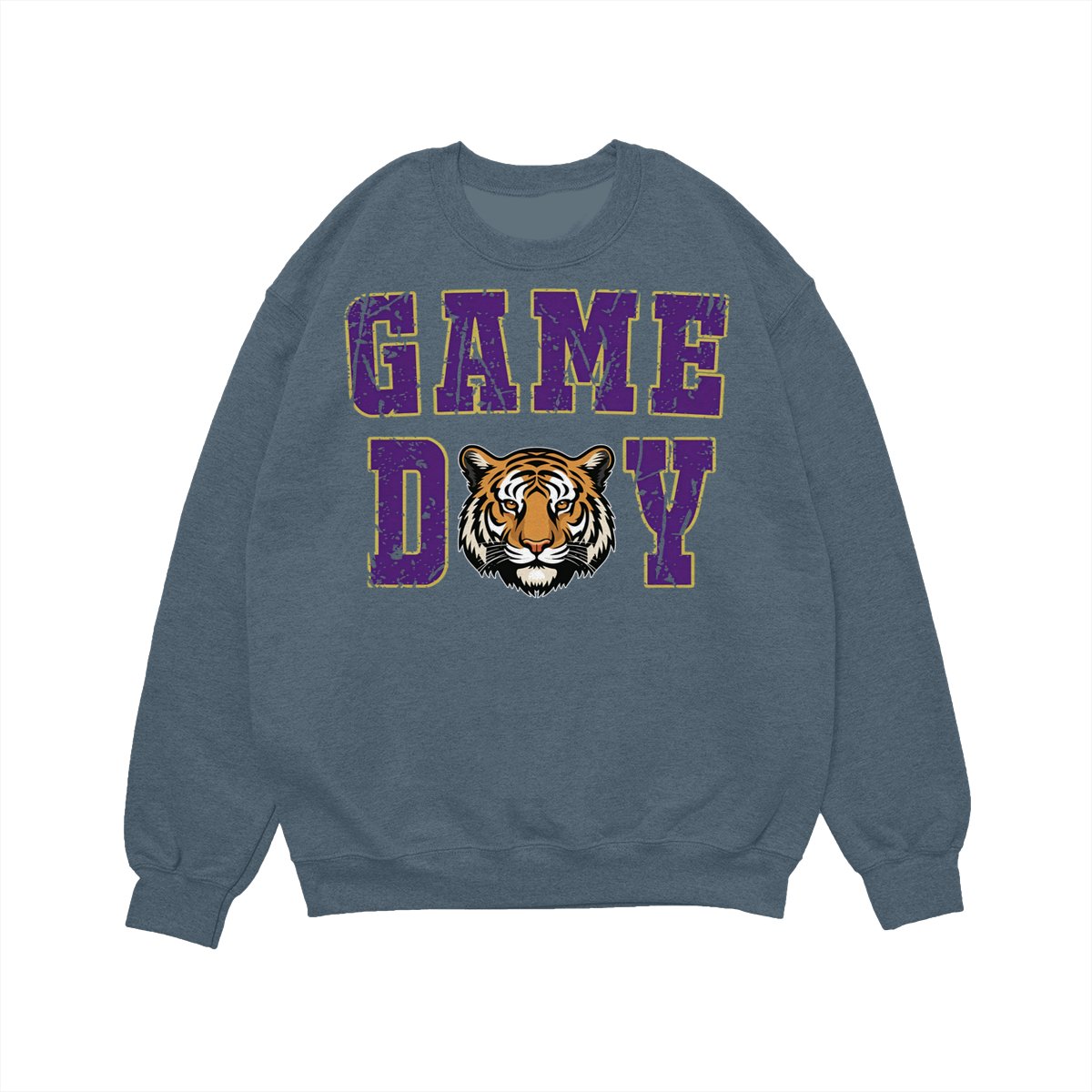 LSU Tigers Game Day Shirt, Vintage Distressed Purple Gold Tiger Graphic Pullover, College Football Spirit Crewneck