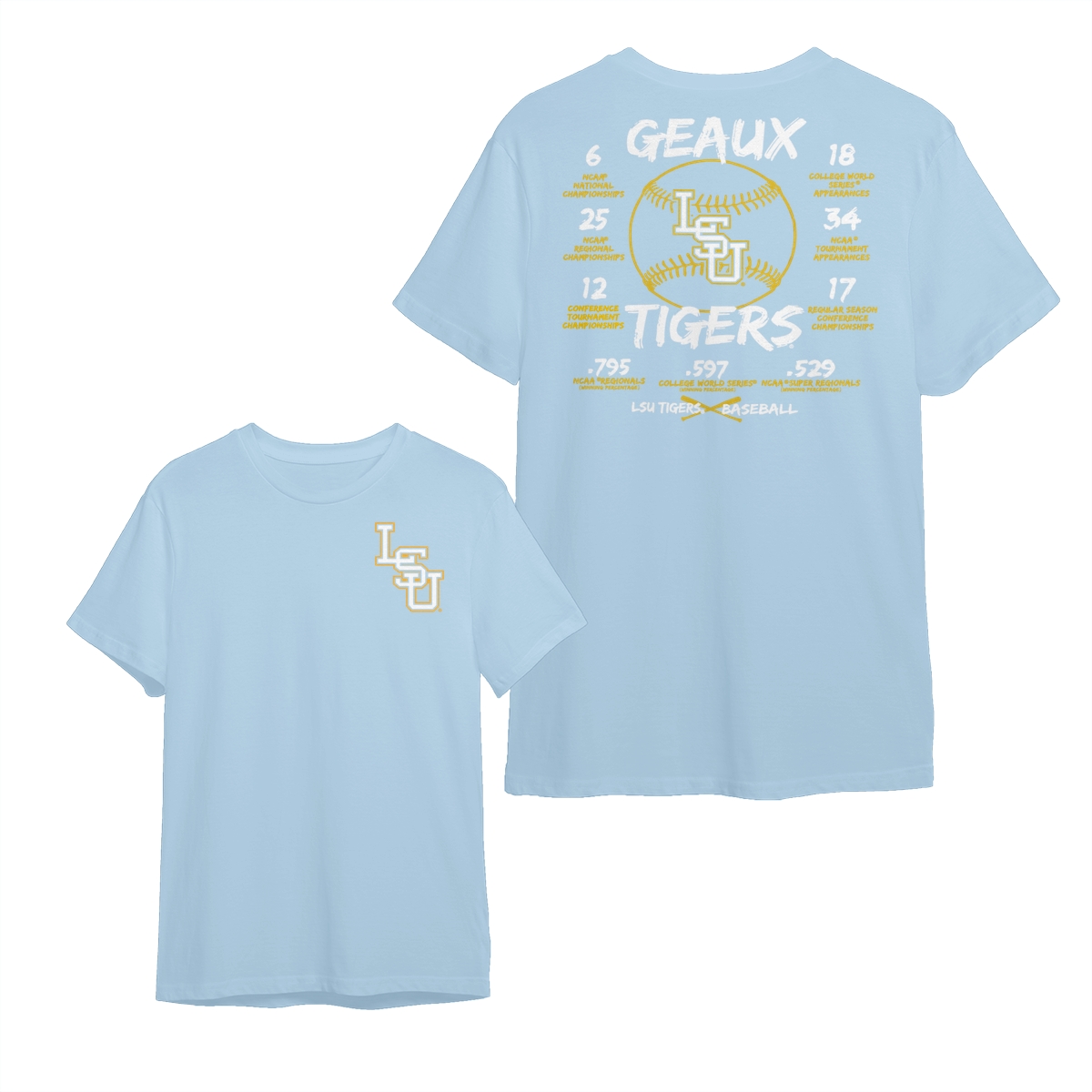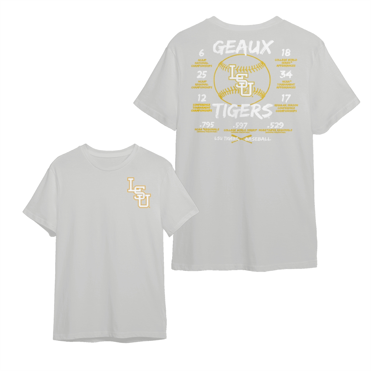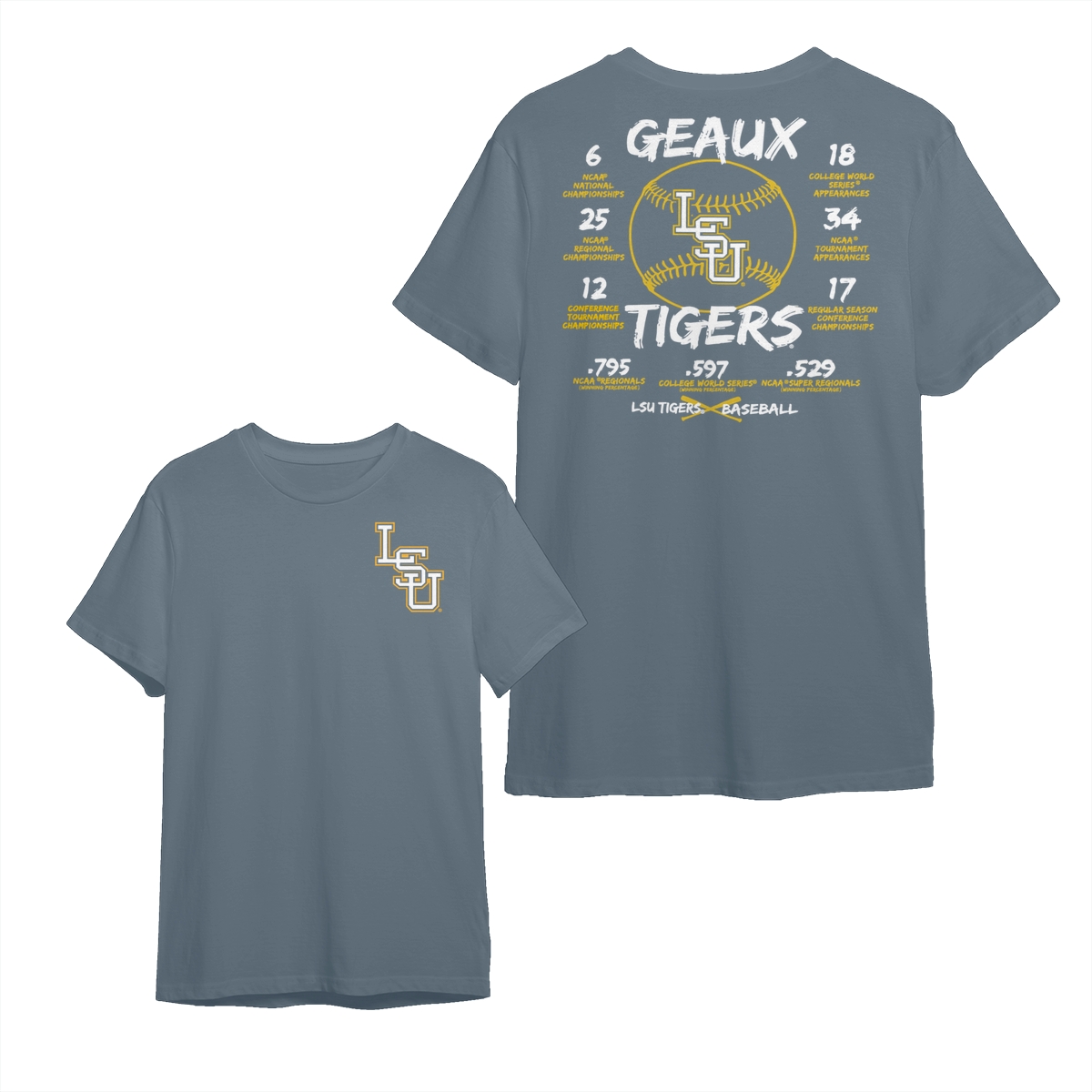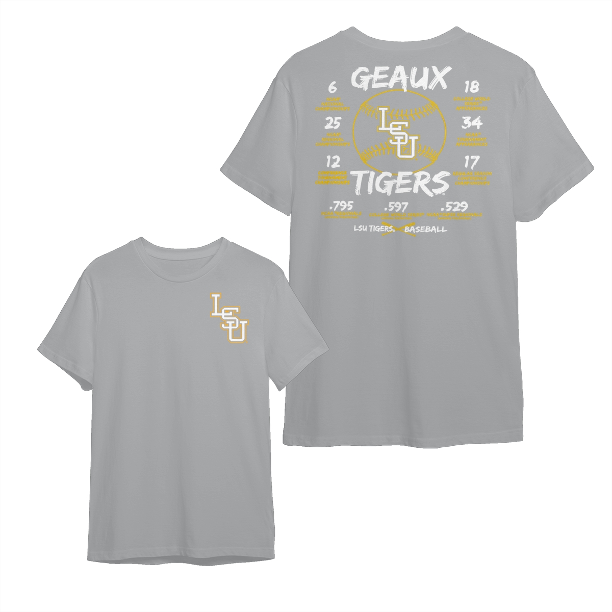 LSU Tigers Geaux Baseball T-Shirt, Soft Cotton Graphic Tee, NCAA Baseball Stats & Records Design, LSU College Apparel for Men & Women, Baseball Fan Gift Idea