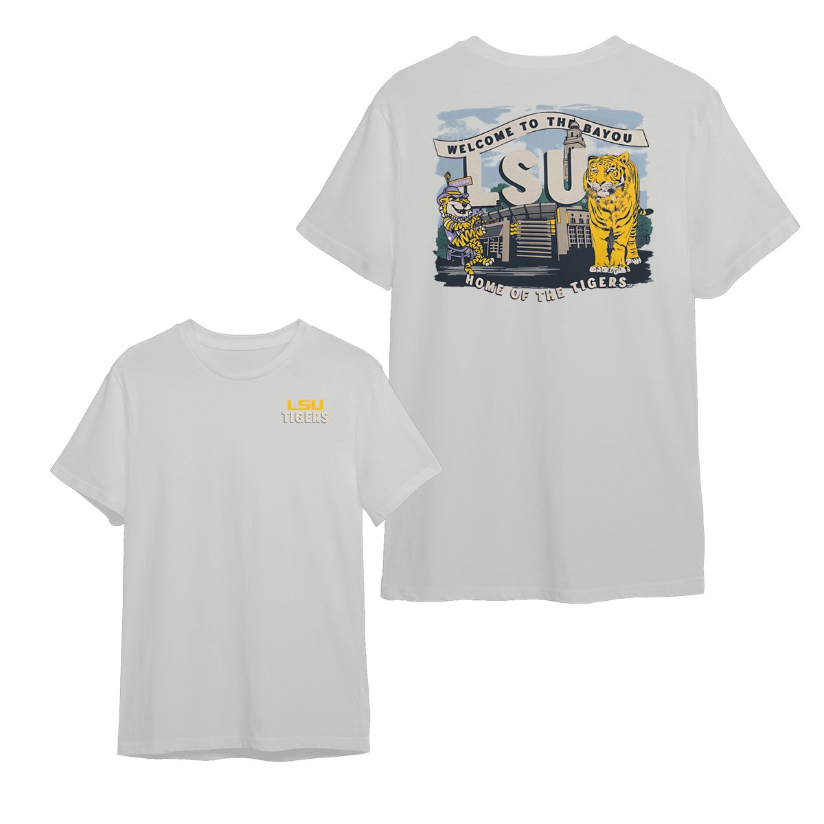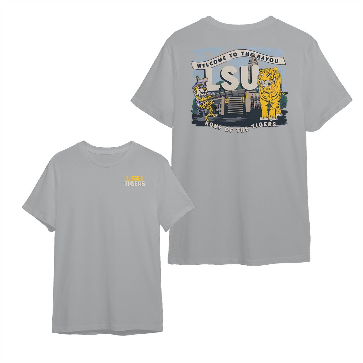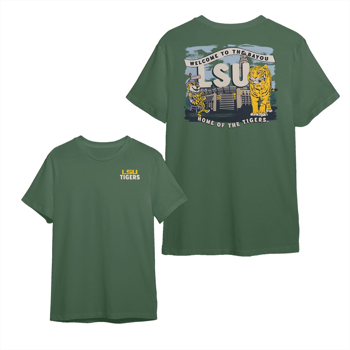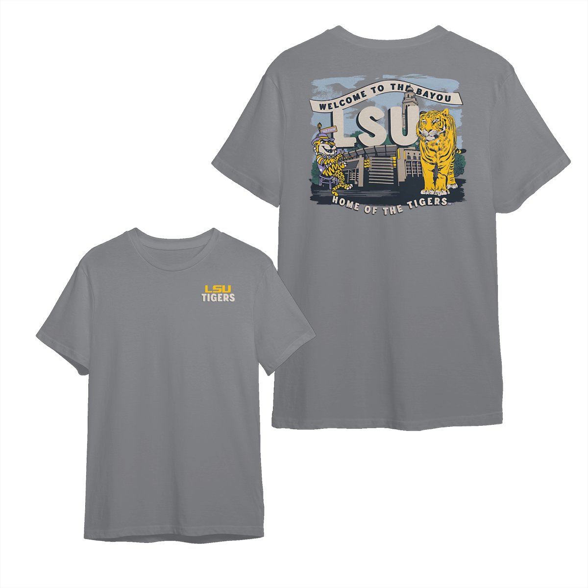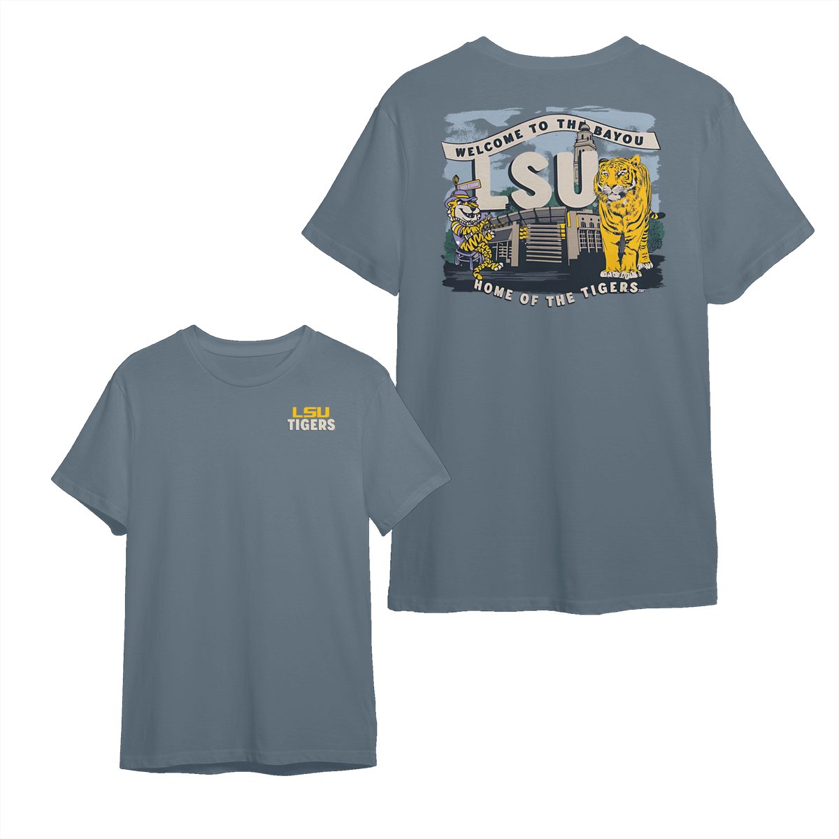 LSU Tigers “Welcome to the Bayou” T-Shirt – Purple Short Sleeve Graphic Tee for Louisiana State University Fans – Mike the Tiger Mascot & Tiger Illustration – College Football Spirit Shirt