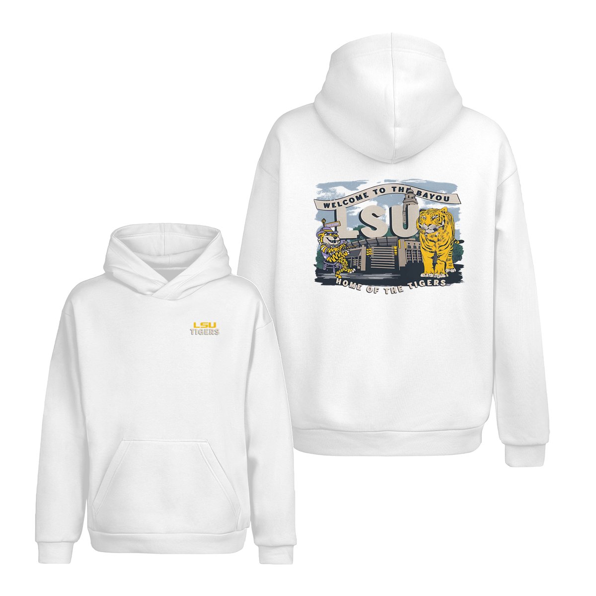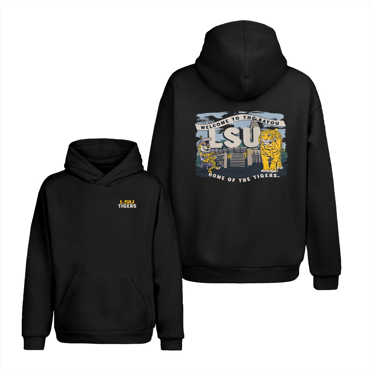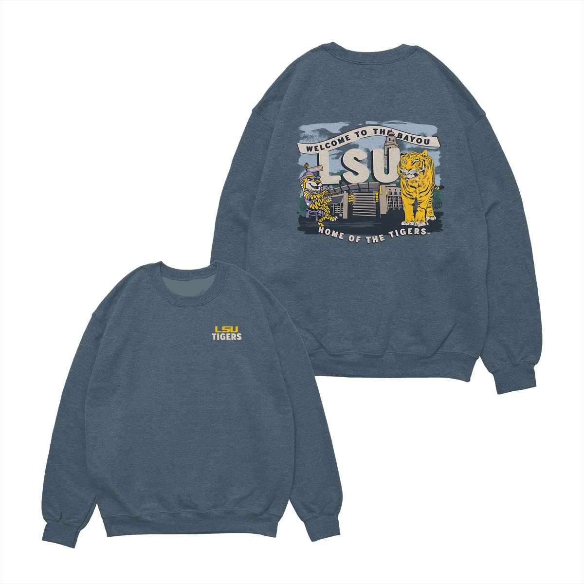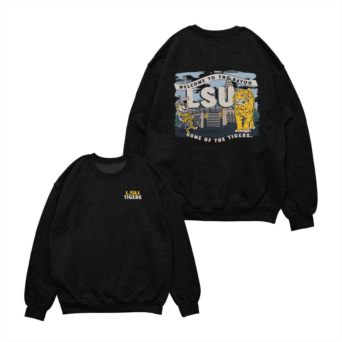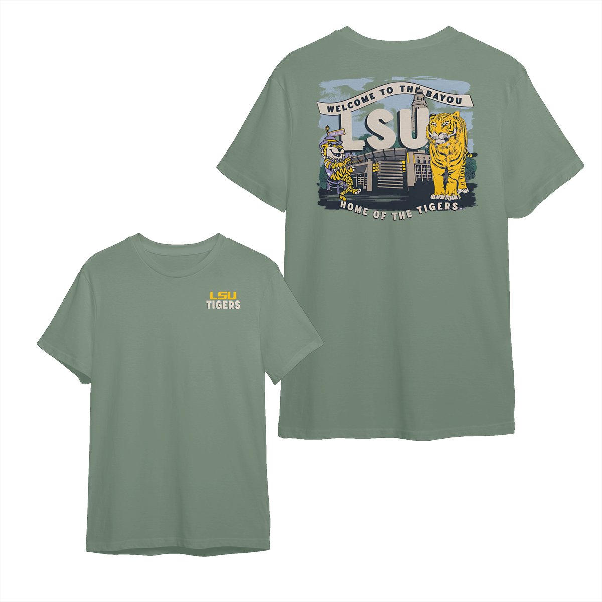 LSU Tigers “Welcome to the Bayou” T-Shirt – Purple Short Sleeve Graphic Tee for Louisiana State University Fans – Mike the Tiger Mascot & Tiger Illustration – College Football Spirit Shirt