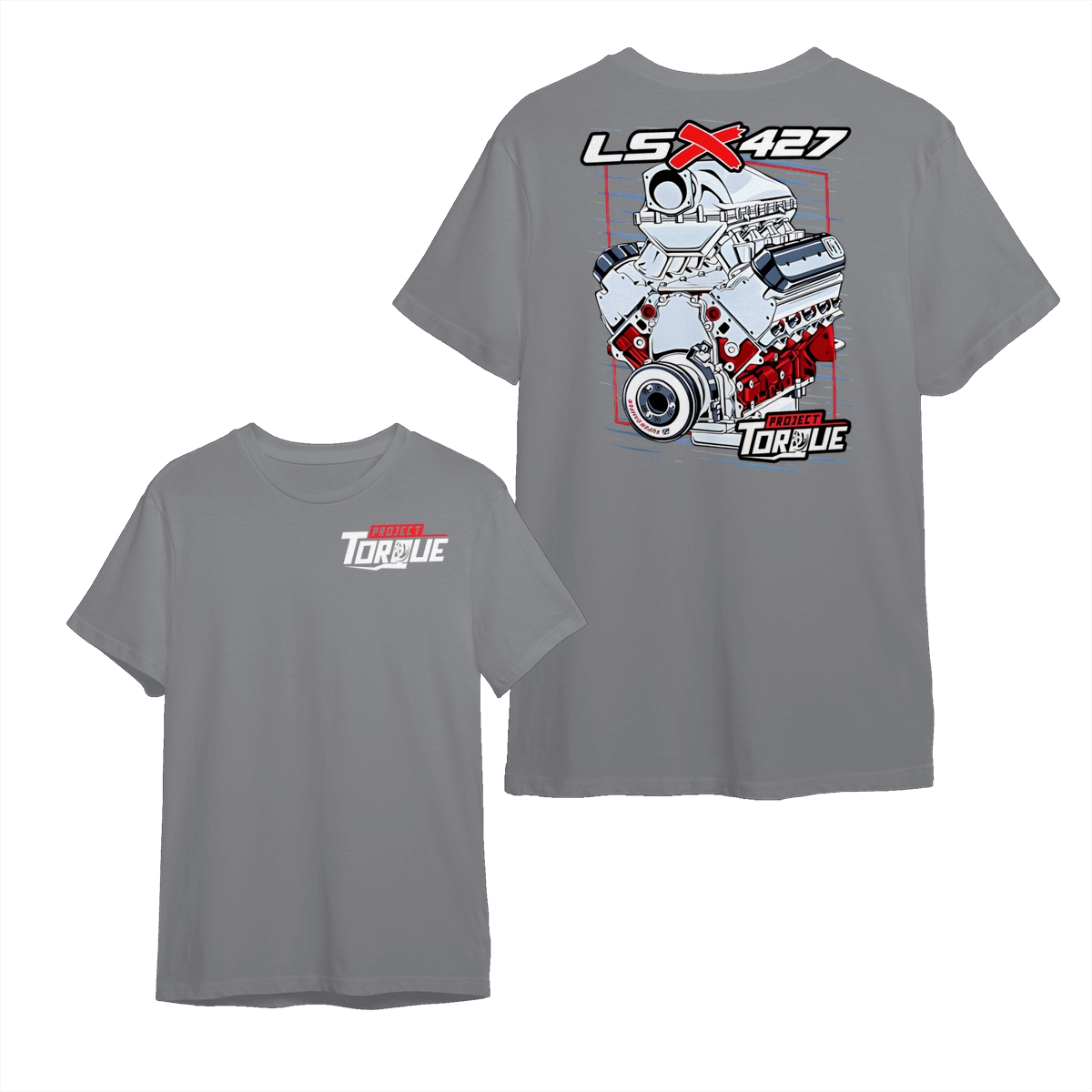 LSX 427 Engine Shirt – Project Torque muscle motor print for true gearheads, car builders & high-performance lovers chasing speed, torque & boosted power