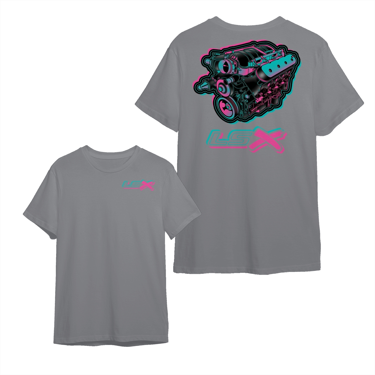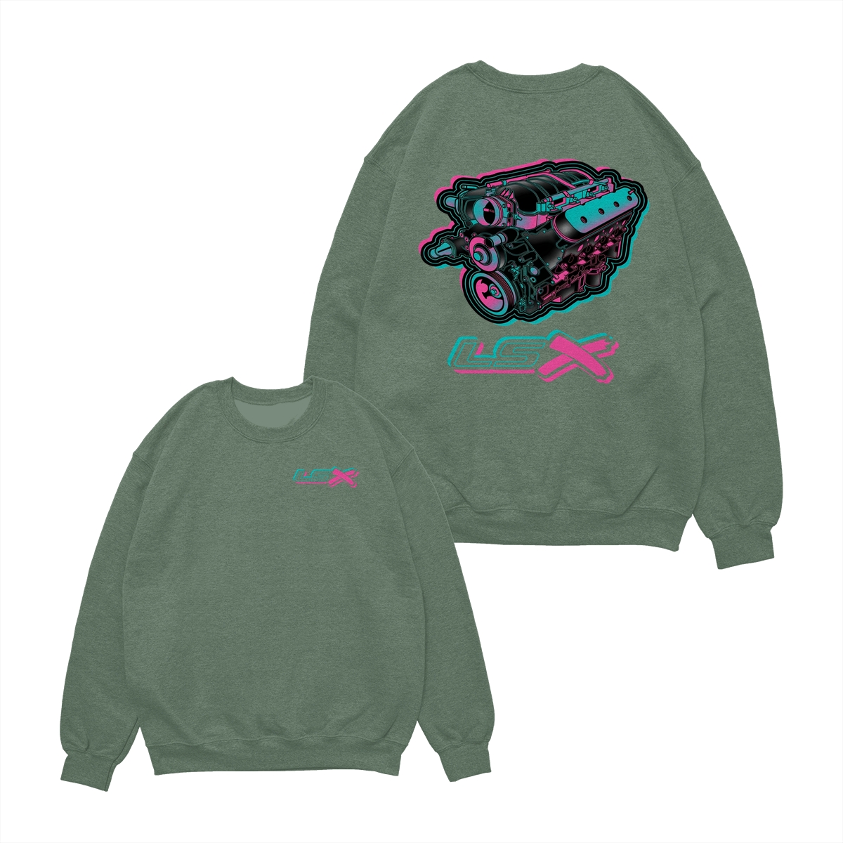 LSX Engine T-Shirt/Sweater/Hoodie – Neon Turbocharged Engine Artwork with Retro Glow Effect, Perfect for Boost Addicts and Car Mod Enthusiasts