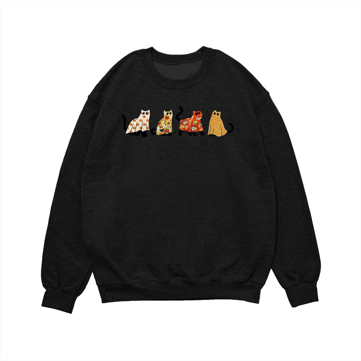 [Made In USA] Halloween Ghost Cat Tee Or TShirt/Sweatshirt/Hoodie, Featuring Black Cat And Ghost Graphic, Cozy Fall Look, Perfect For Halloween Or Thanksgiving 2025, Great Gift For Cat Lovers