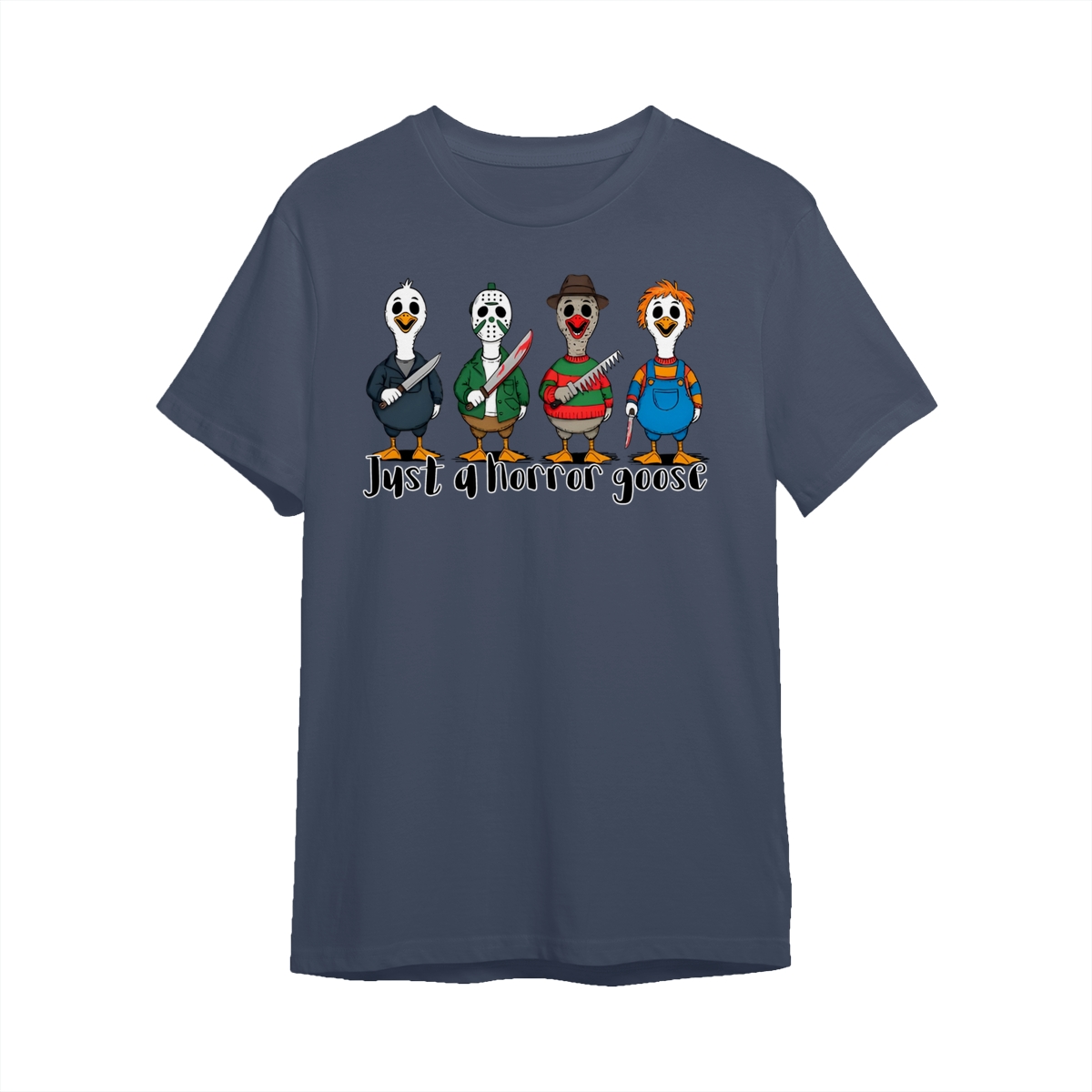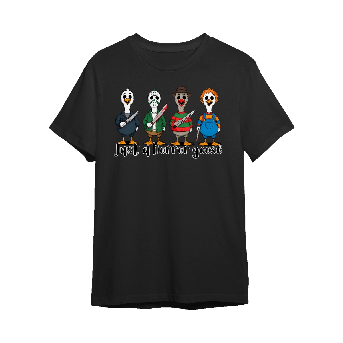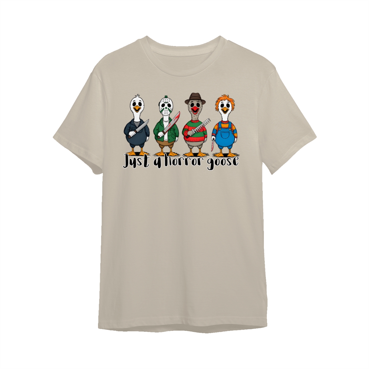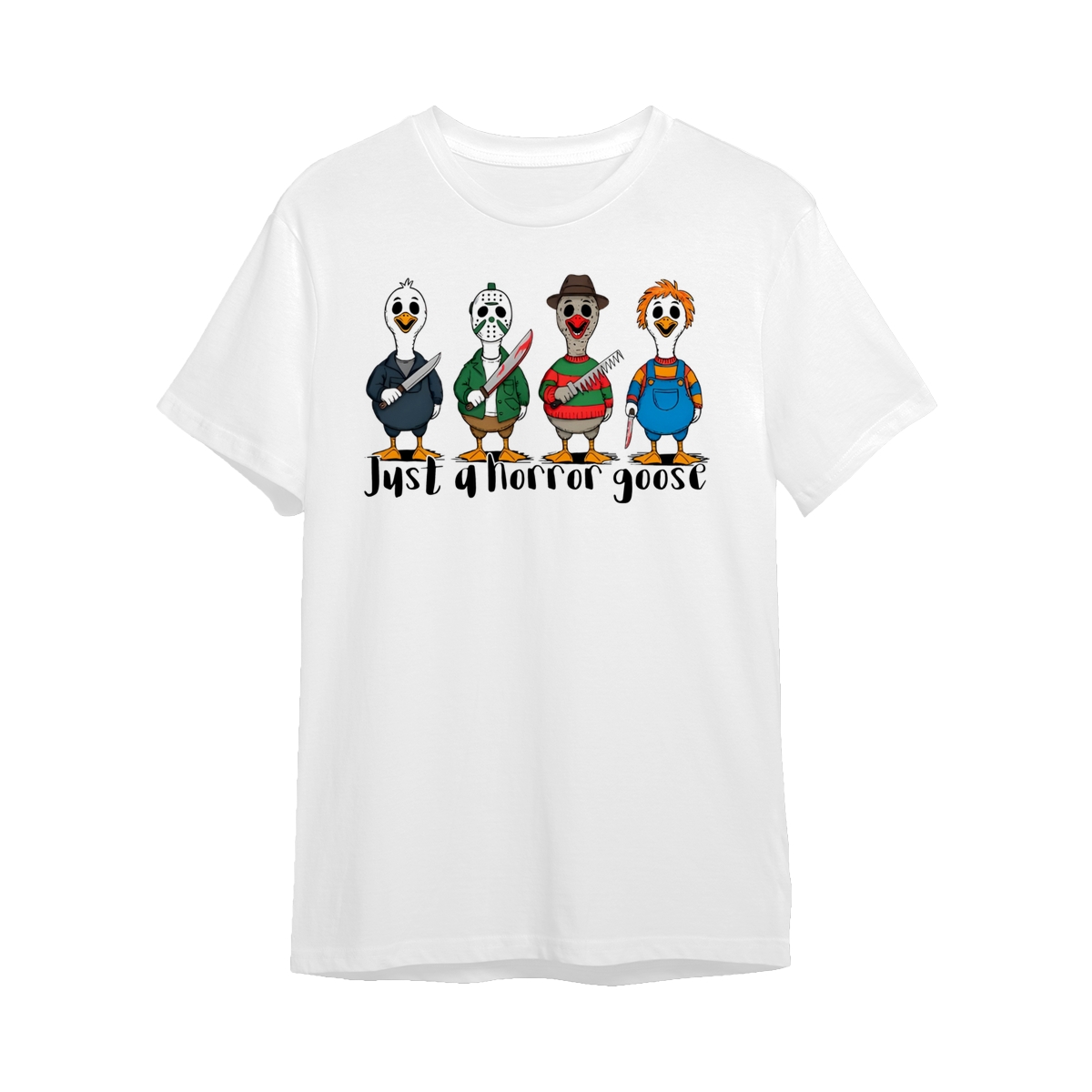 [Made In USA] Just A Horror Goose Halloween Silly Goose Trendy Vintage Short Sleeve Tee, Spooky – Sweet – This Round Neck Cotton T-shirt Is The Perfect Halloween Gift!