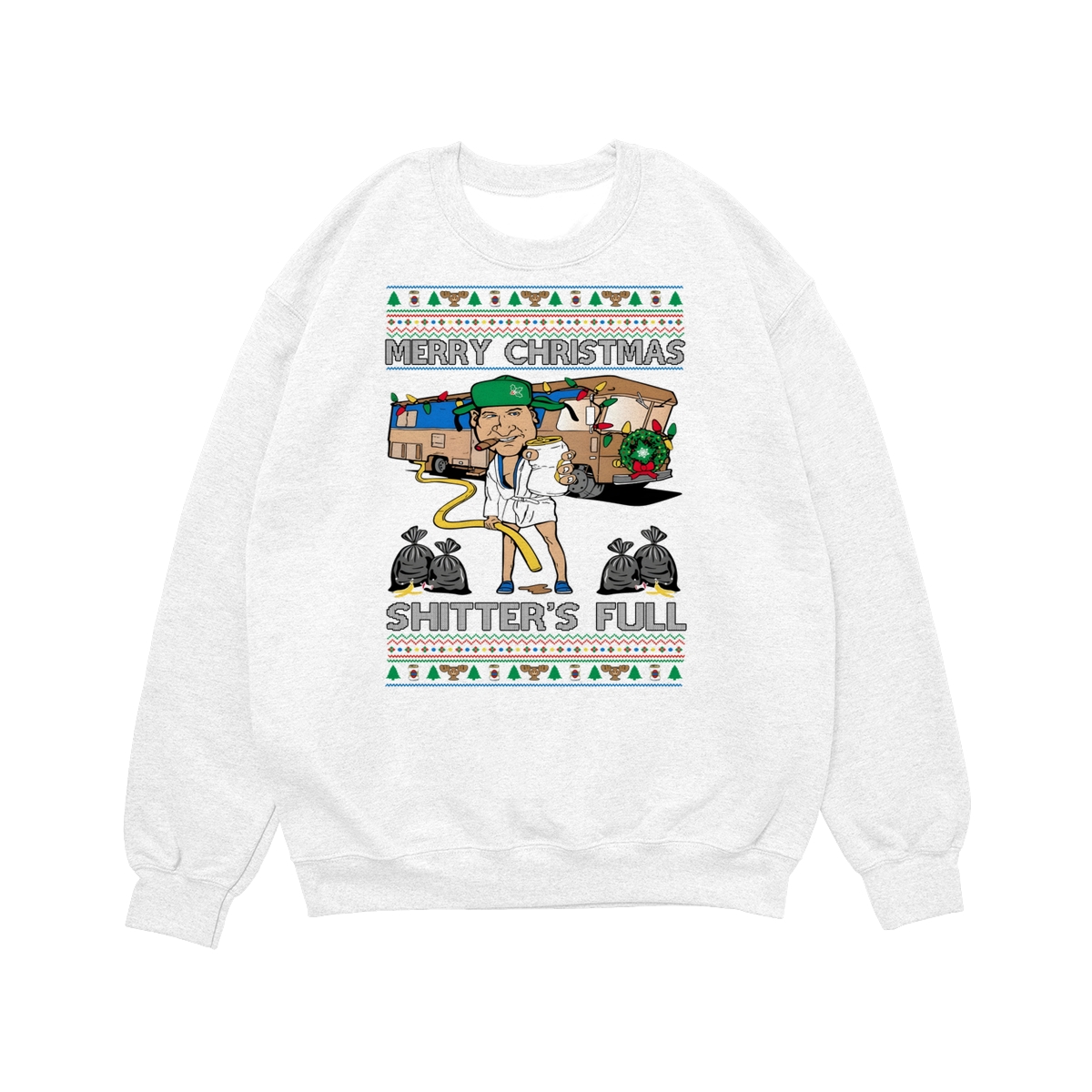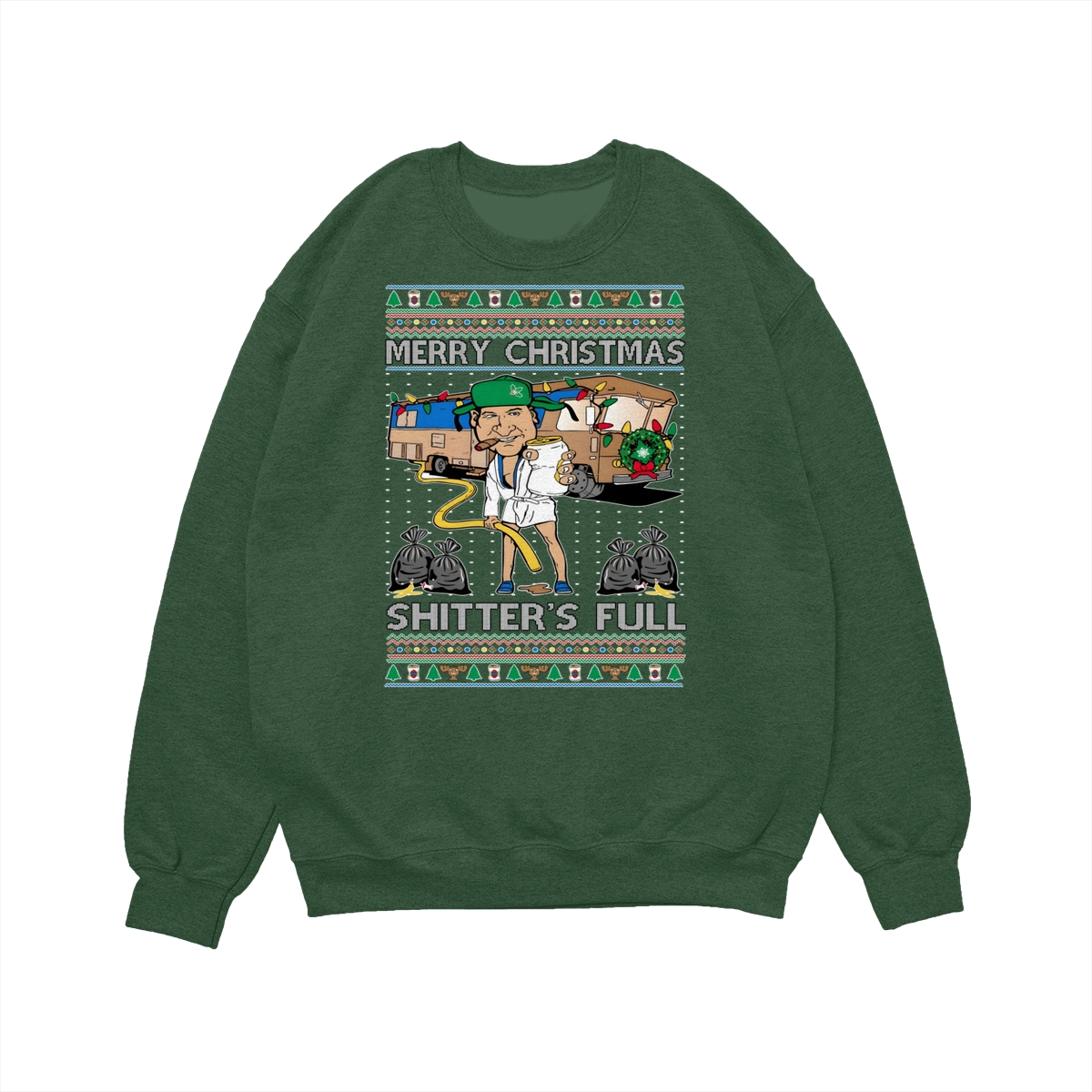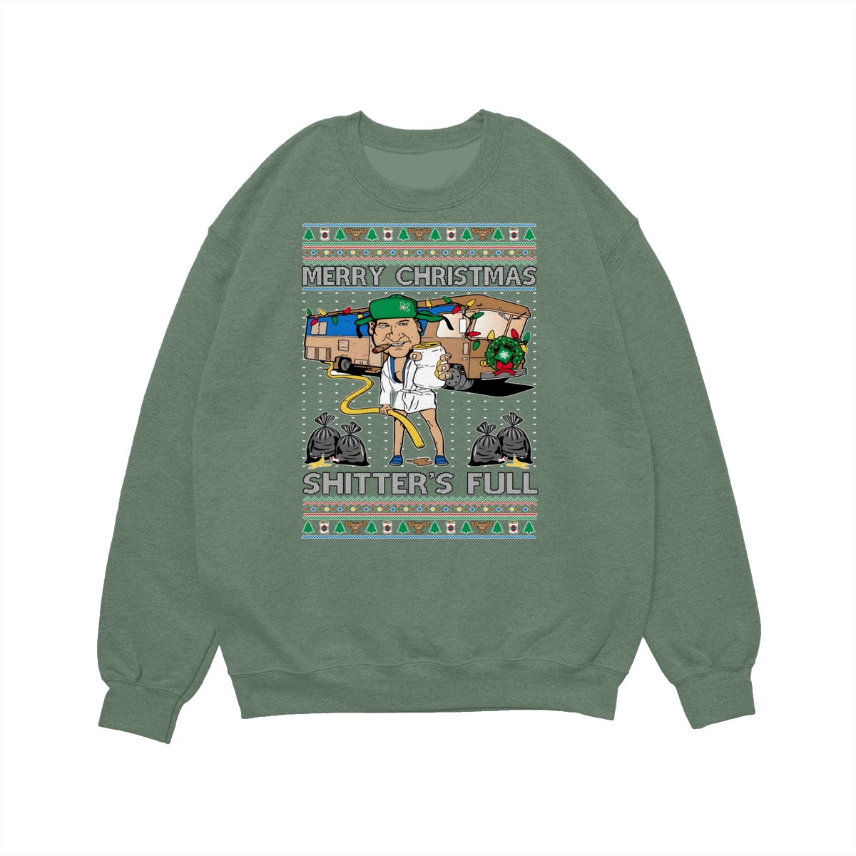 Made in USA Merry Christmas Shitter’s Full Sweatshirt, Funny Christmas Vacation Sweater, Cousin Eddie Holiday Shirt, Classic Xmas Movie Parody Crewneck, Unisex Ugly Christmas Sweater