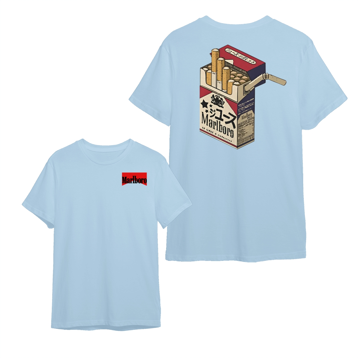Marlboro Class A Cigarette Pack Graphic Shirt for Men – Vintage Cotton Streetwear Tee, Retro Menswear Top, Trendy Gift for Smokers and Collectors Classic Collar