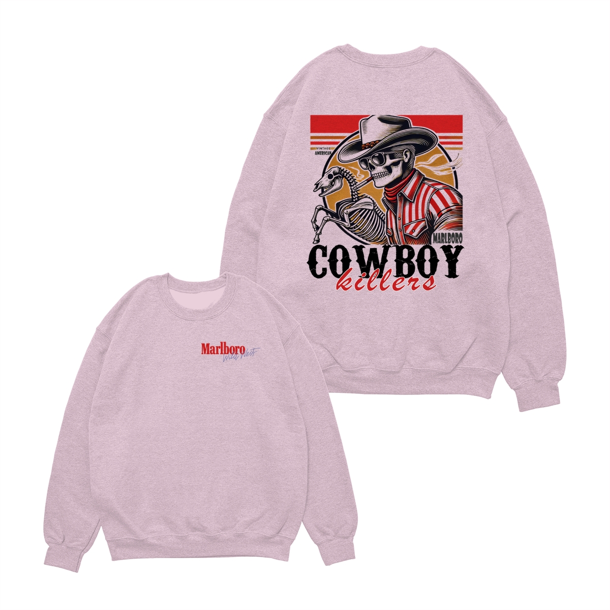 MarlBoro Cowboy Vintage Style American Double T-Shirt Casual Cotton Summer T Shirt Graphic Tee