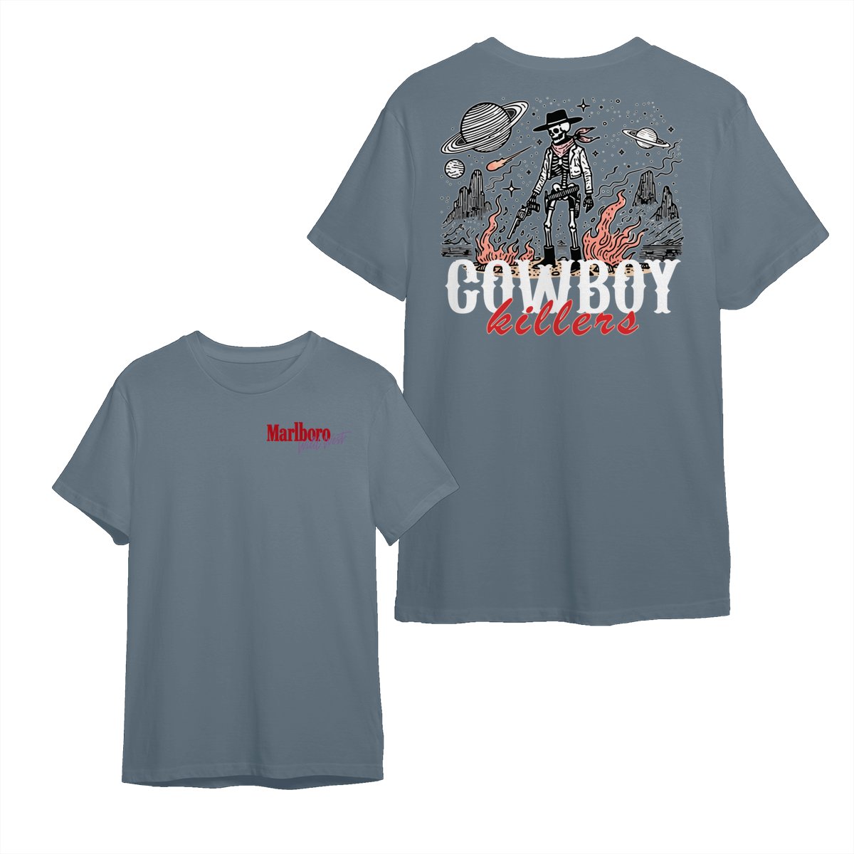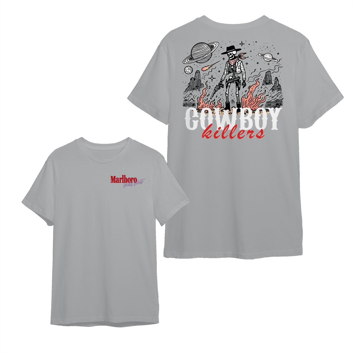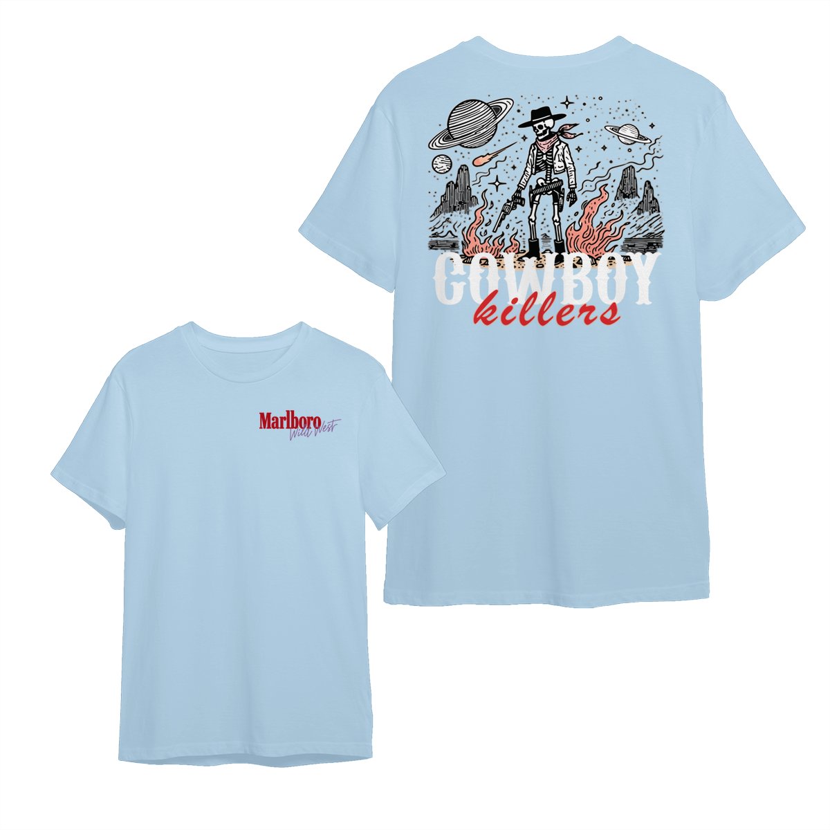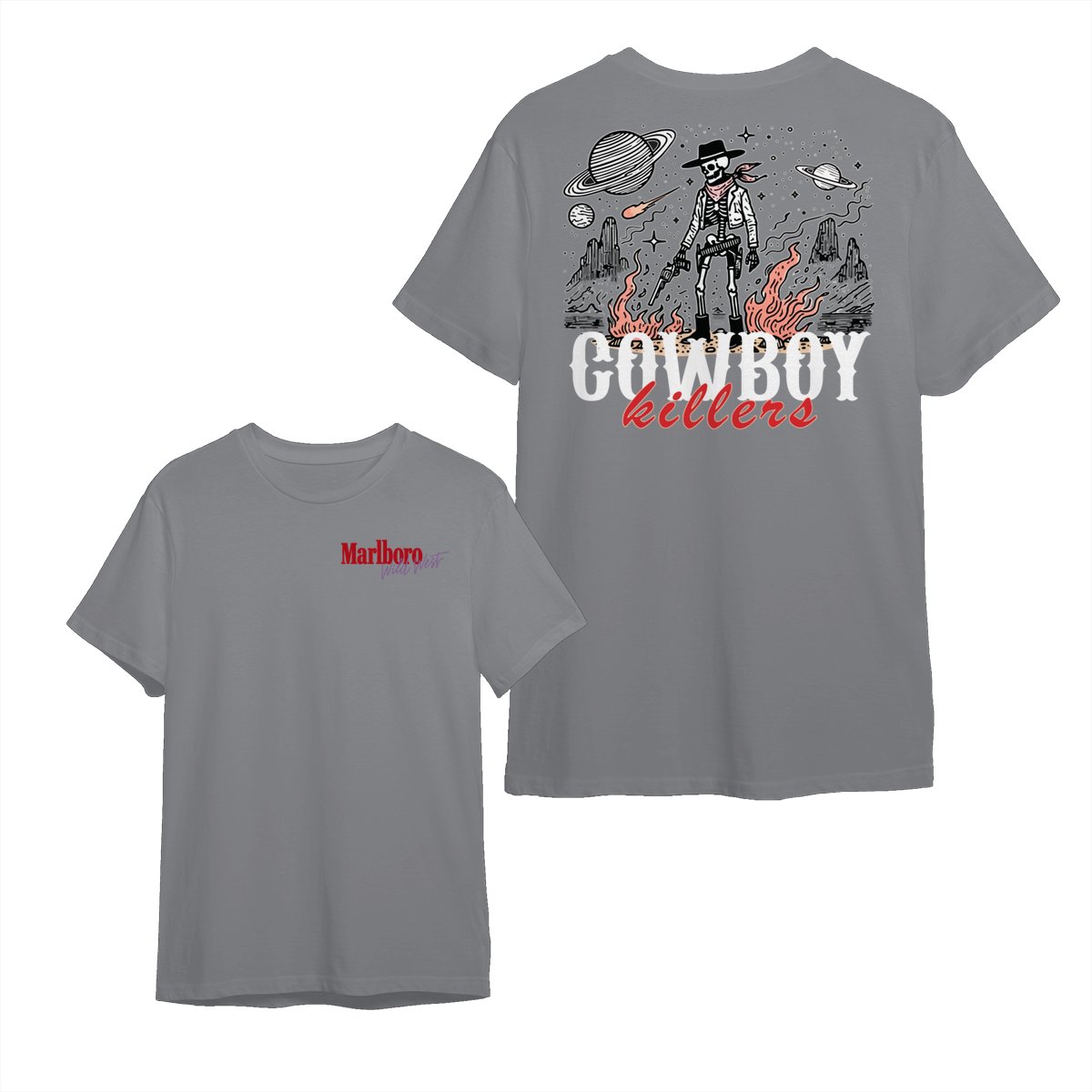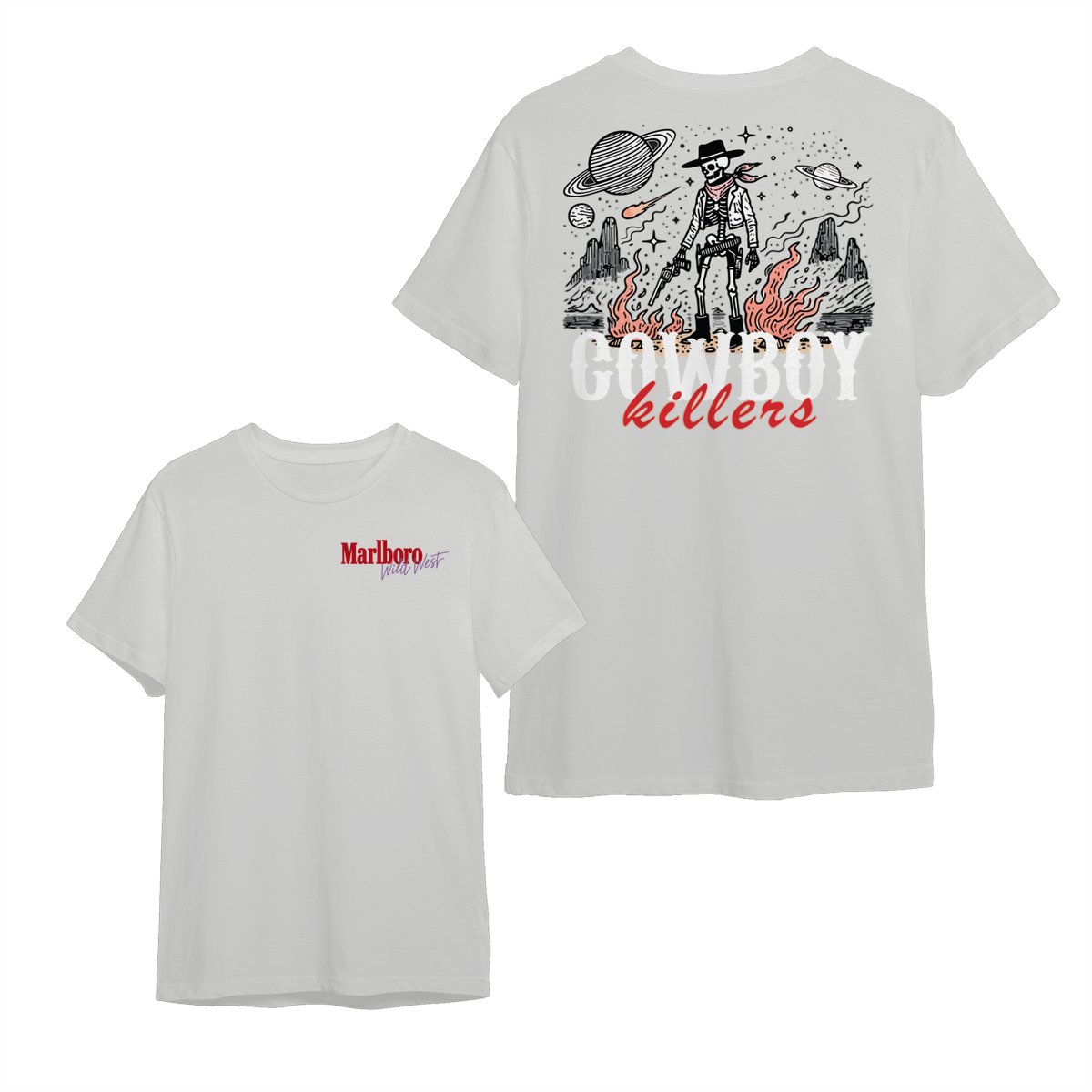 Marlboro Wild West Cowboy T-Shirt, ‘Cowboy Killers’ Skeleton Graphic, Vintage Western Streetwear Unisex Cotton Tee for Men & Women
