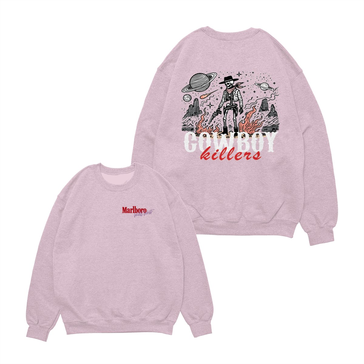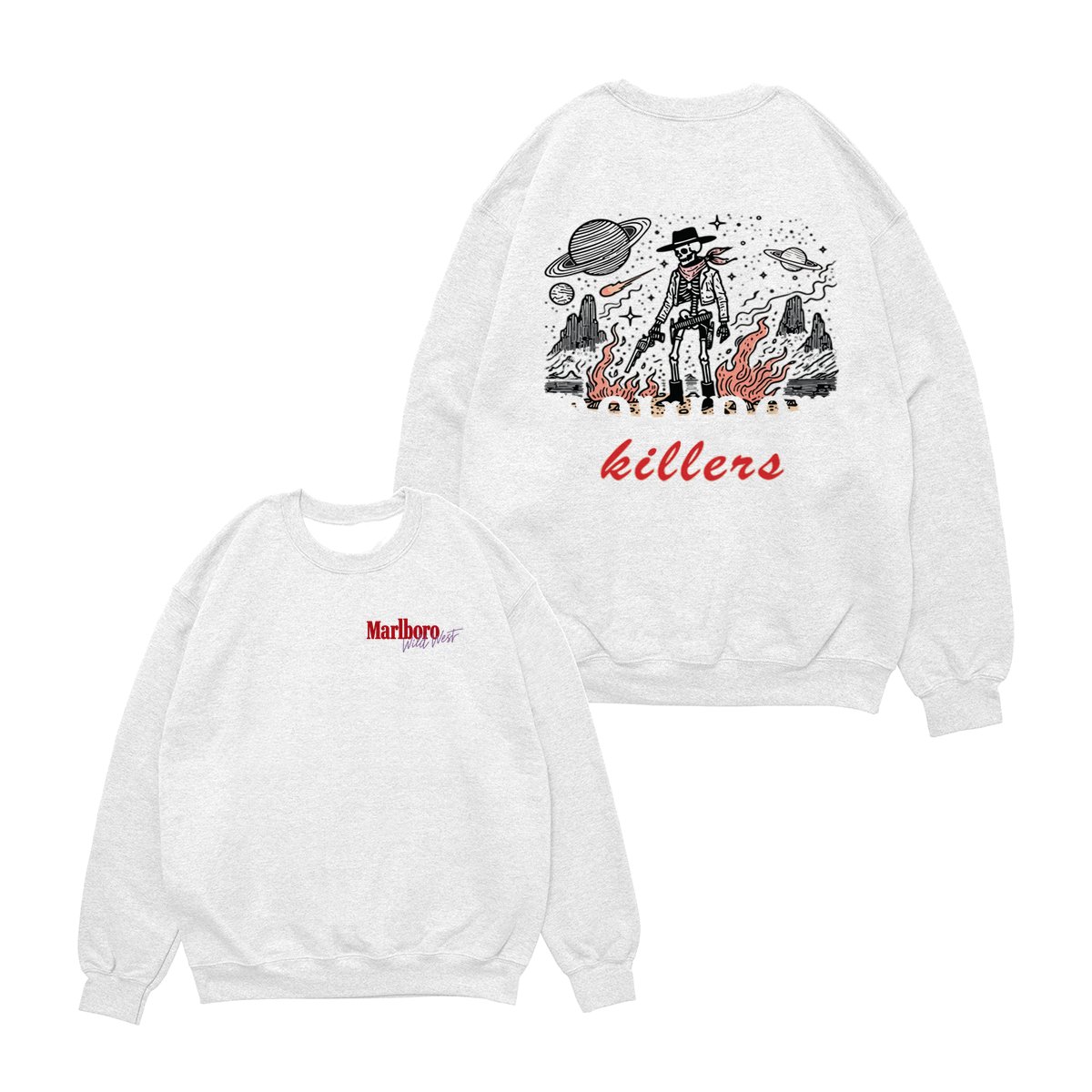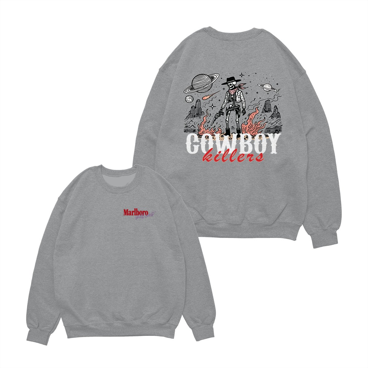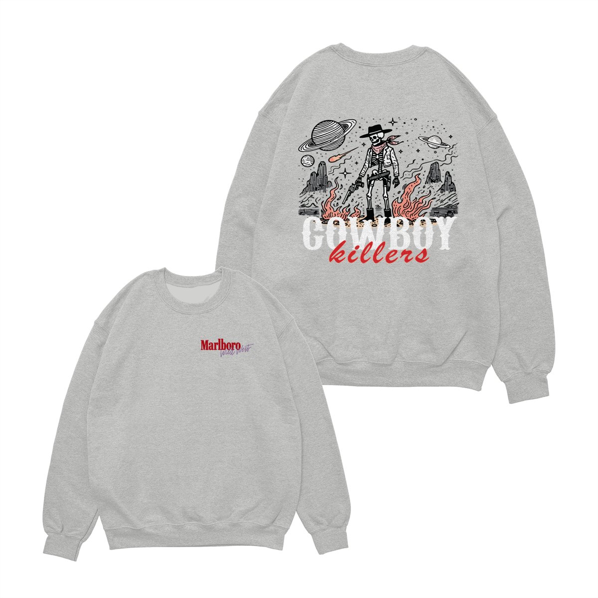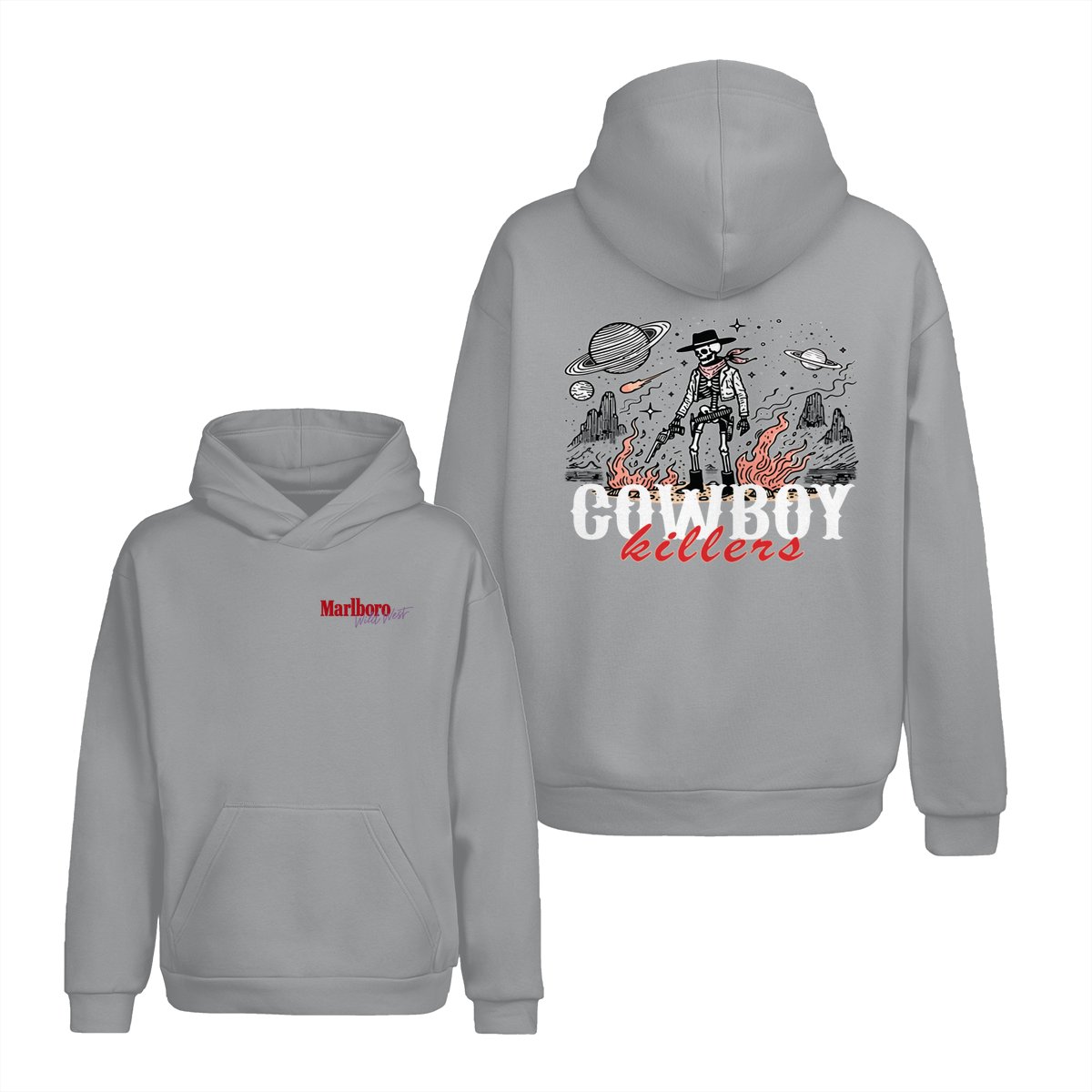Marlboro Wild West Cowboy T-Shirt, ‘Cowboy Killers’ Skeleton Graphic, Vintage Western Streetwear Unisex Cotton Tee for Men & Women