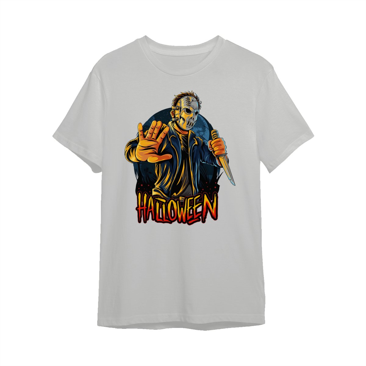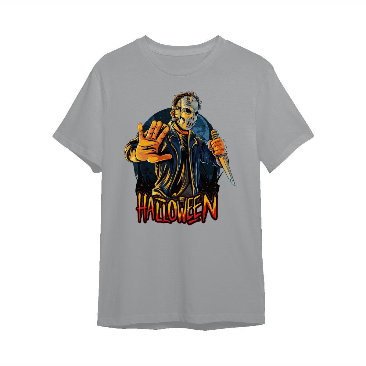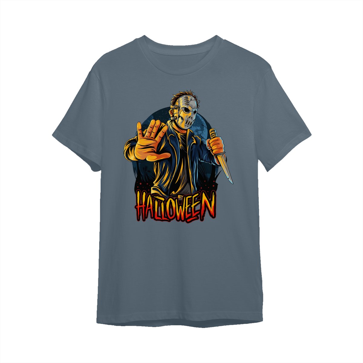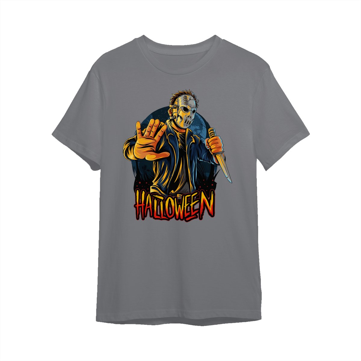 Masked Killer Halloween T-Shirt, Funny Scary Costume Party Tee with Knife Graphic, Horror Slasher Unisex October Shirt