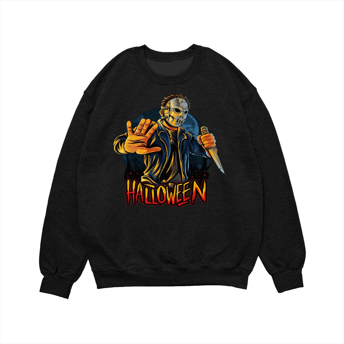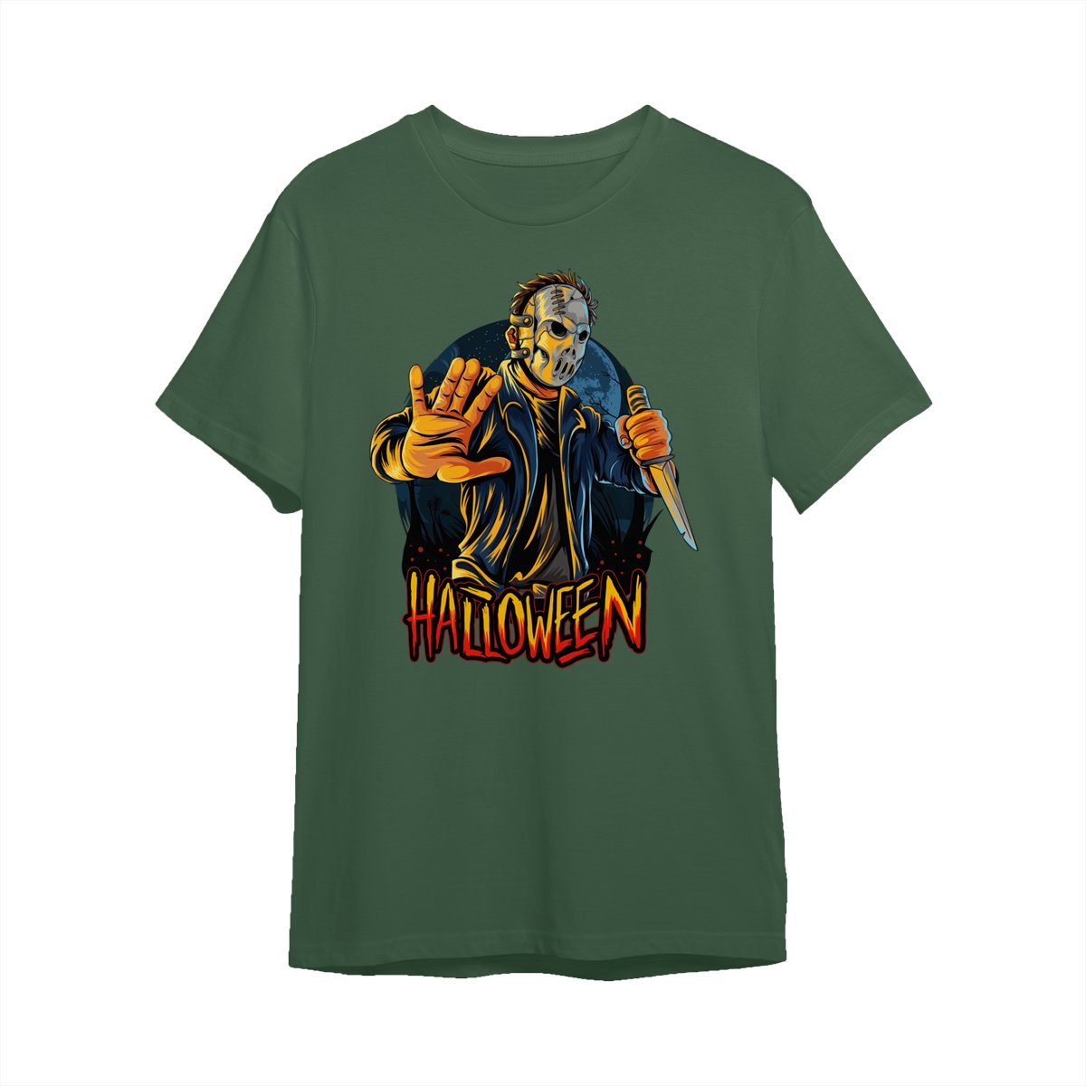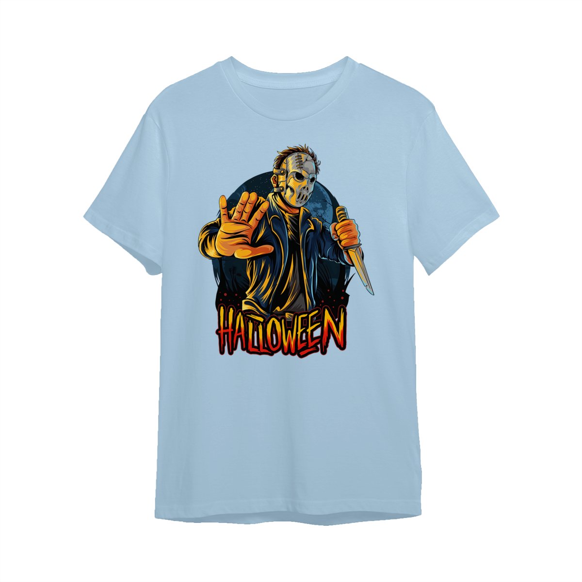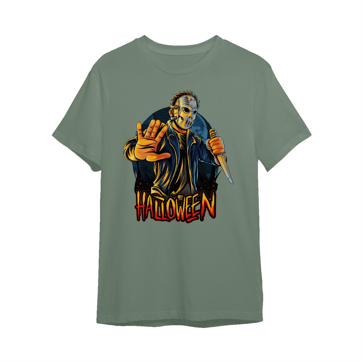 Masked Killer Halloween T-Shirt, Funny Scary Costume Party Tee with Knife Graphic, Horror Slasher Unisex October Shirt