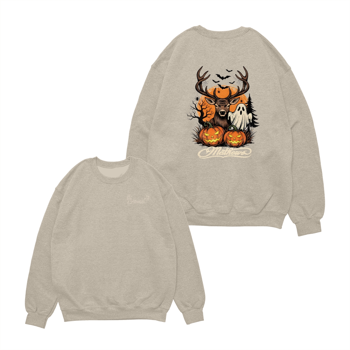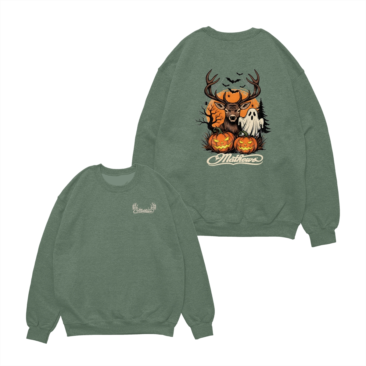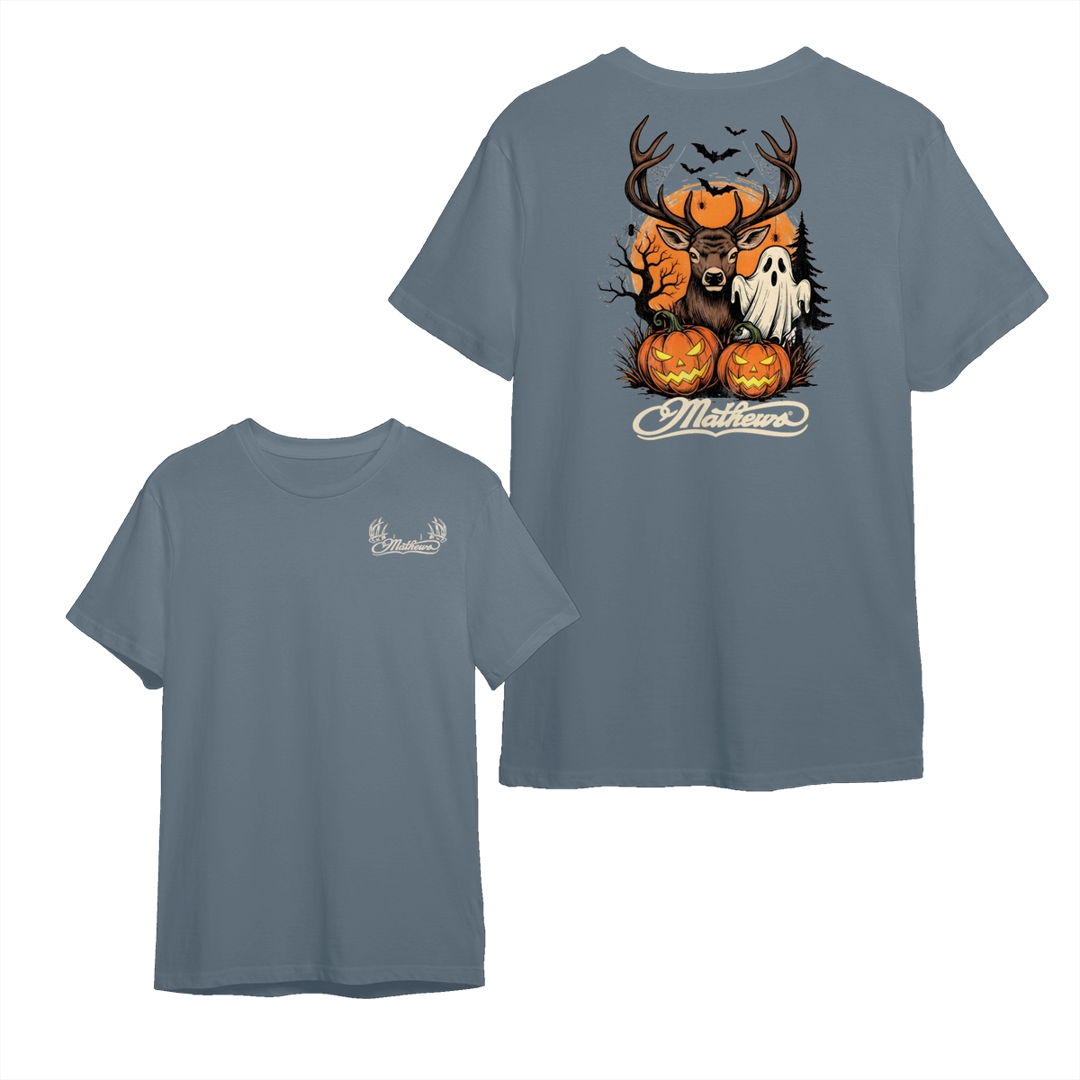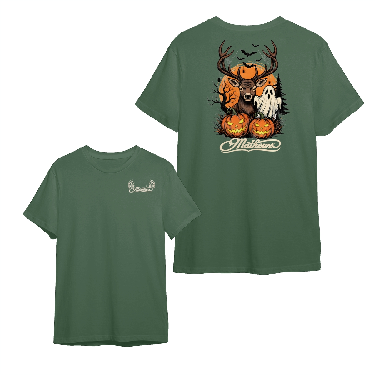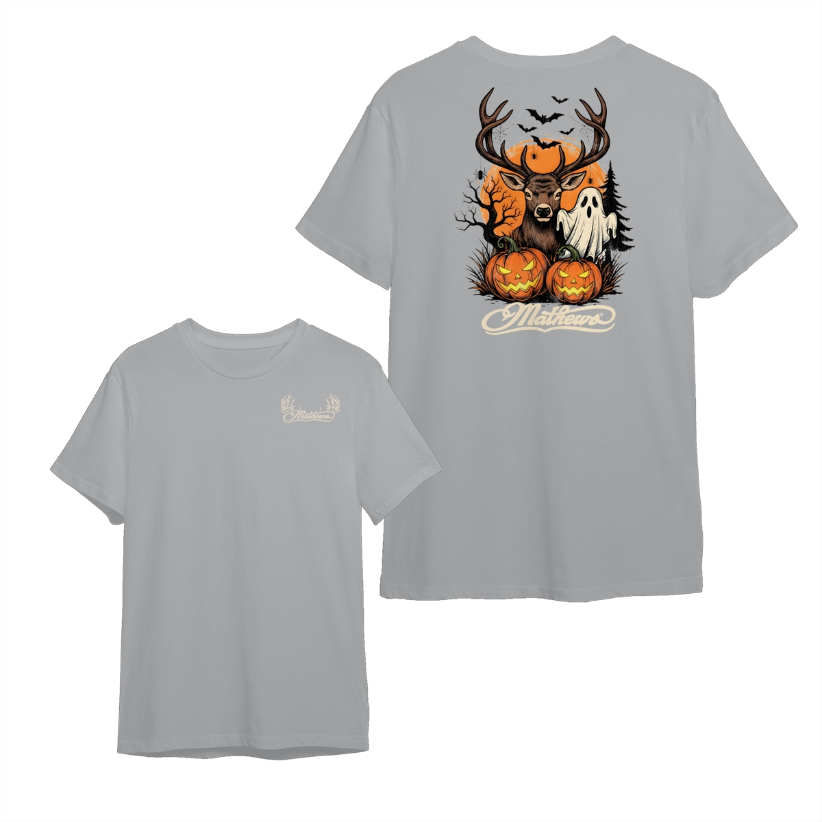 Mathews Archery Hoodie TShirt – Halloween Deer with Pumpkins and Ghost Graphic Sweatshirt, Vintage Bowhunting Pullover, Outdoor Hunting Hoodie TShirt, Unisex Archery Apparel