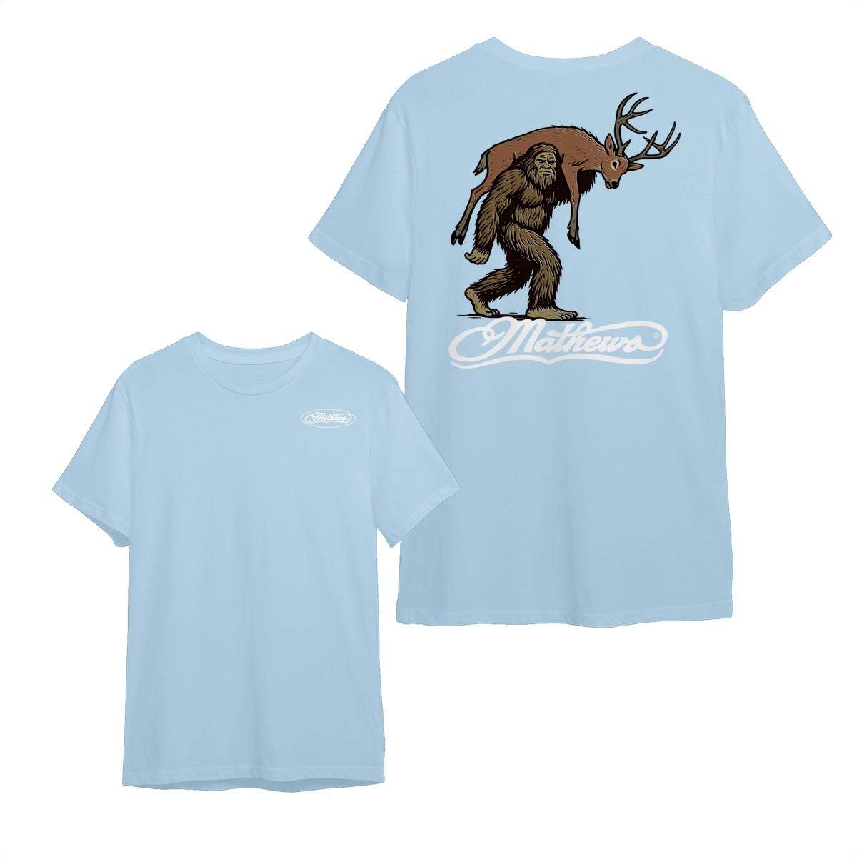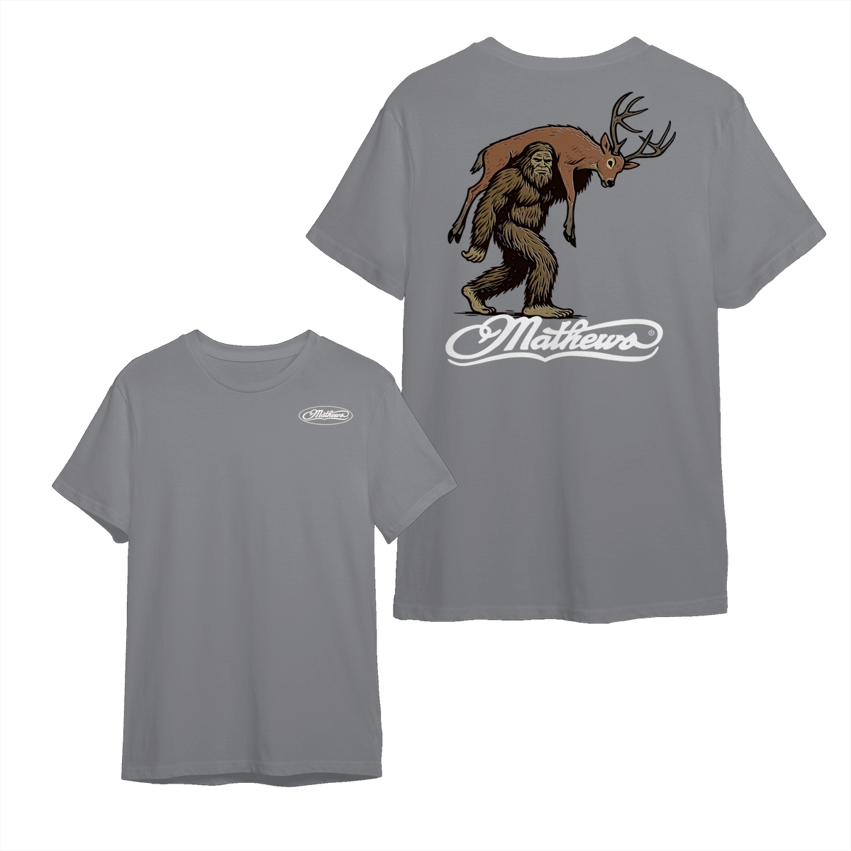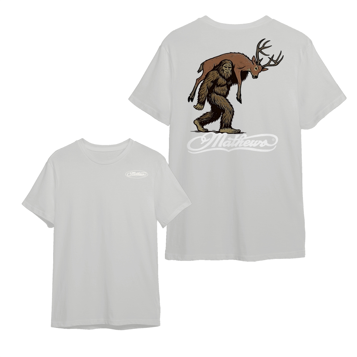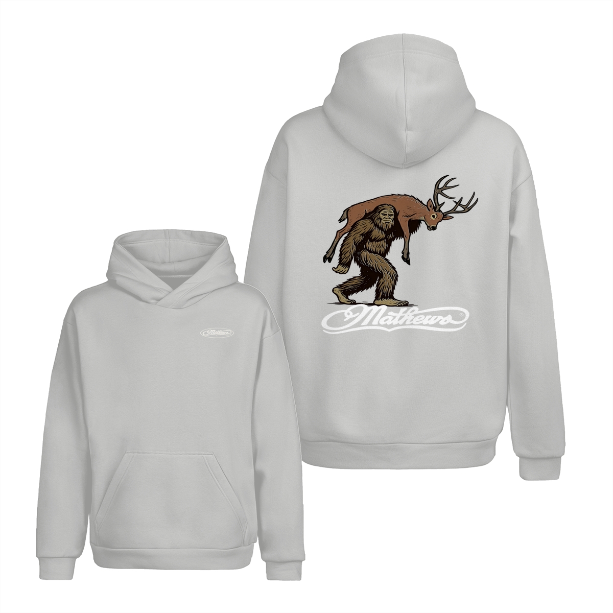 Mathews Bigfoot Deer Carry Hoodie Tshirt – Mathews Sasquatch Hunting Graphic Shirt, Funny Bigfoot 2side Bowhunting Style, Unisex Hunter Outfit