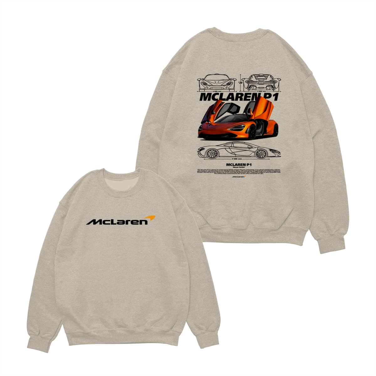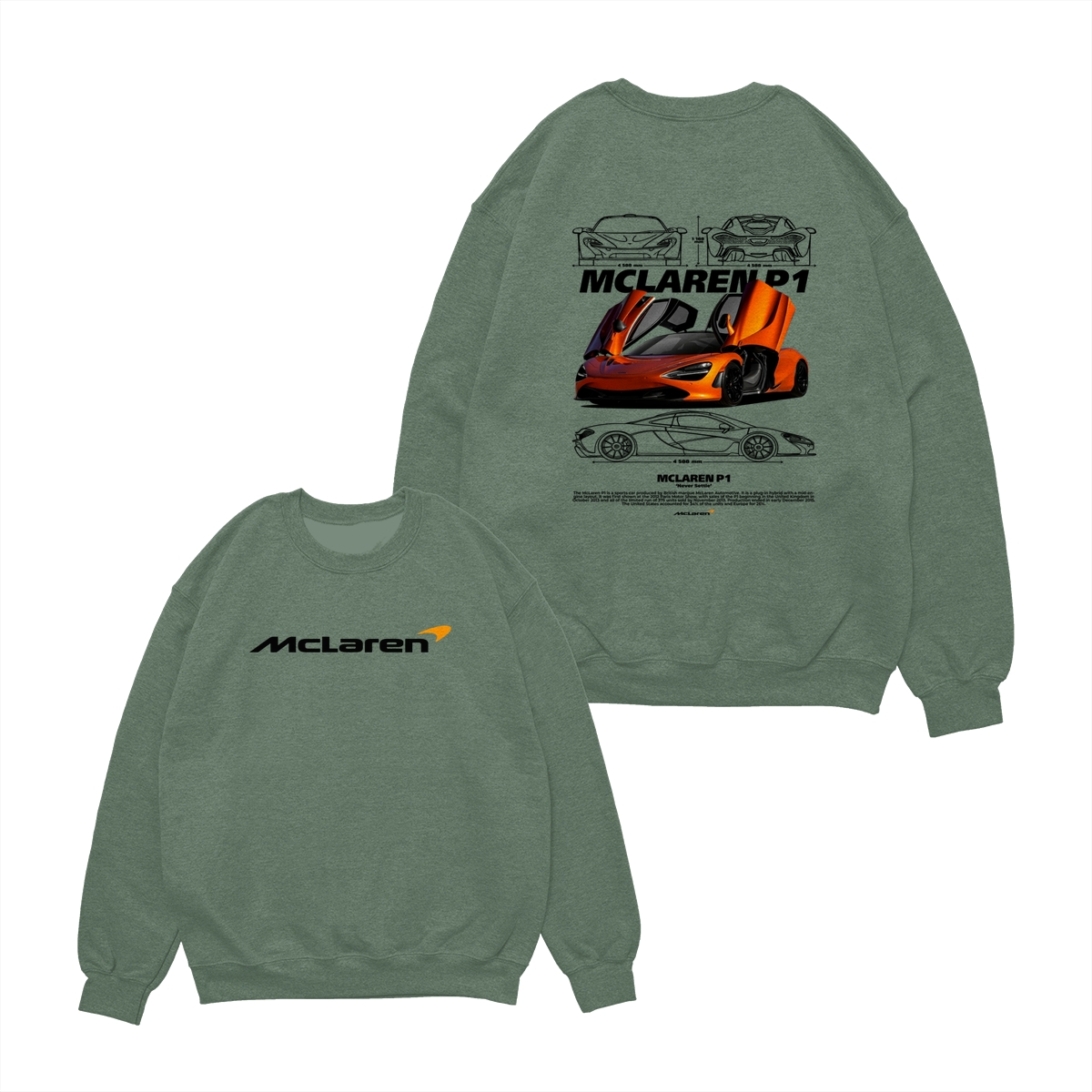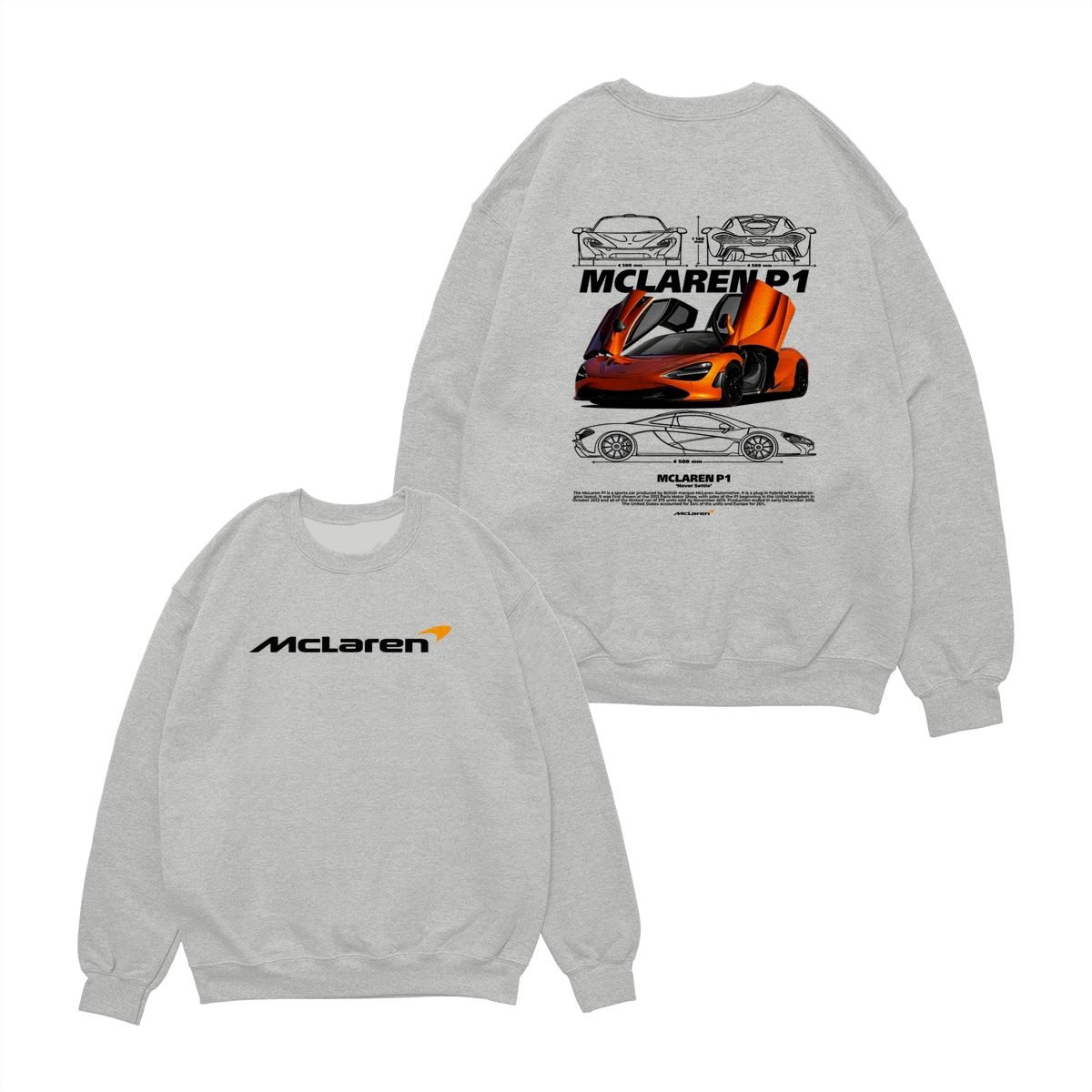 McLaren P1 Supercar TShirt/Sweatshirt/Hoodie – Y2K Streetwear Graphic Sweatshirt – Hypercar Racing Pullover for Car Enthusiasts