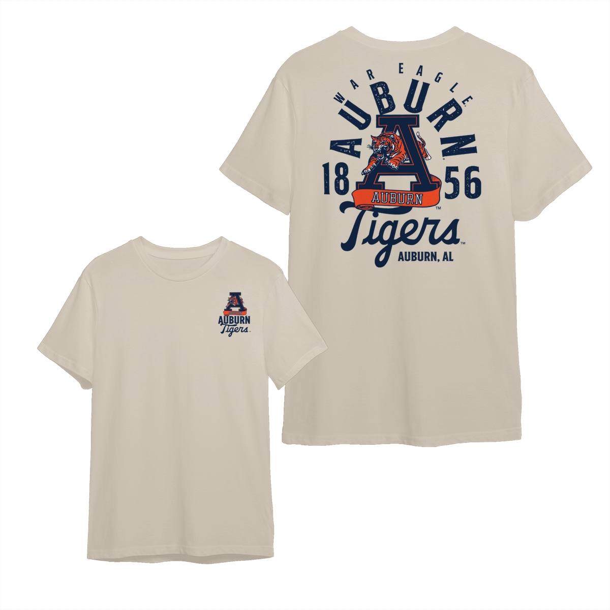 Men’s Auburn Tigers Mascot Overlay NCAA T-Shirt, Vintage Graphic Tee, Basketball T-Shirt Top