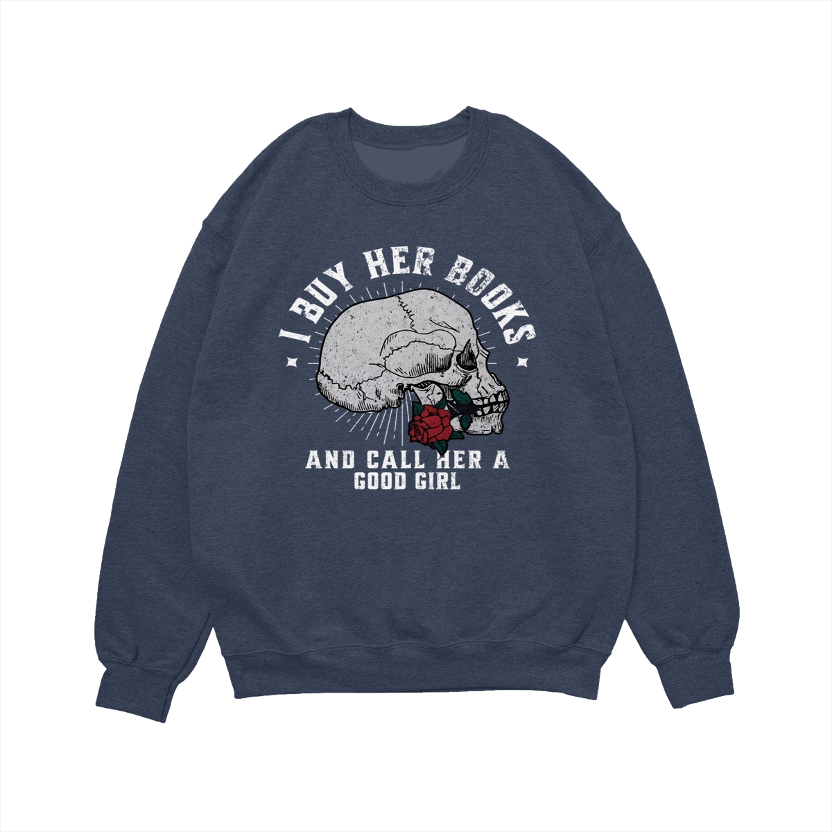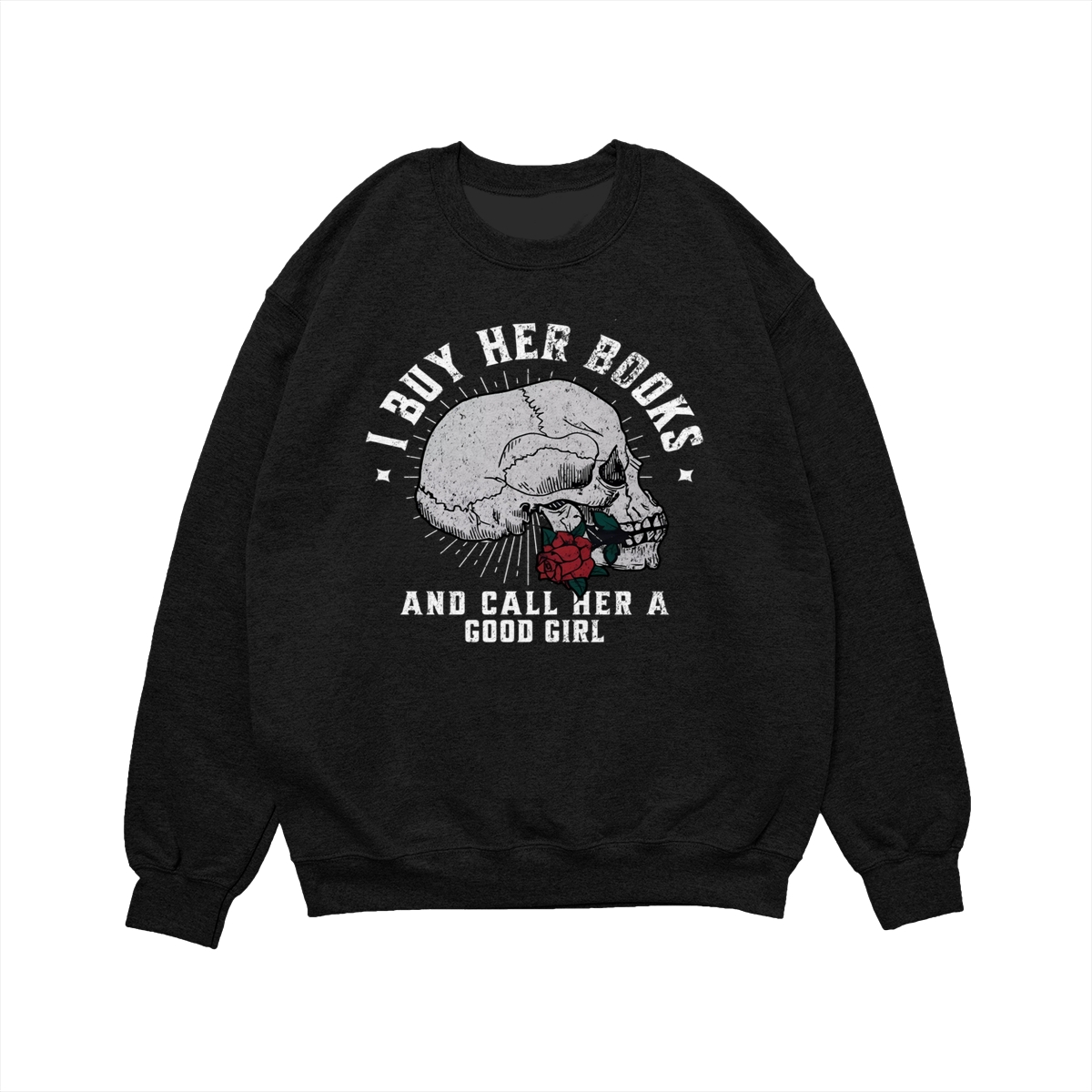 Men’s Dark Romance T-Shirt, I Buy Her Books and Call Her a Good Girl Book Lover Gift for Husband Villain Lover Shirt Smut Reader Bookish Tee Y2k, Back to School, Casual Top Unise