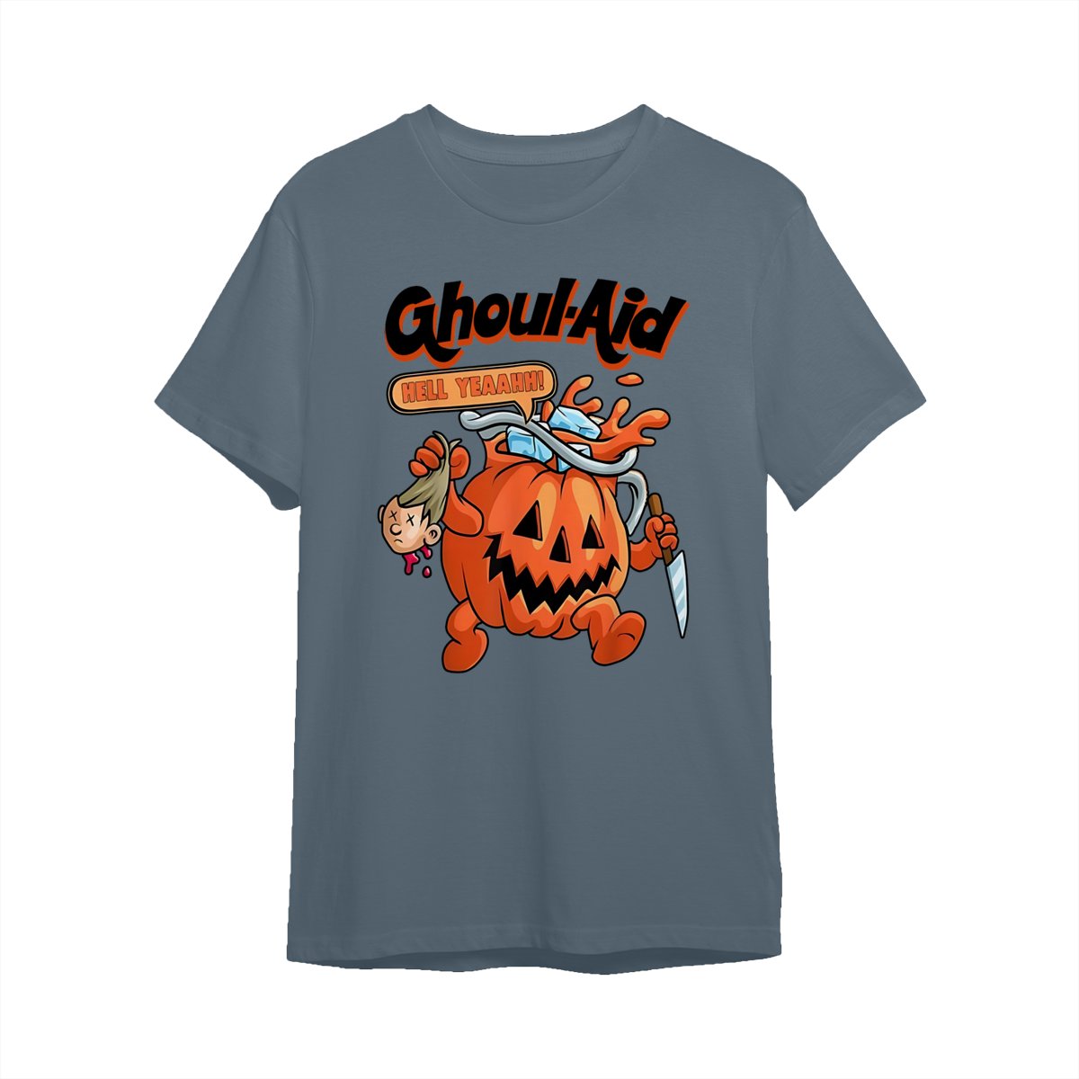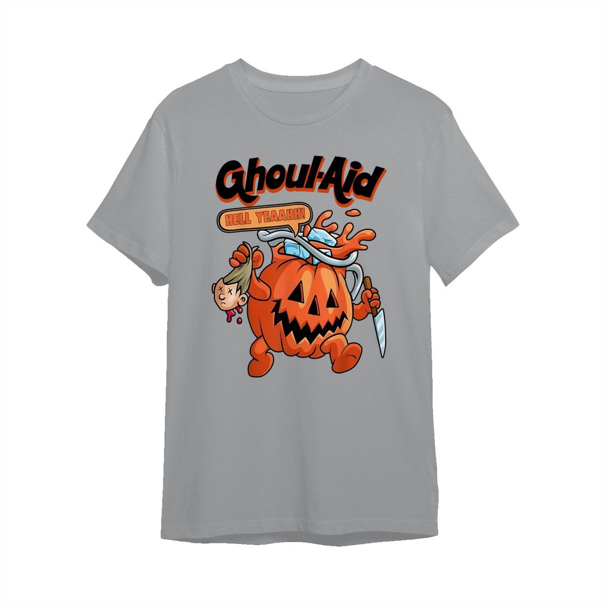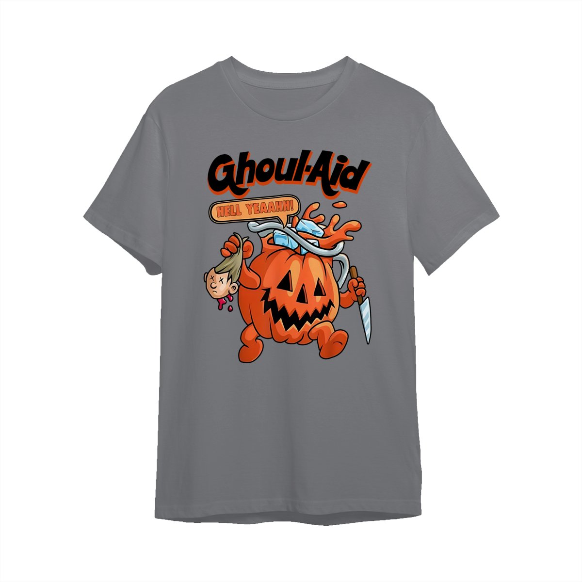 Men’s Halloween Ghoul Aid Pumpkin Graphic T-Shirt – 100% Cotton, Short Sleeve, Crew Neck for Casual Wear Menswear Top