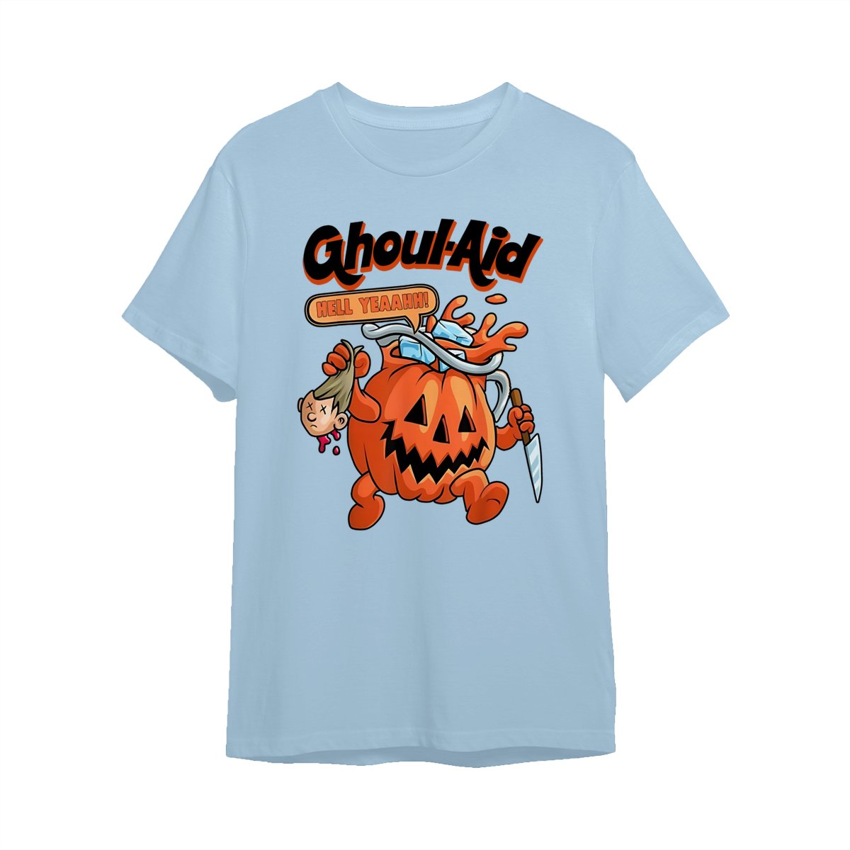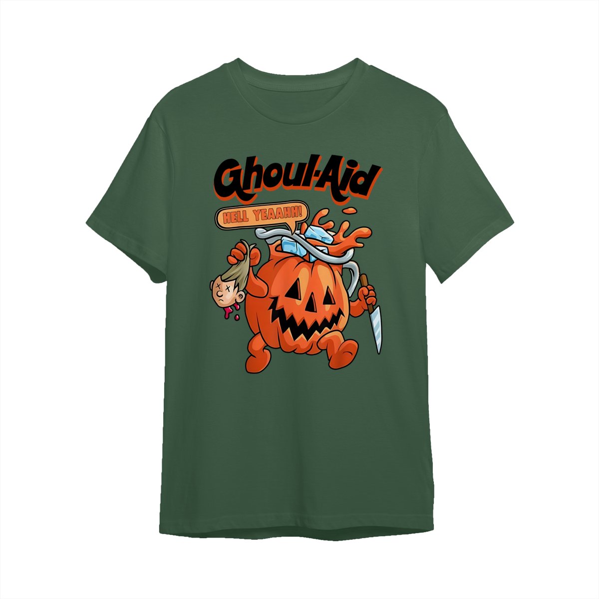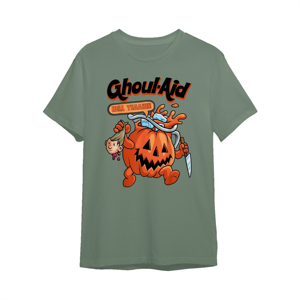 Men’s Halloween Ghoul Aid Pumpkin Graphic T-Shirt – 100% Cotton, Short Sleeve, Crew Neck for Casual Wear Menswear Top