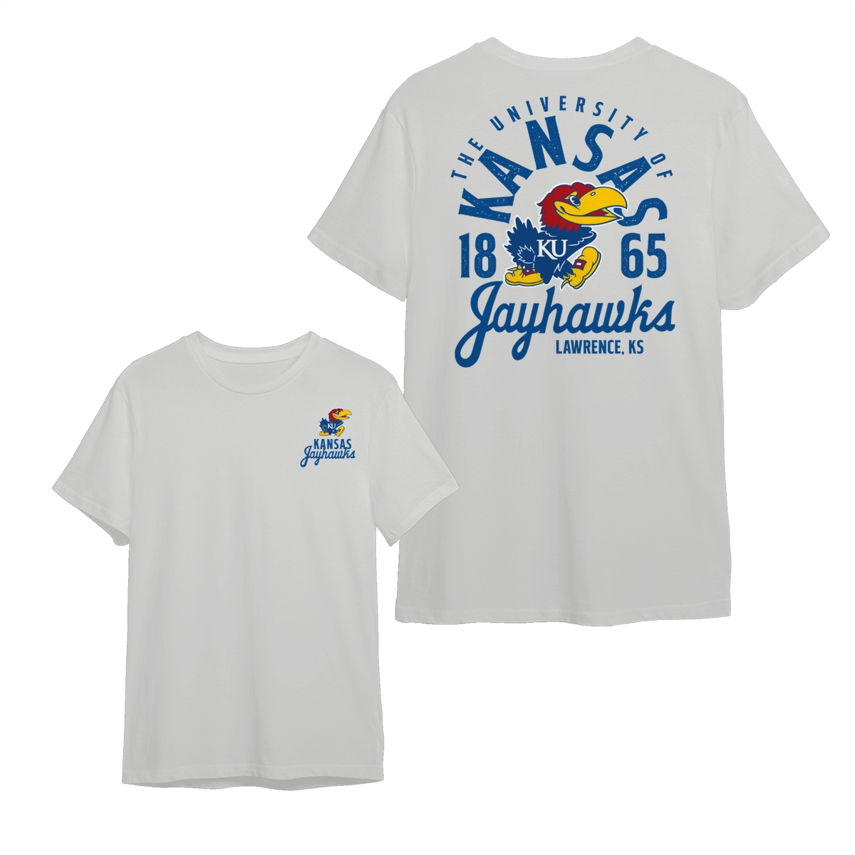 Men’s Kansas Jayhawks Mascot Overlay NCAA T-Shirt, Vintage Graphic Tee, Basketball T-Shirt