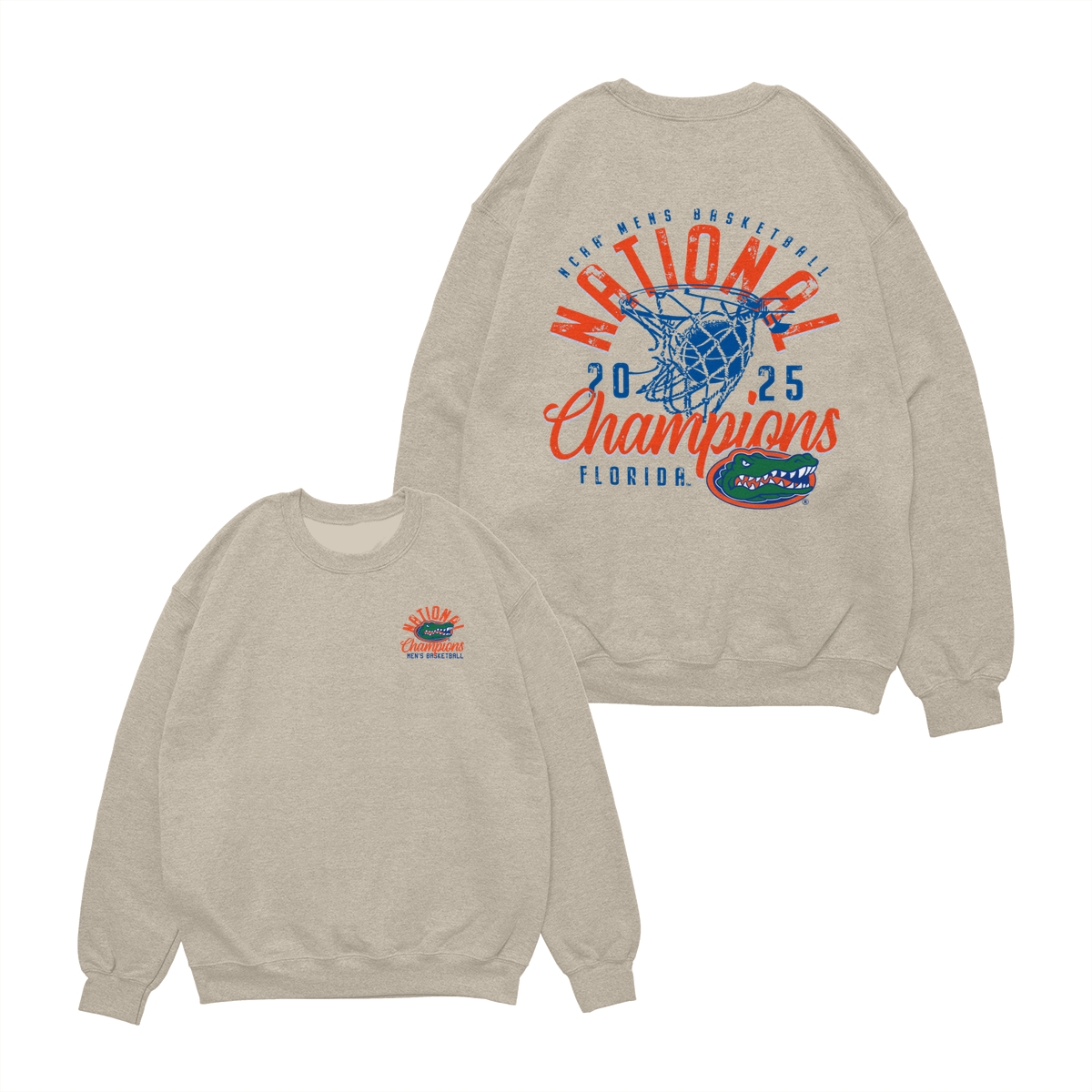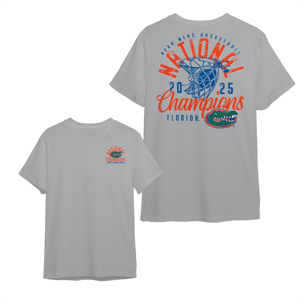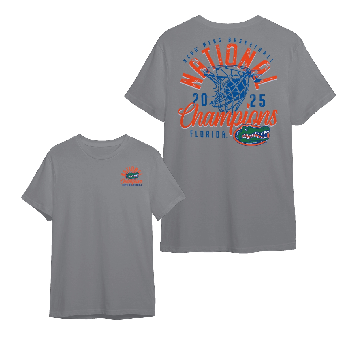 Men’s Natural Florida Gators 2025 NCAA Men’s Basketball National Champions Distressed Net T-Shirt – Sweatshirt – Hoodie, Graphic Round Neck Tee