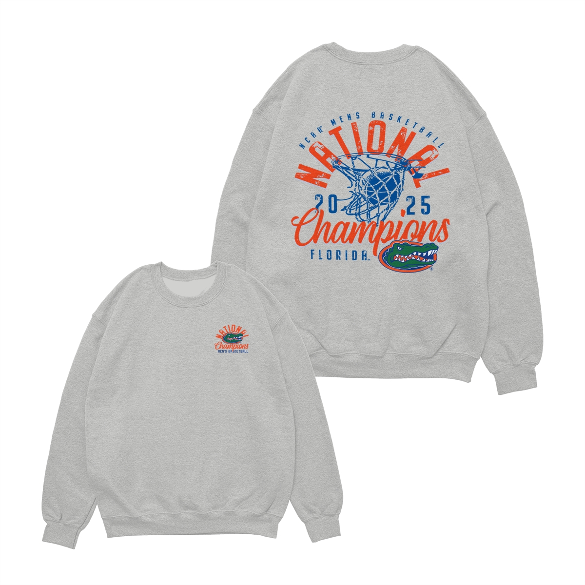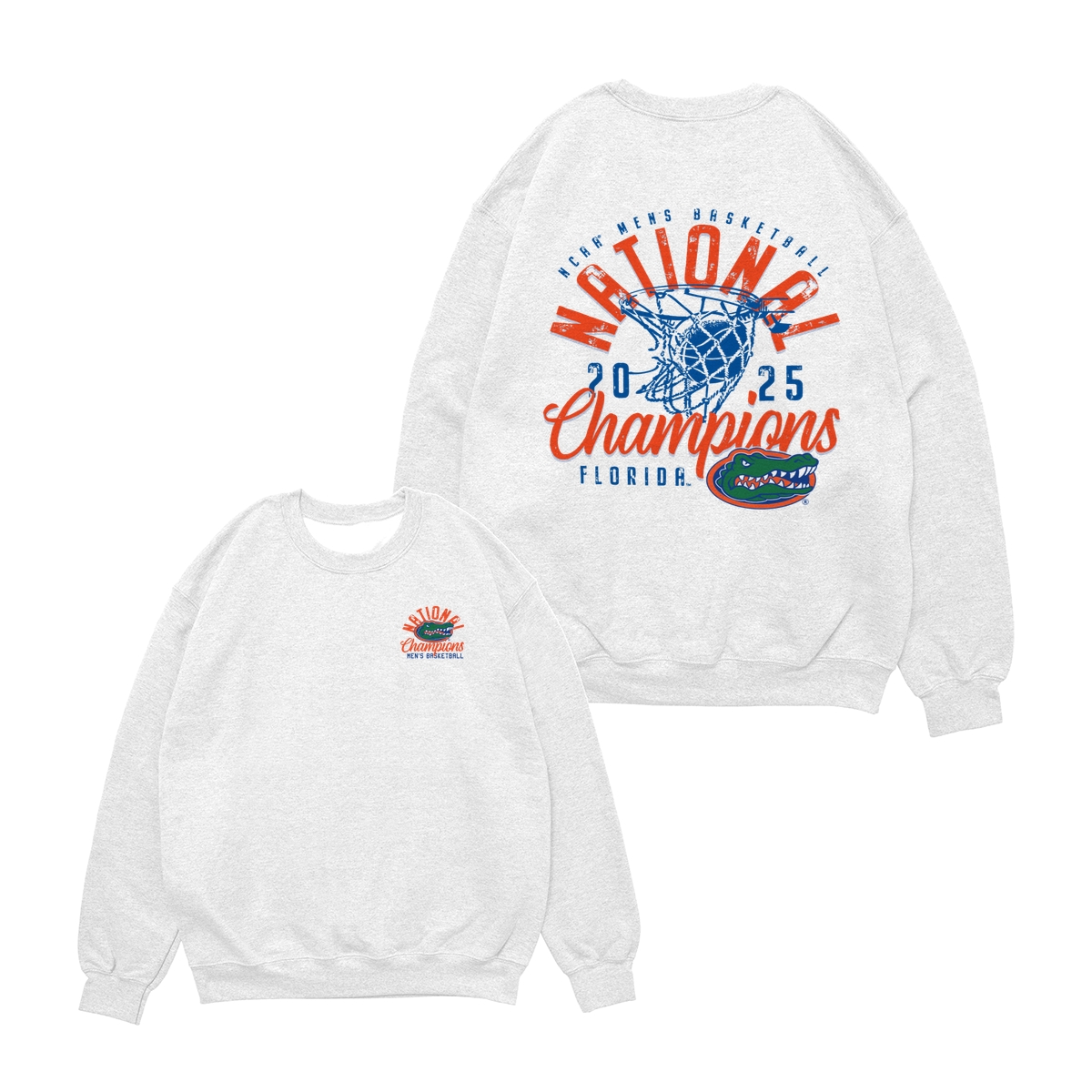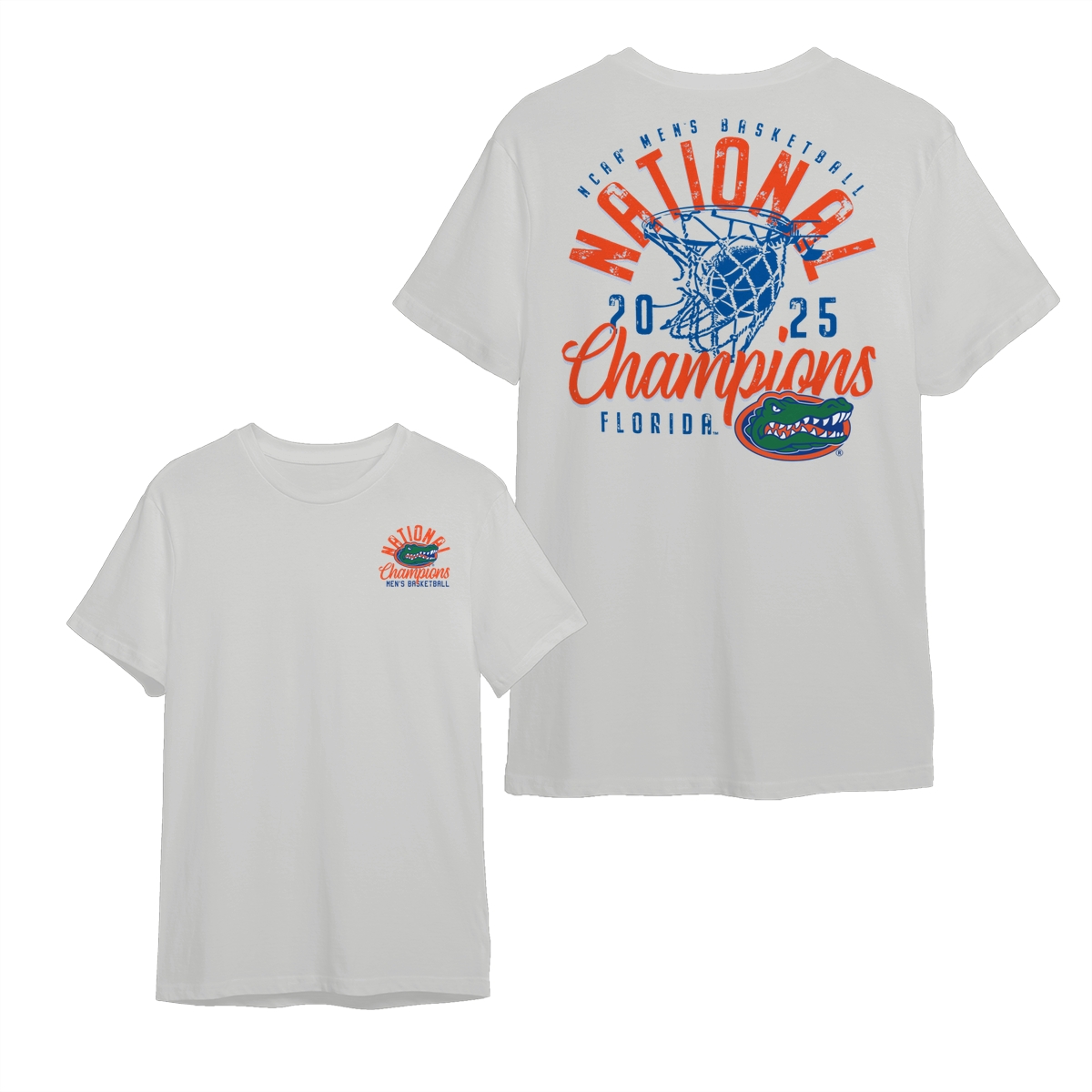 Men’s Natural Florida Gators 2025 NCAA Men’s Basketball National Champions Distressed Net T-Shirt – Sweatshirt – Hoodie, Graphic Round Neck Tee