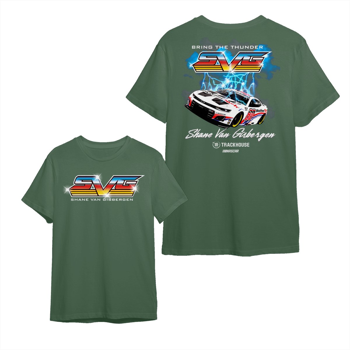 Men’s Shane van Gisbergen Trackhouse Racing T-Shirt, Black Tee with Bold Car Graphic, Soft Cotton, Perfect for NASCAR and Motorsport Fans