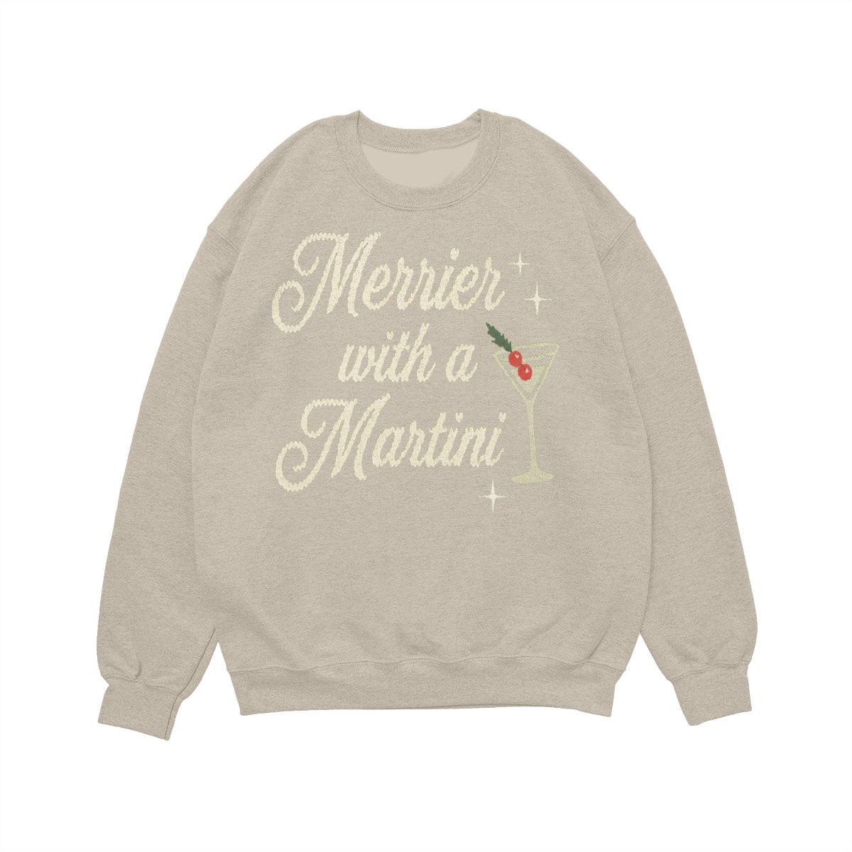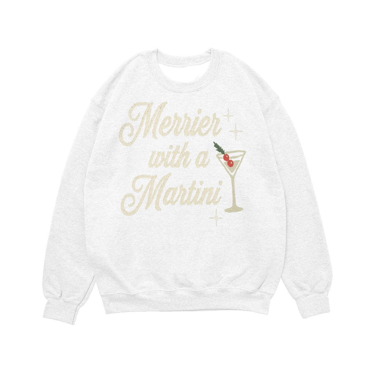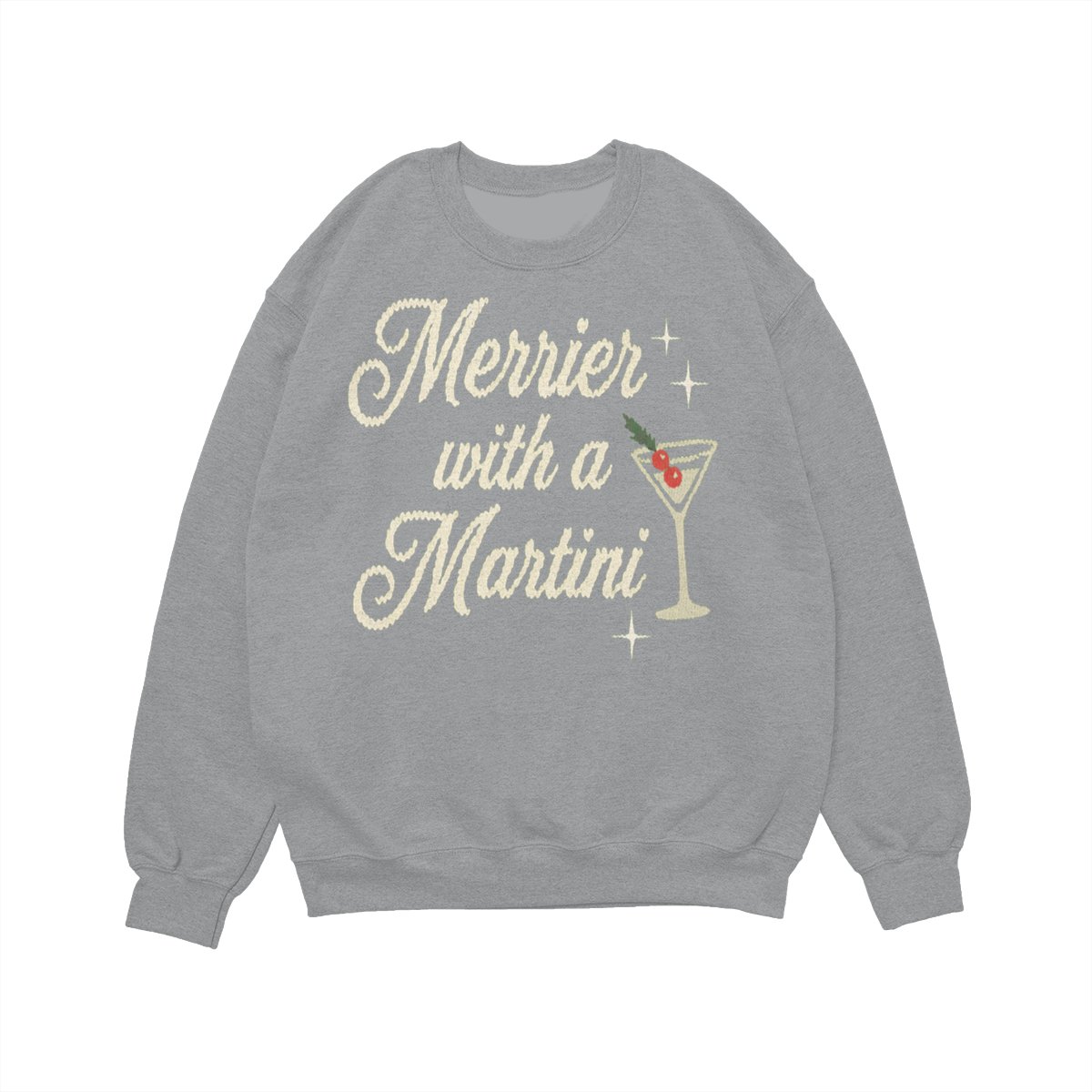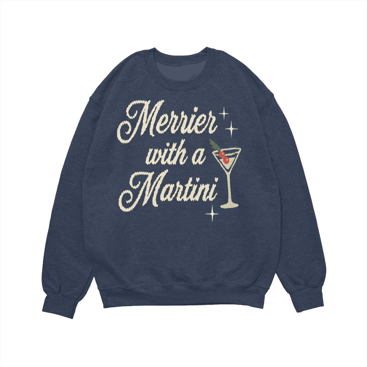 Merrier With a Martini Ugly Christmas Sweashirt for Holiday Party