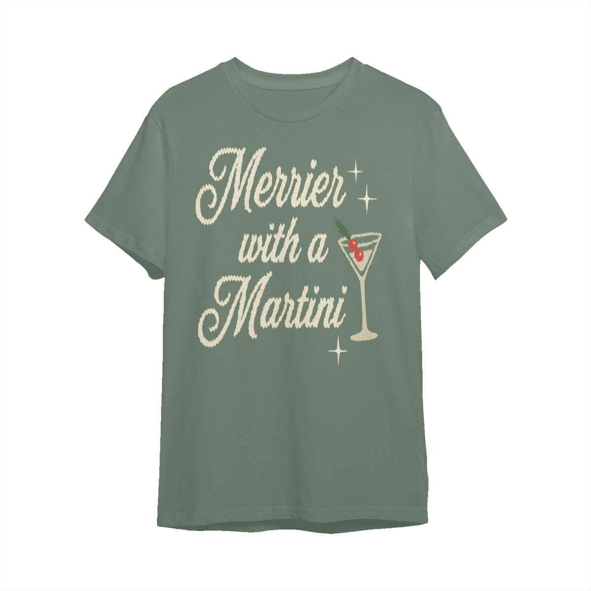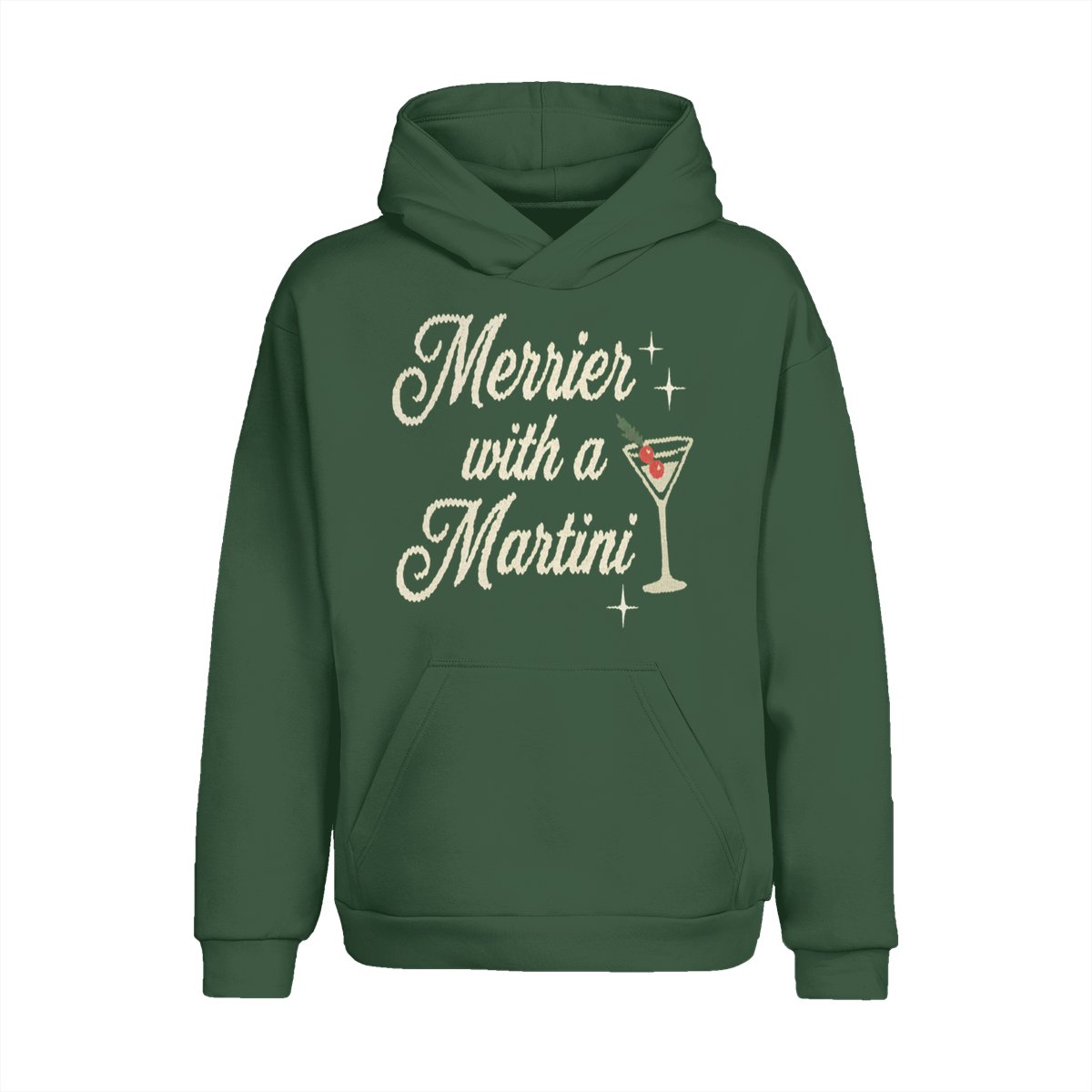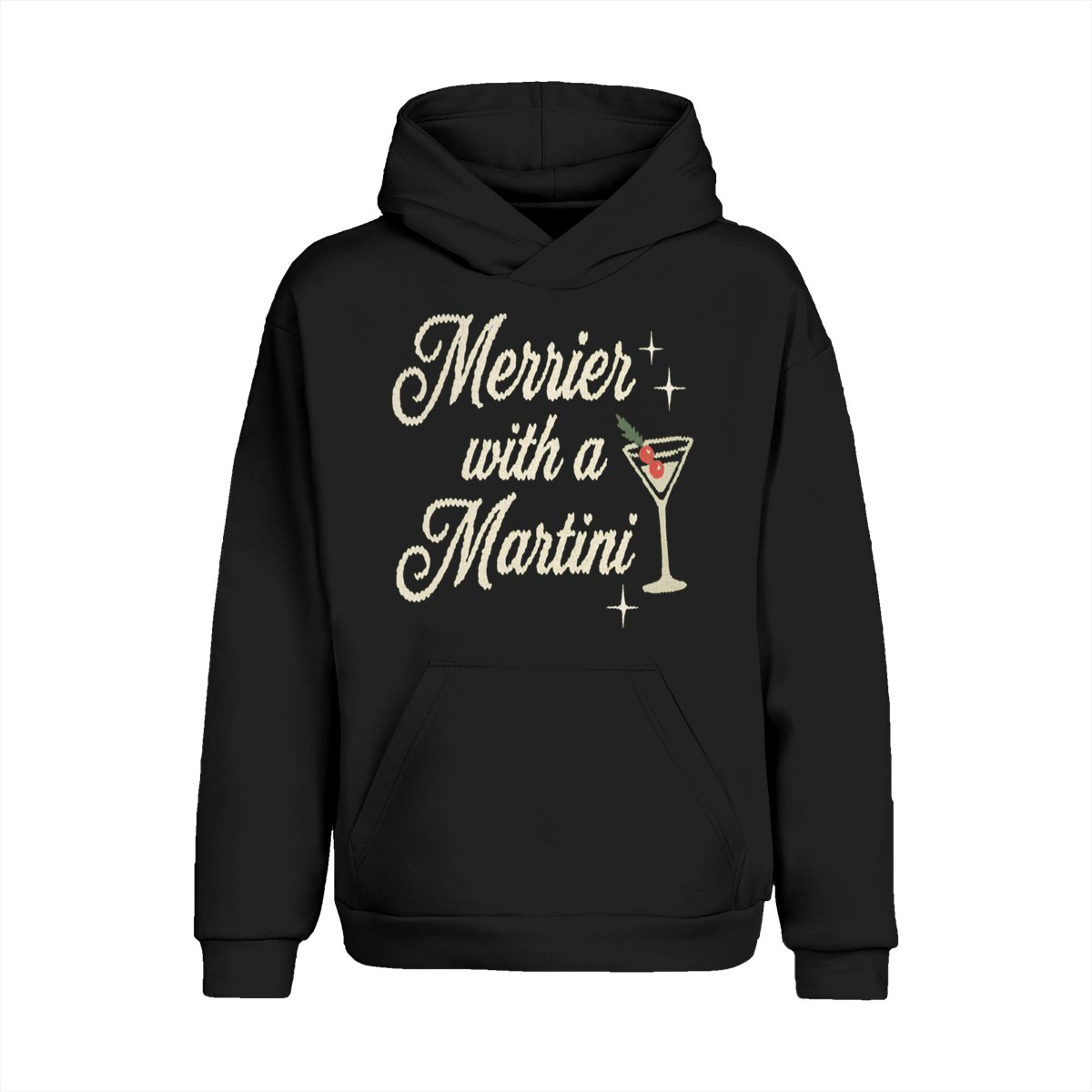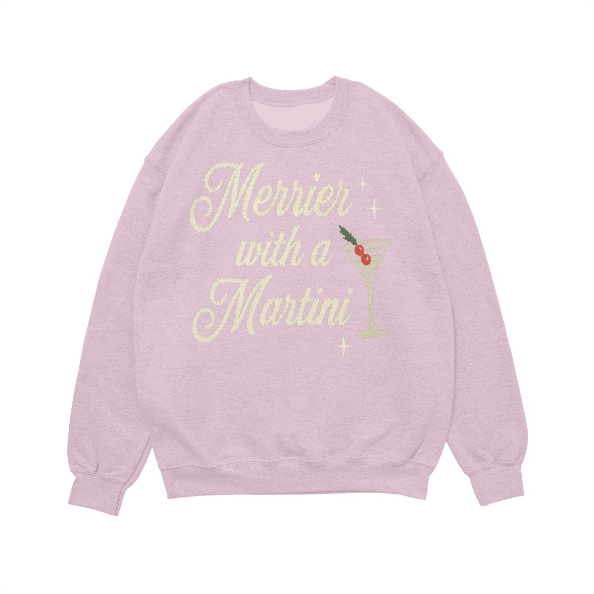 Merrier With a Martini Ugly Christmas Sweashirt for Holiday Party