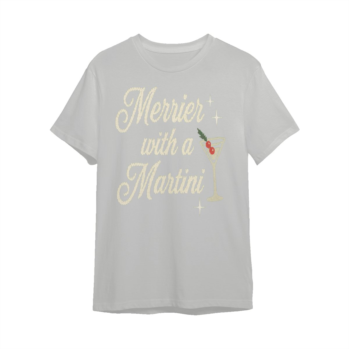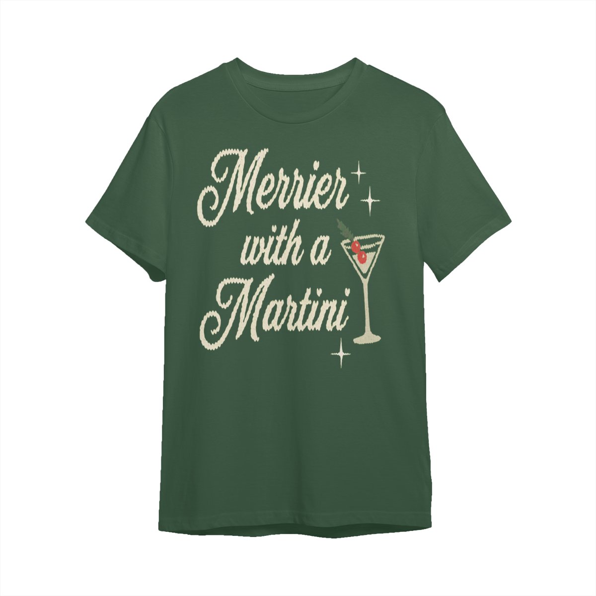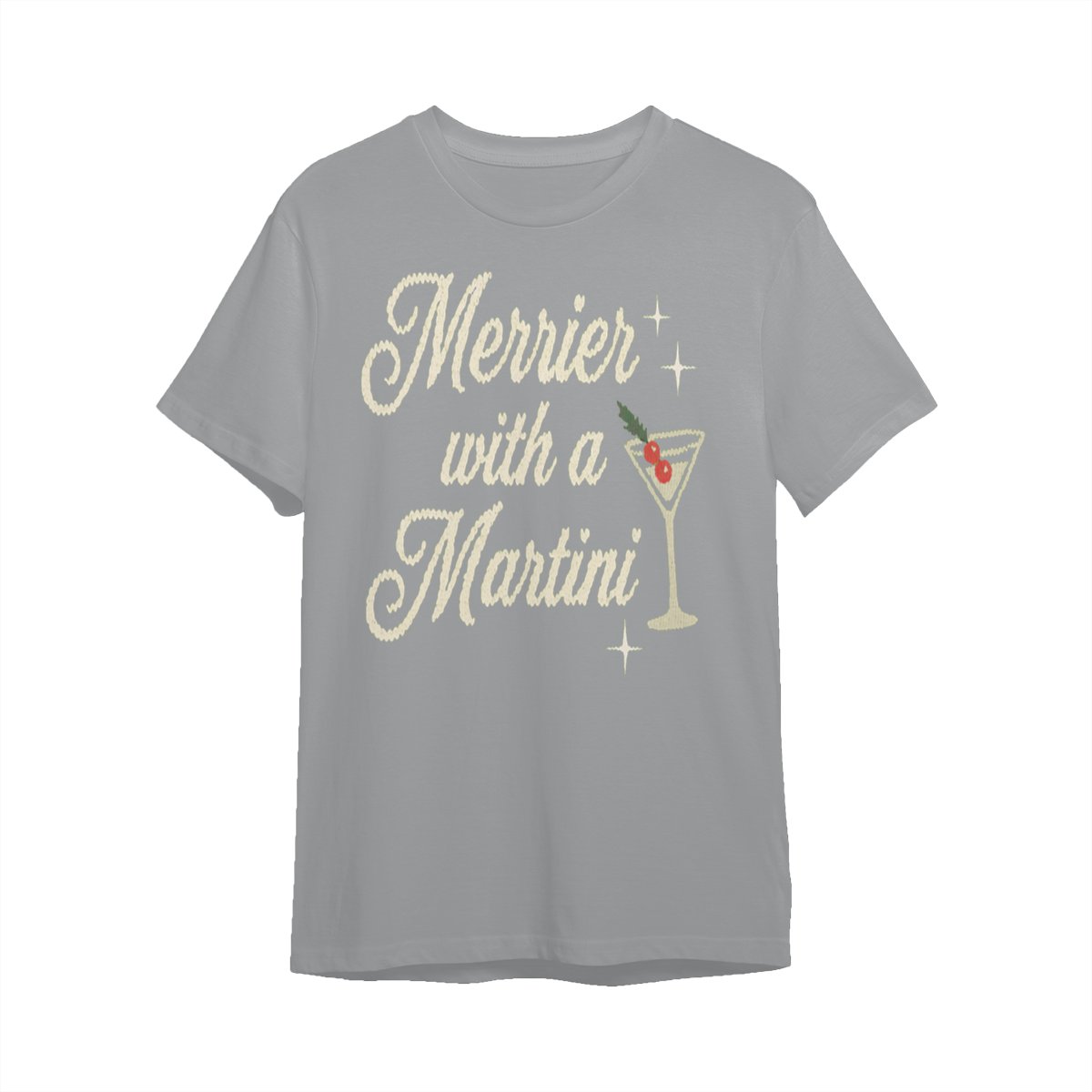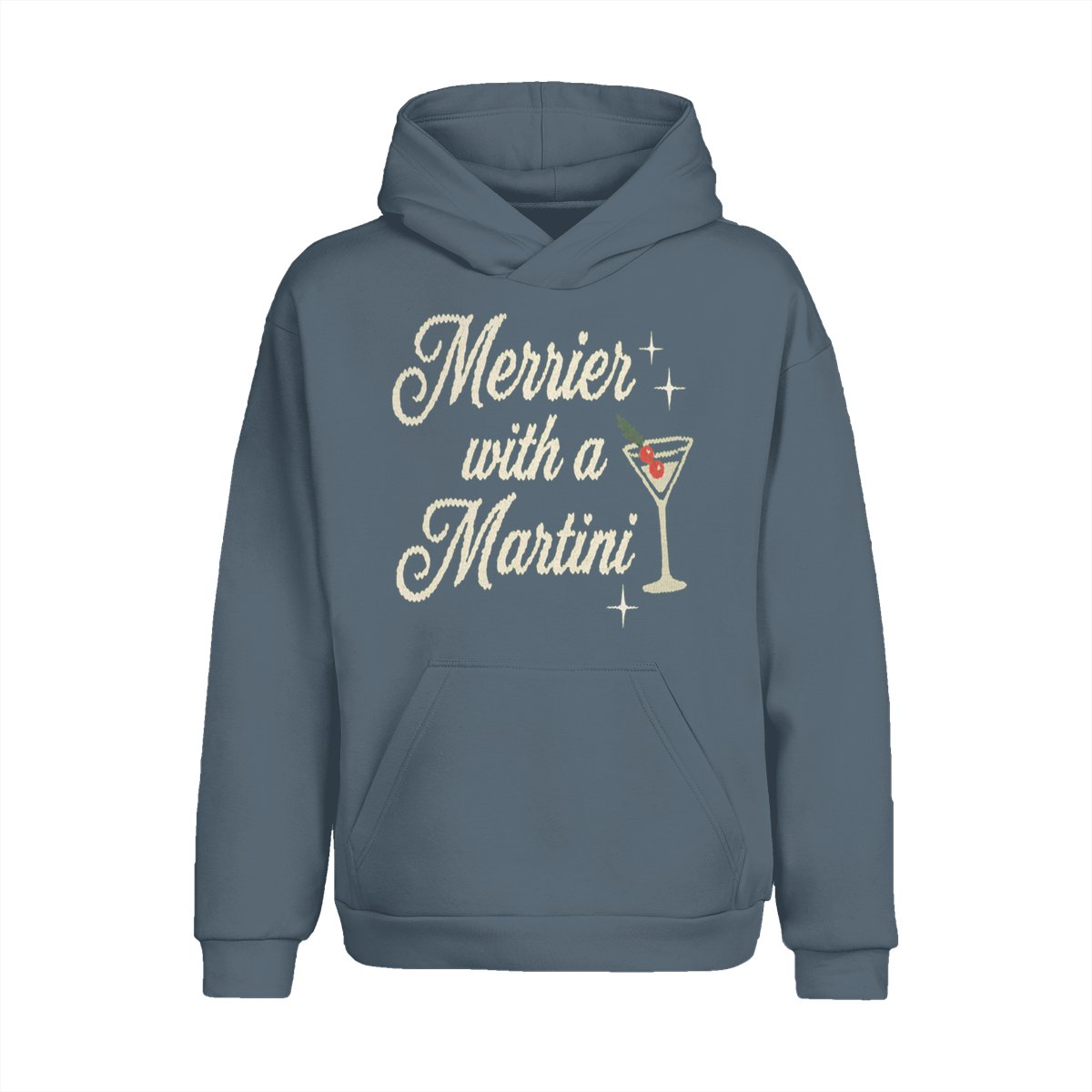 Merrier With a Martini Ugly Christmas Sweashirt for Holiday Party
