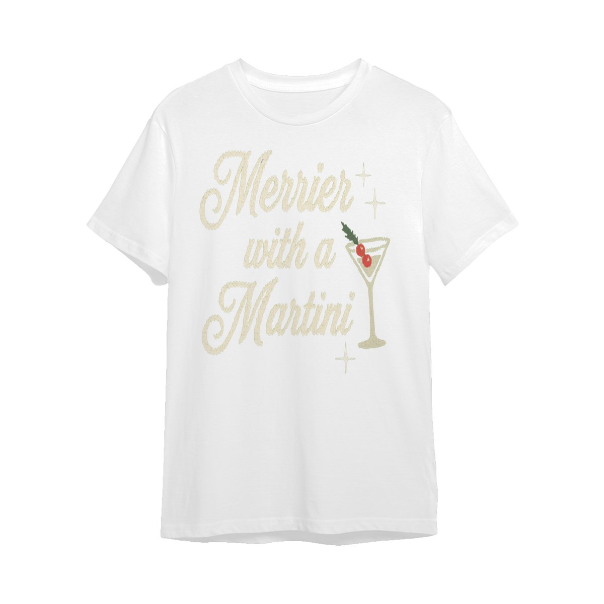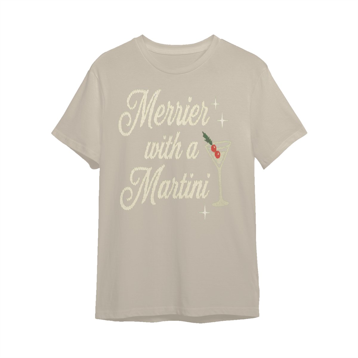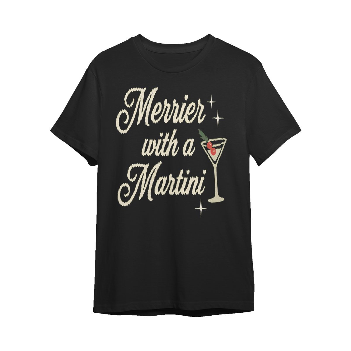 Merrier With a Martini Ugly Christmas Sweashirt for Holiday Party