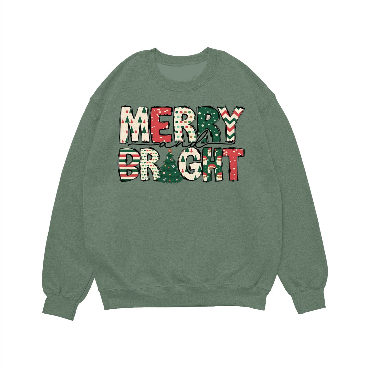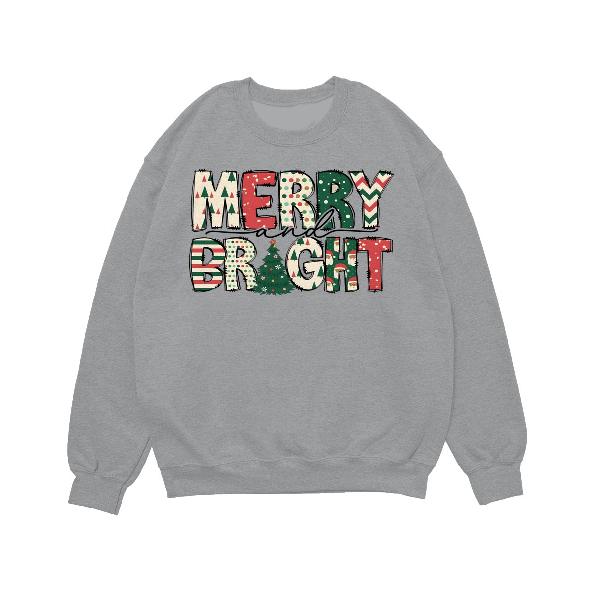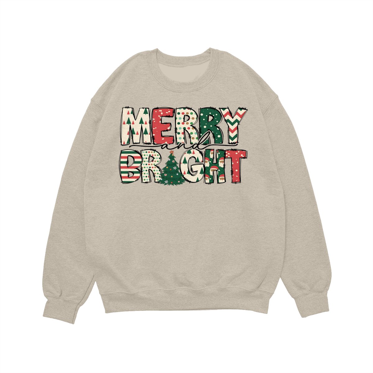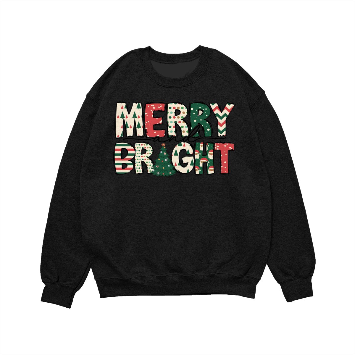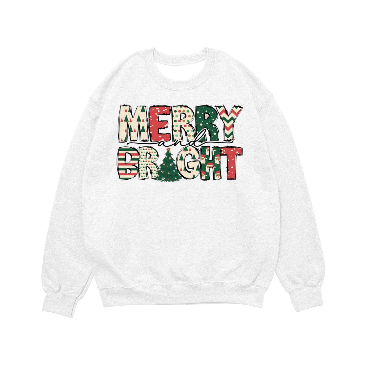 Merry and Bright Christmas Sweatshirt, Trendy Christmas Season Graphic Design Unisex Sweatshirt for Women for Men Womenswear Menswear